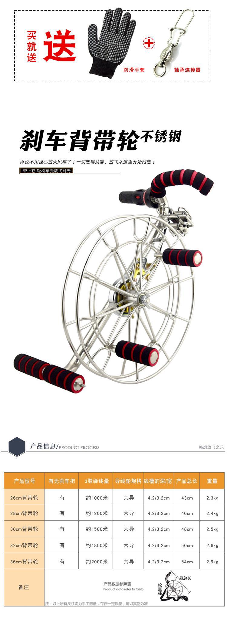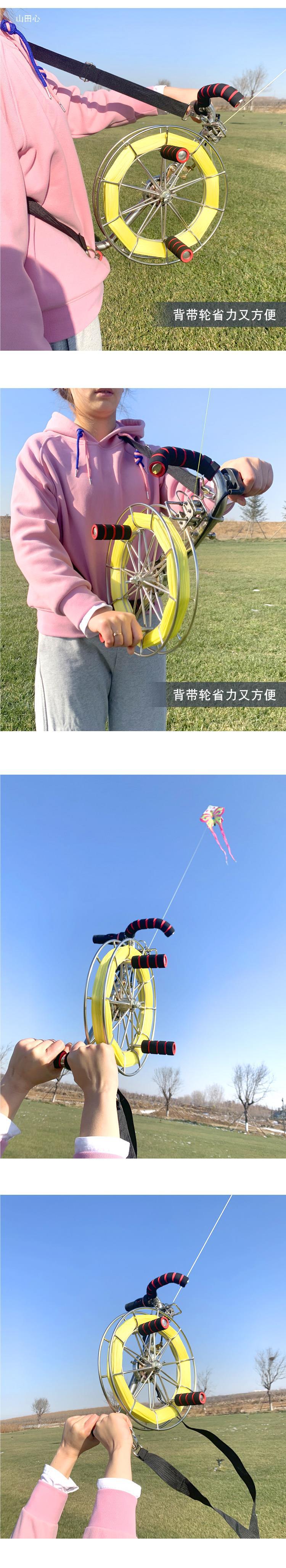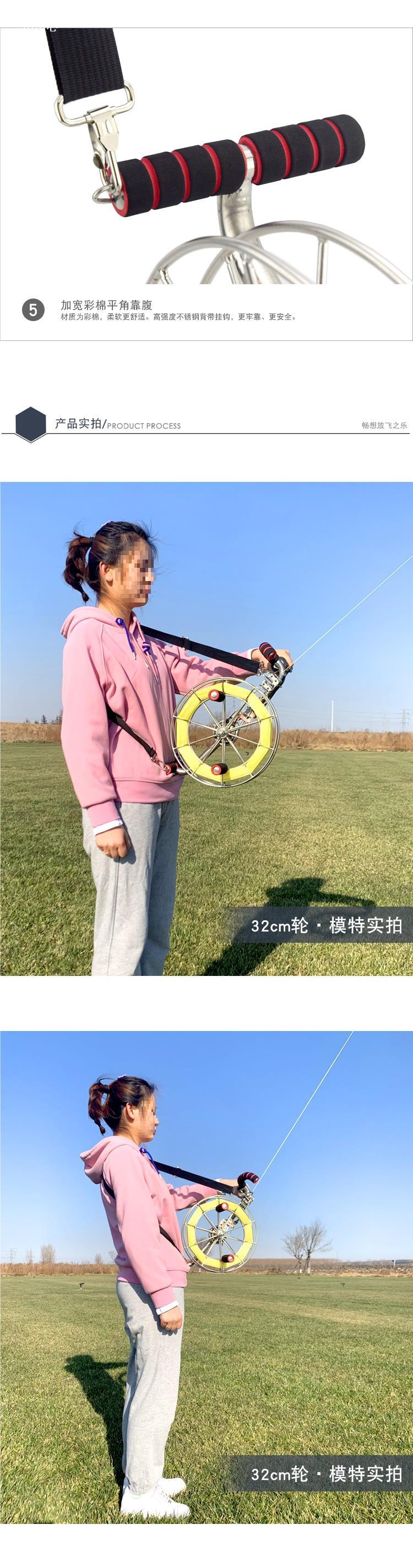 Carrete de cometa Weifang con correa de acero inoxidable, rueda con rodamiento grande, alambre de seis ejes con freno, carrete grande para adultos