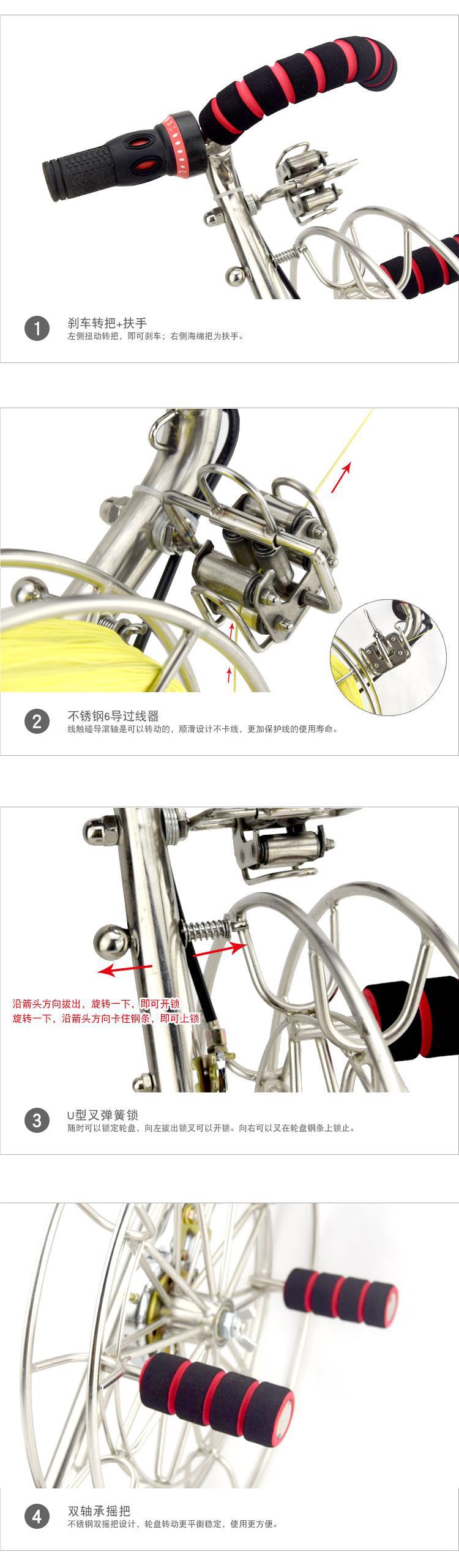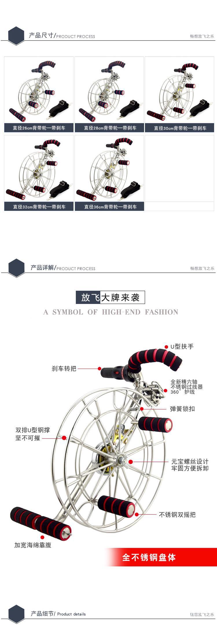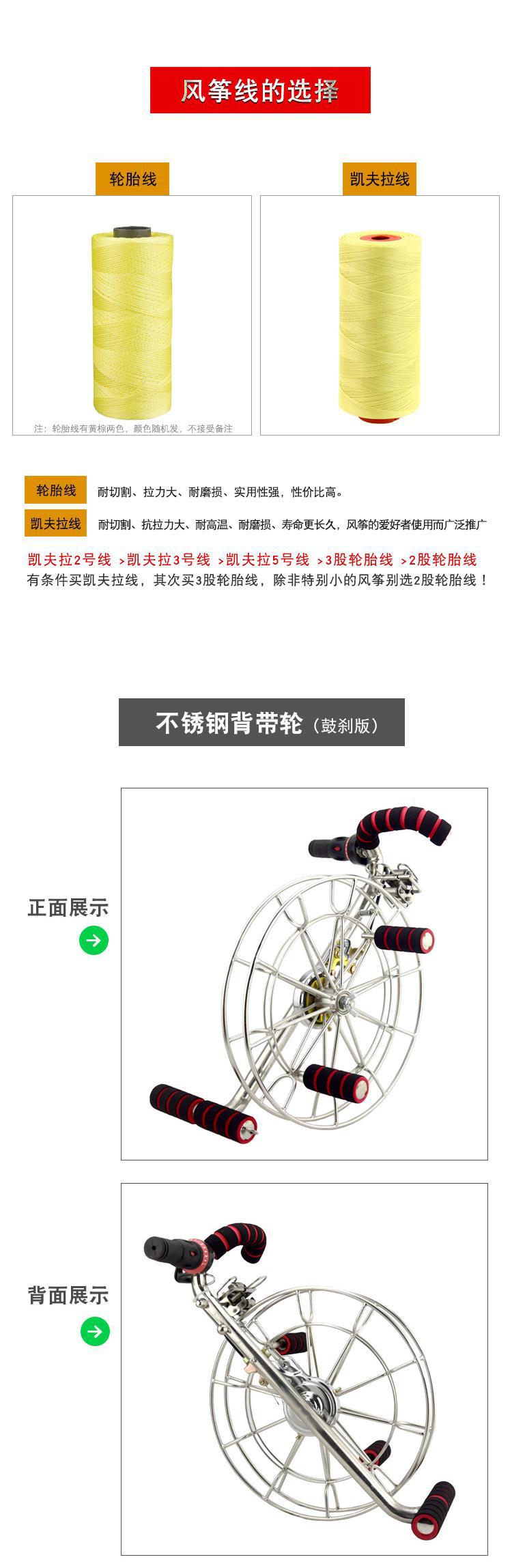 Carrete de cometa Weifang con correa de acero inoxidable, rueda con rodamiento grande, alambre de seis ejes con freno, carrete grande para adultos