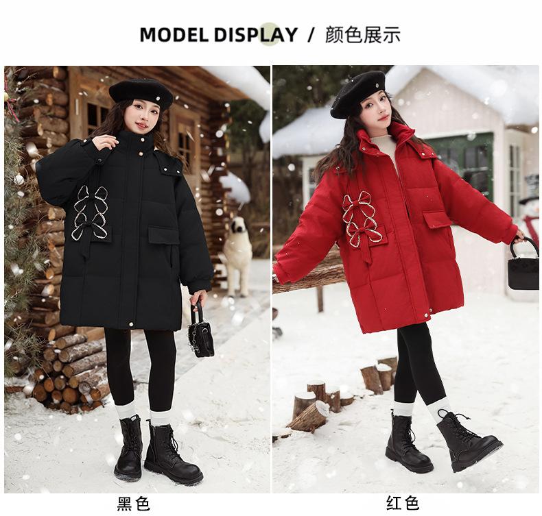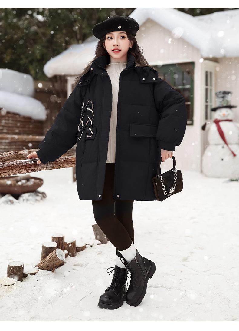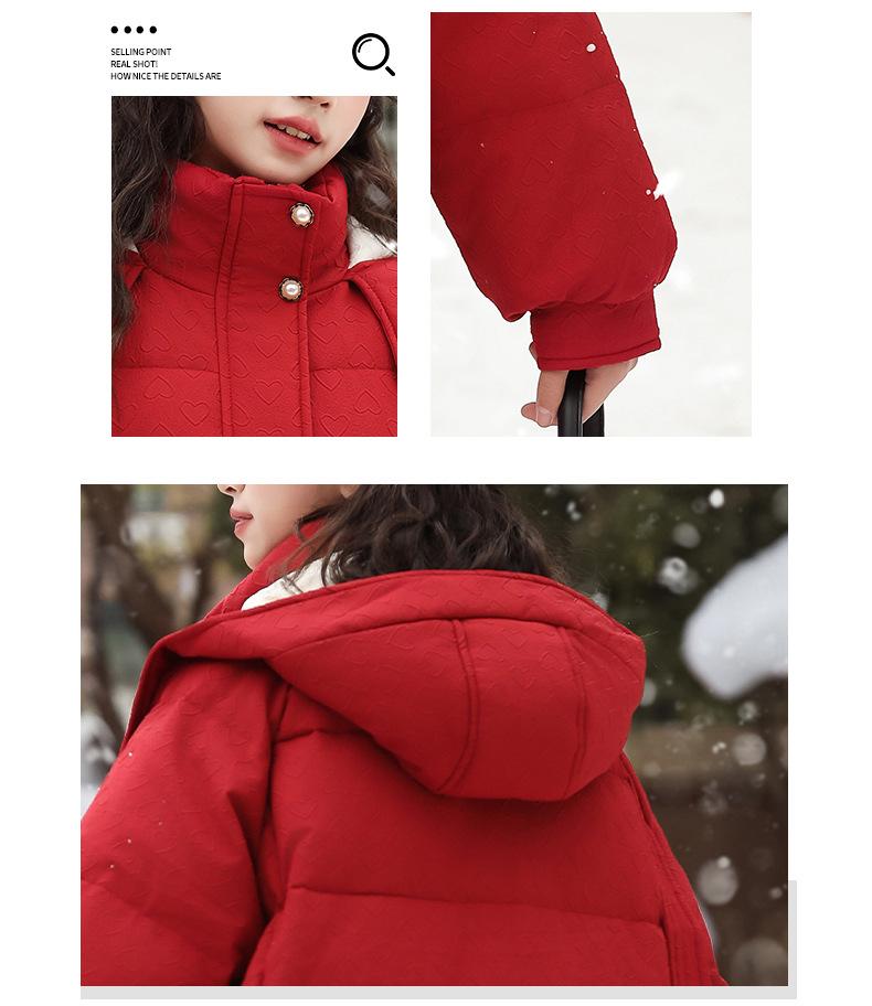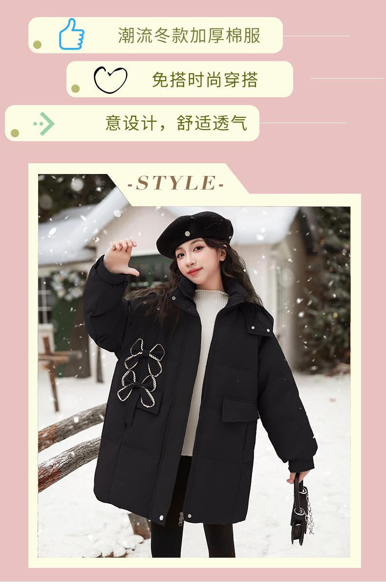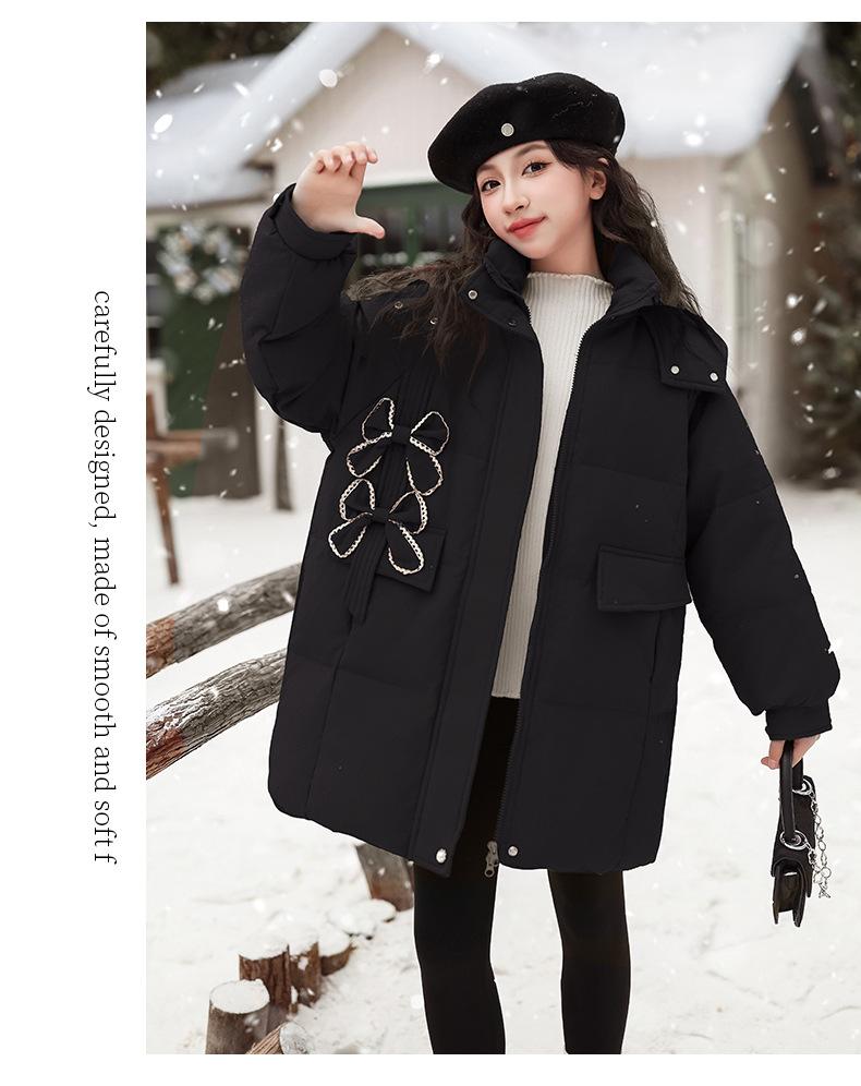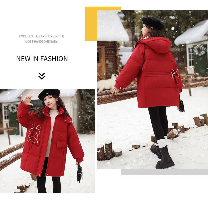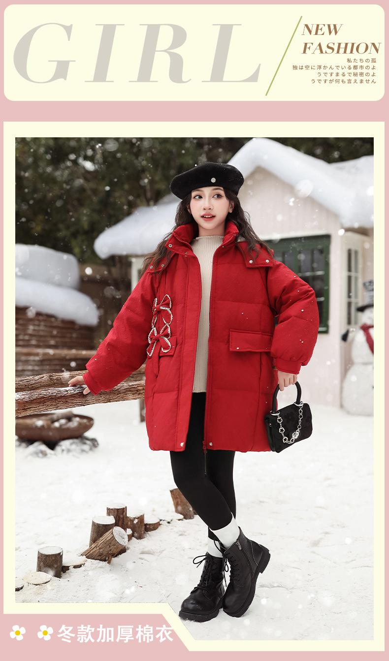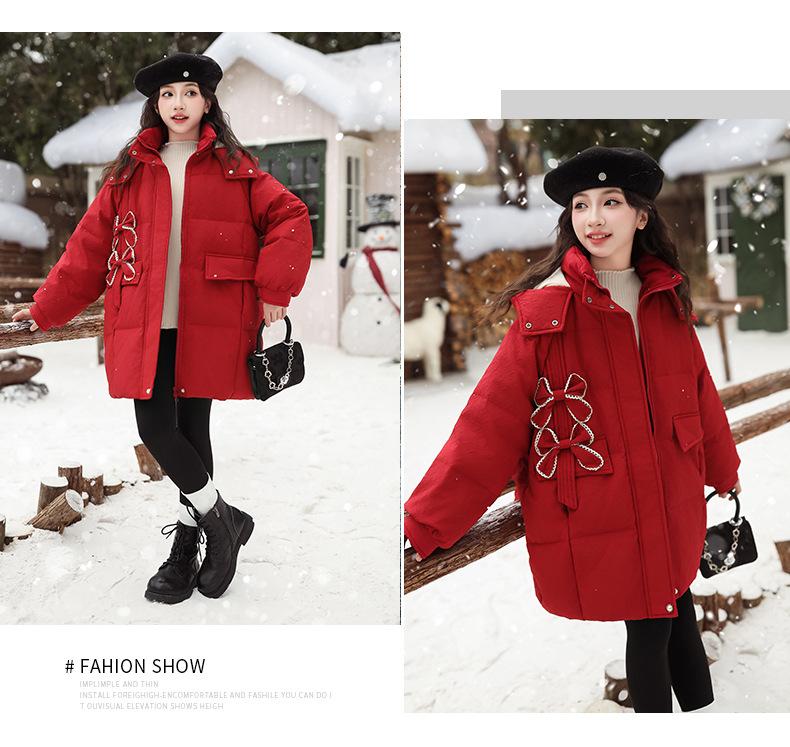 Ropa para Niñas Acolchada de Algodón Invierno Algodón y Engrosamiento Cálido Lazo con Capucha Chaqueta Acolchada de Algodón Plumón Ropa de Invierno Moderna para Niños Medianos y Grandes