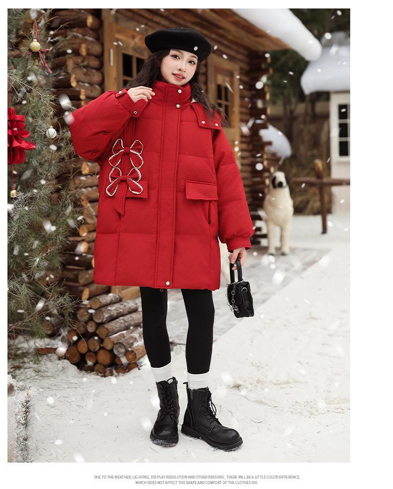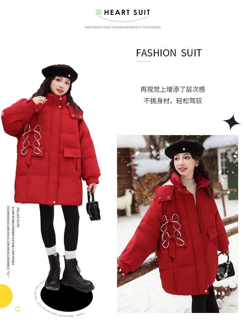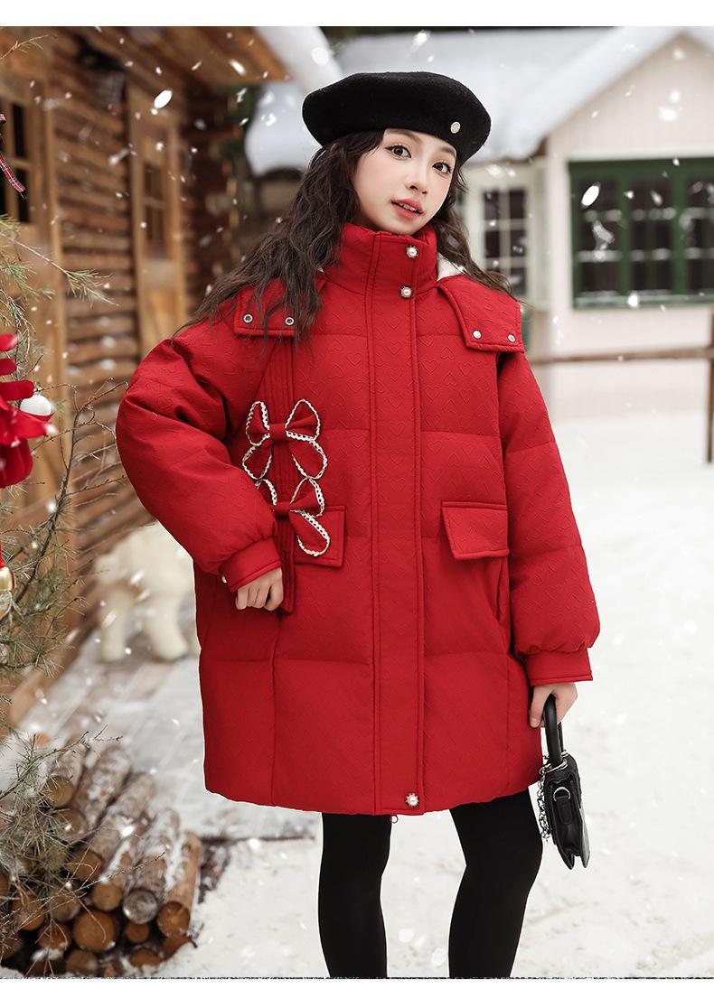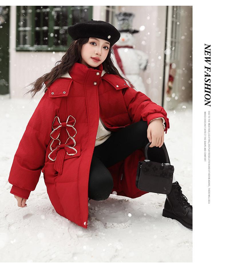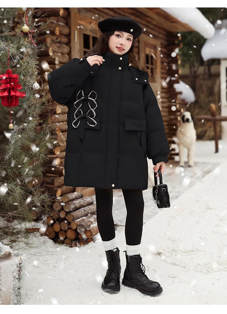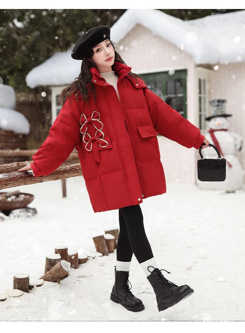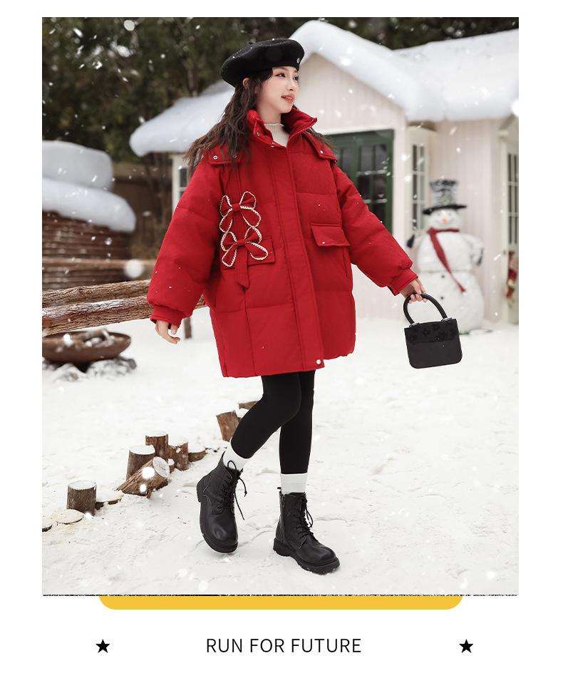 Ropa para Niñas Acolchada de Algodón Invierno Algodón y Engrosamiento Cálido Lazo con Capucha Chaqueta Acolchada de Algodón Plumón Ropa de Invierno Moderna para Niños Medianos y Grandes
