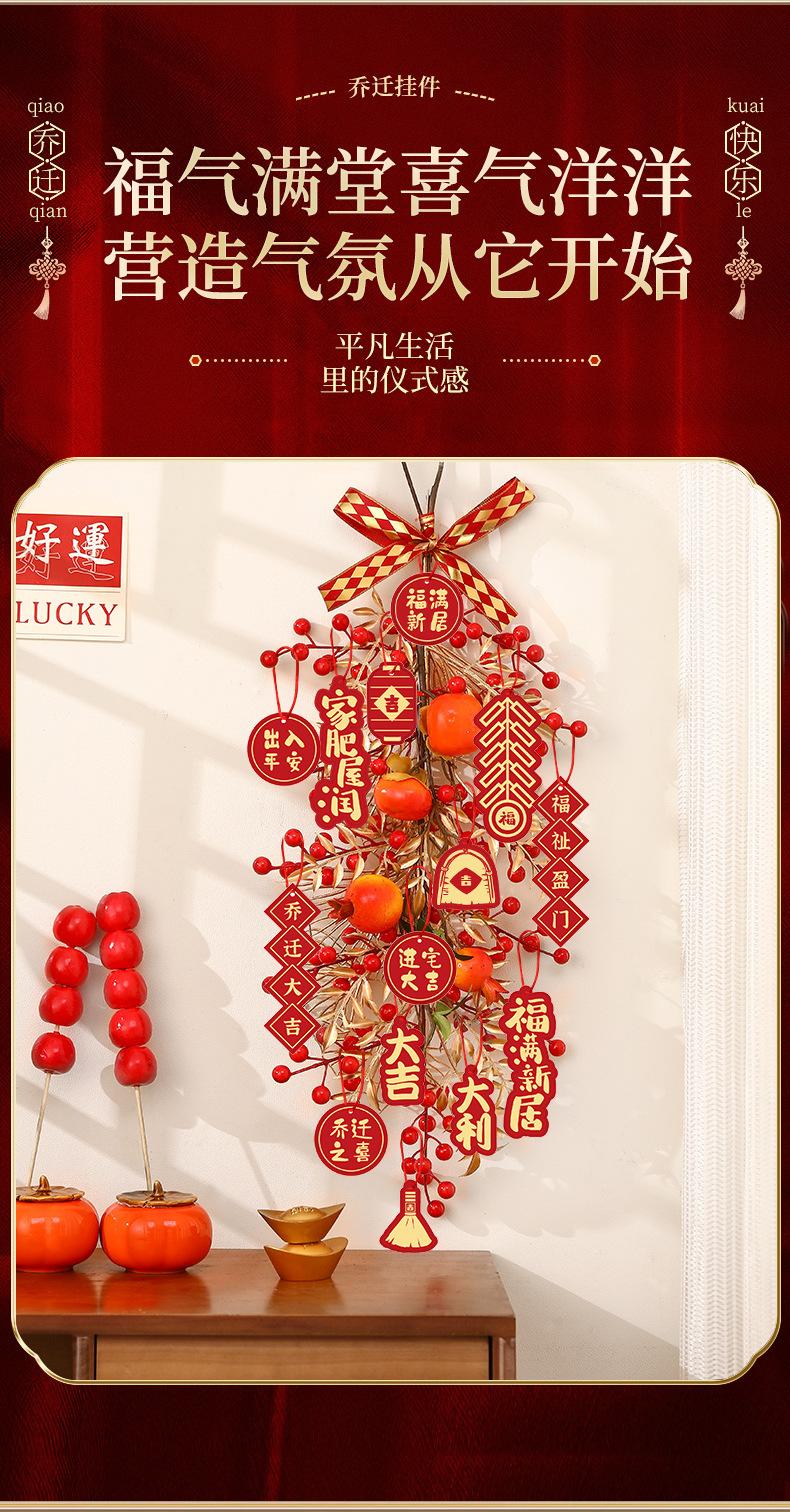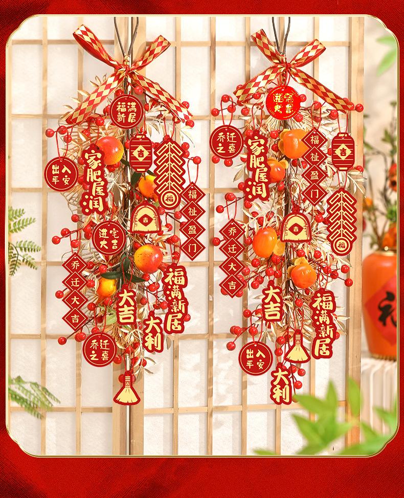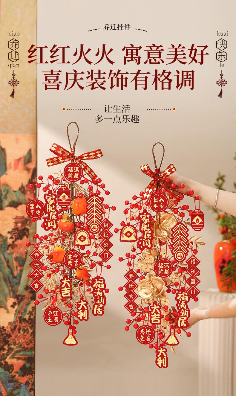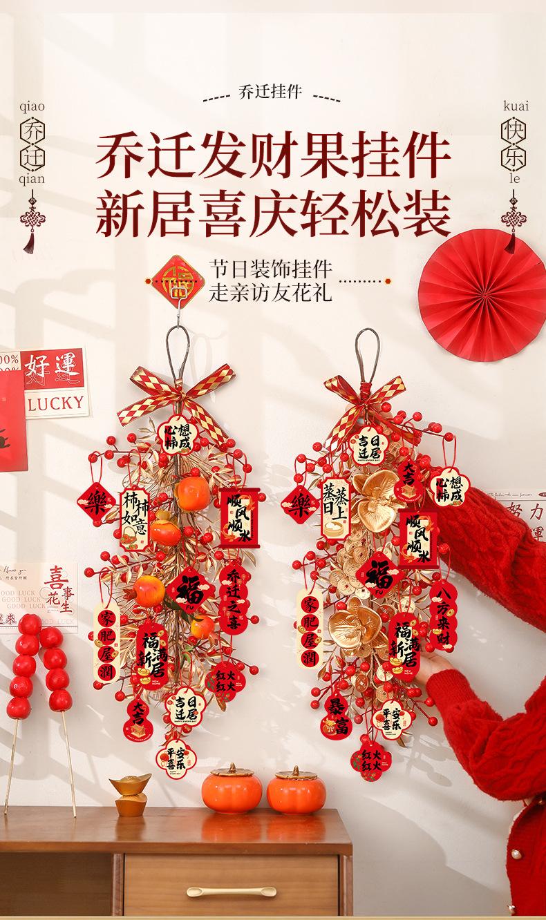 Colgante de feliz inauguración de la casa Mudanza a una nueva casa Decoraciones Diseño Sala de estar Puerta de entrada de Año Nuevo Decoración Colgante de fruta roja de inauguración de la casa