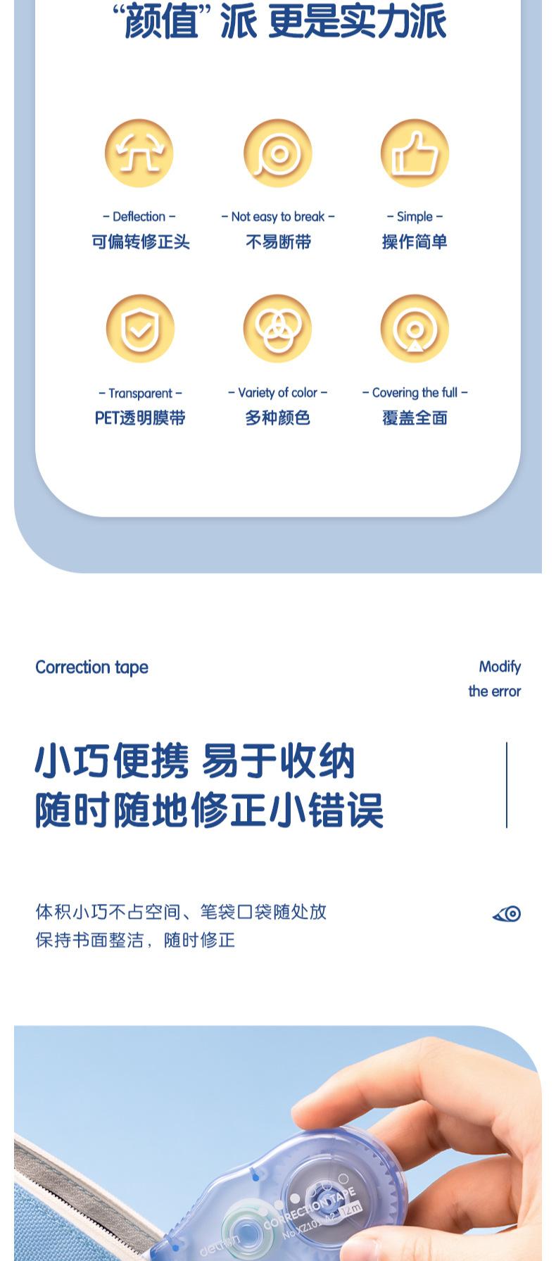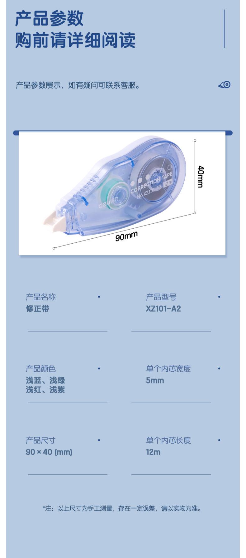[Envío Directo] Cinta Correctora Silenciosa Deli Xz101-A2 para Estudiantes, Cinta Correctora Asequible de Gran Capacidad