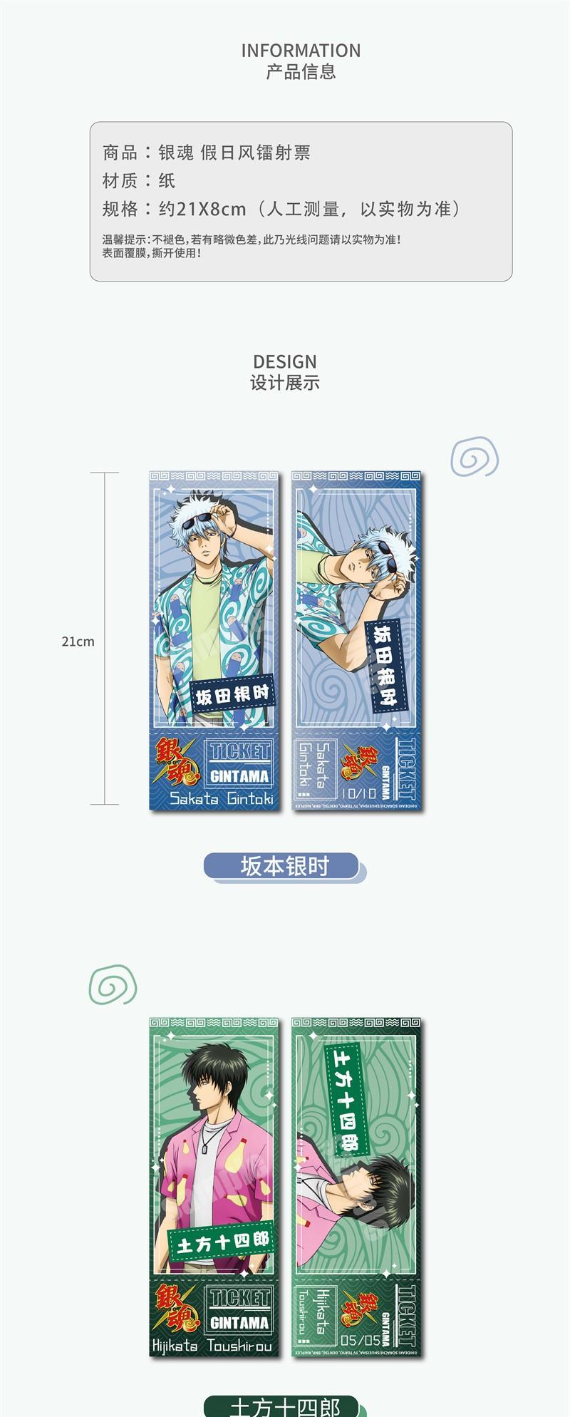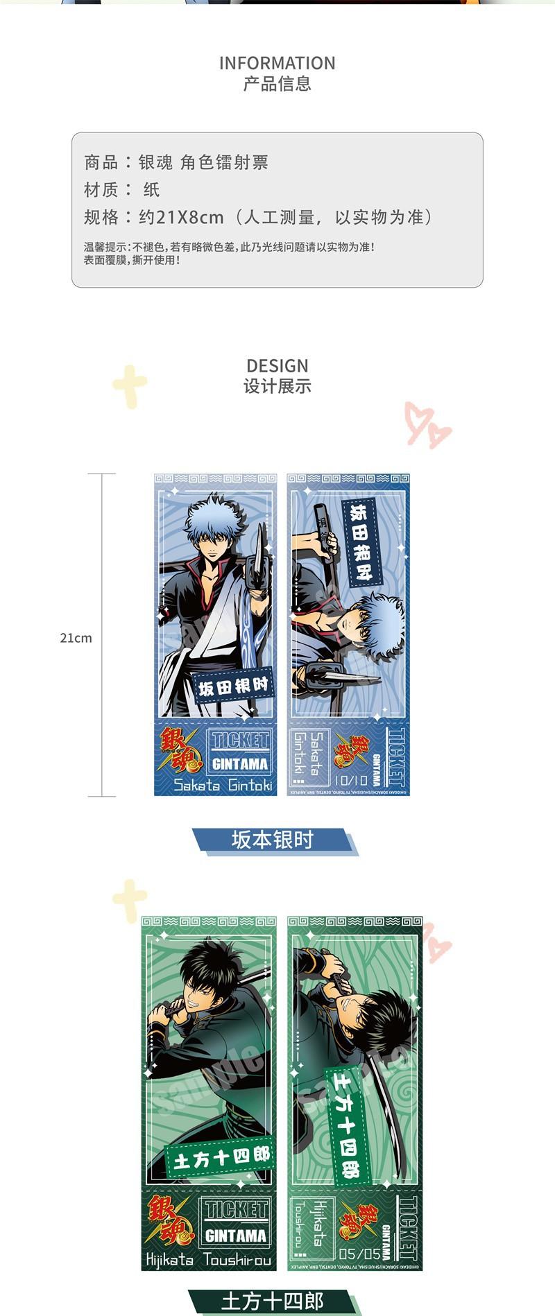 MOUXUYY Hombre Secuencia Alma de Plata Genuina Personaje Vacaciones Láser Boleto Sakata Plata Tiempo Movimiento de Tierras Catorce Lang
