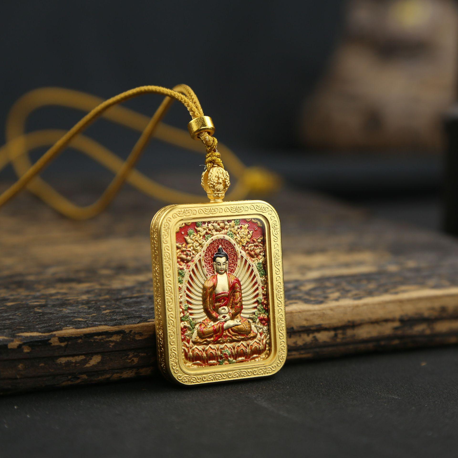 Amitabha 3x4 double-sided thangka - guarding dog, pig + dragon five-year-old + yellow knot rope