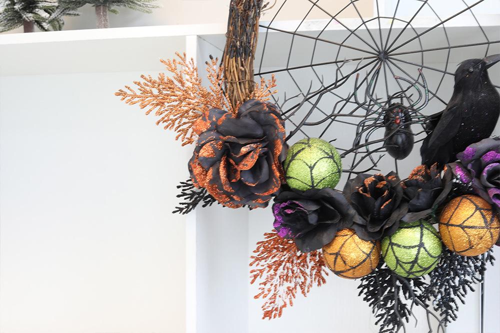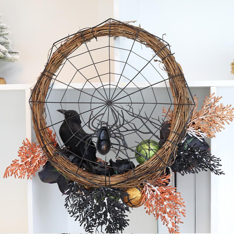 Guirnalda de cuervo negro con rosas de simulación de Halloween, colgante para puerta de entrada, decoración de terror para el hogar, disfraz de Halloween, comercio exterior