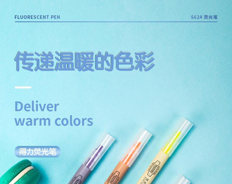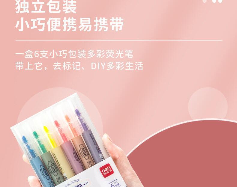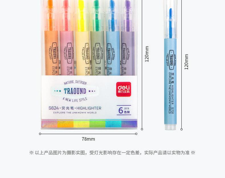 Pluma Marcadora Fluorescente Deli S731 Colorida de Punta Gruesa para Estudiantes para Usar en Apuntes de Clase para Marcar Bolígrafos de Colores