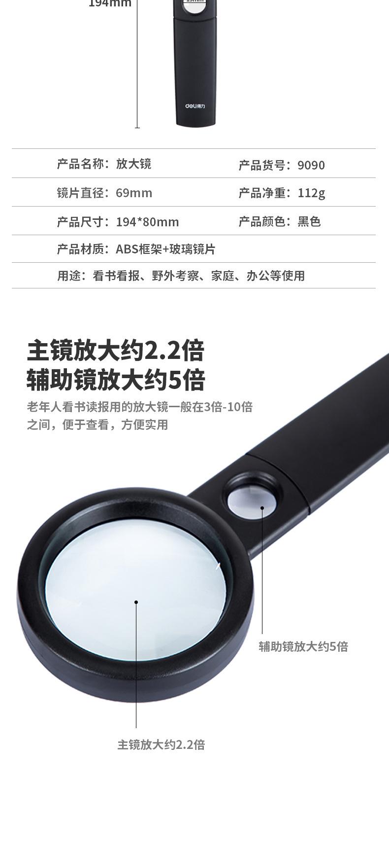 Lupa Deli 9090 para estudiantes y personas mayores, portátil, de alta definición, para lectura