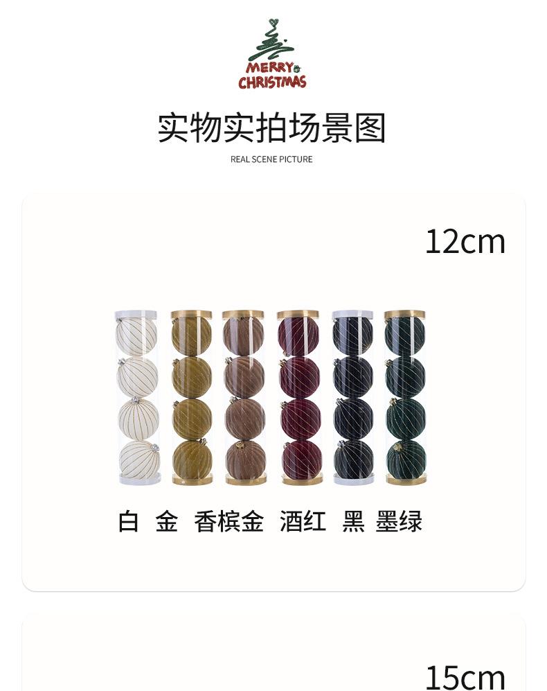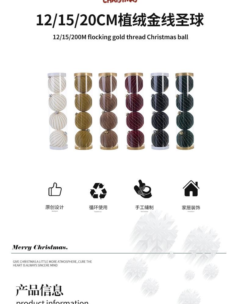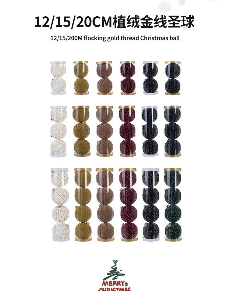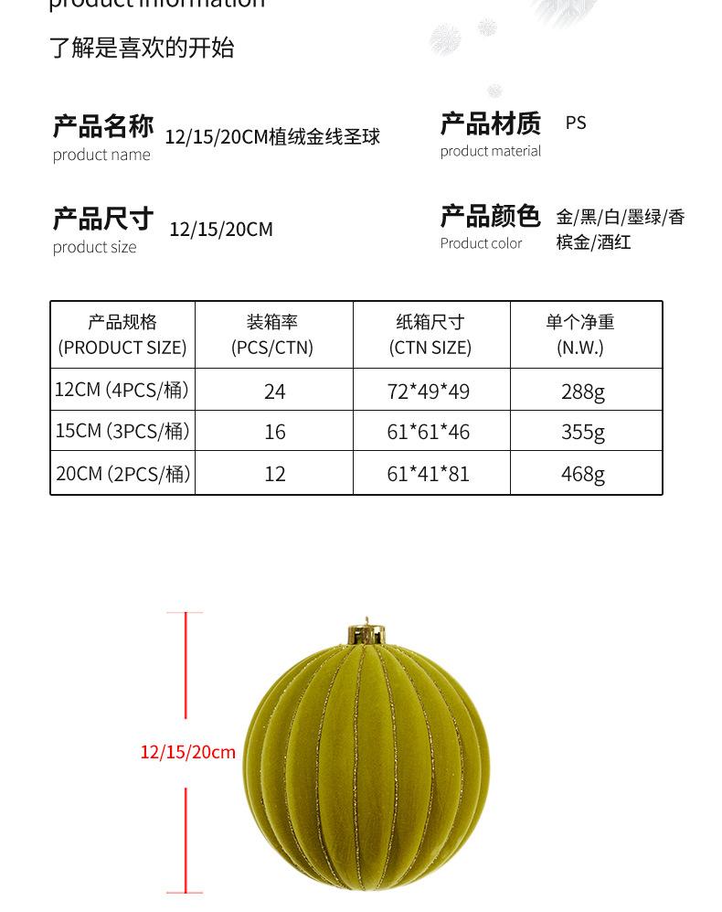 Decoraciones navideñas transfronterizas Decoración de árbol de Navidad 12/15/20 cm flocado hilo dorado bola navideña en barril colgante