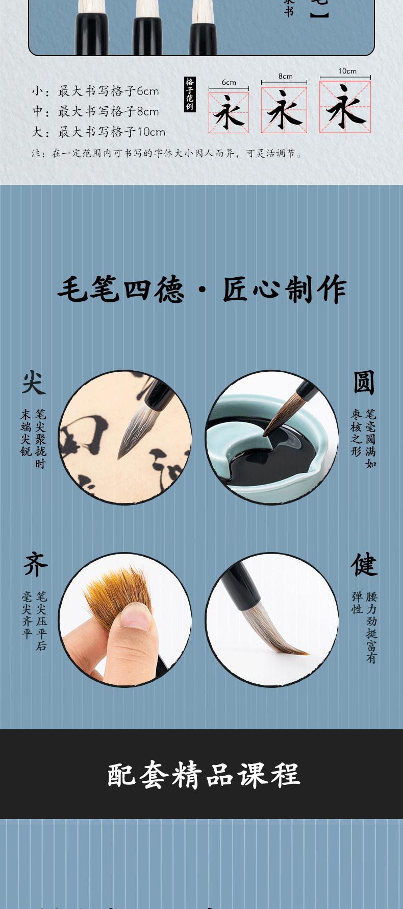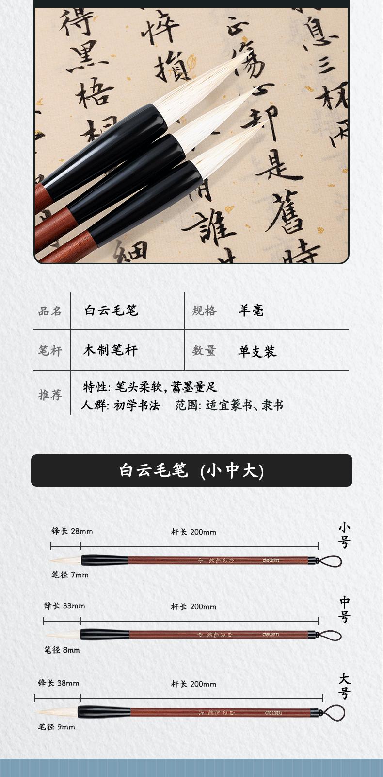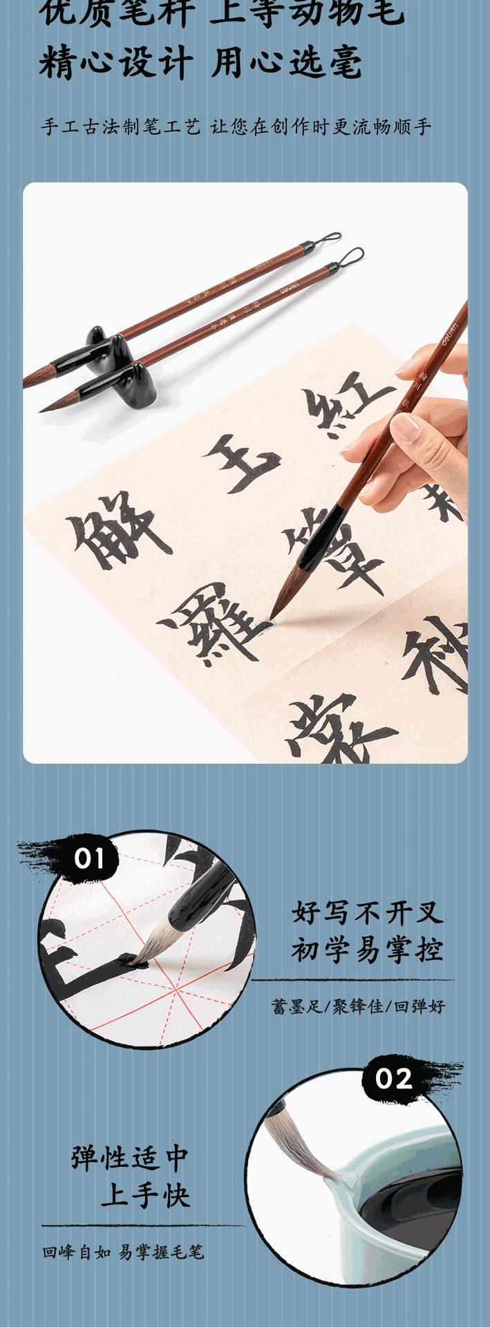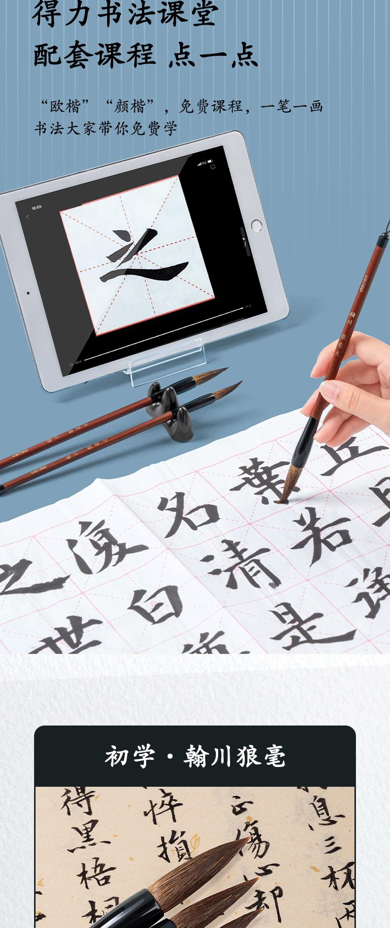 Deli 6582 Set de Pinceles de Pelo de Lobo Caligrafía China Cuaderno de Práctica Pluma Tinta Papel Tintero Grande, Mediano y Pequeño Pincel Regular de Pelo de Lobo
