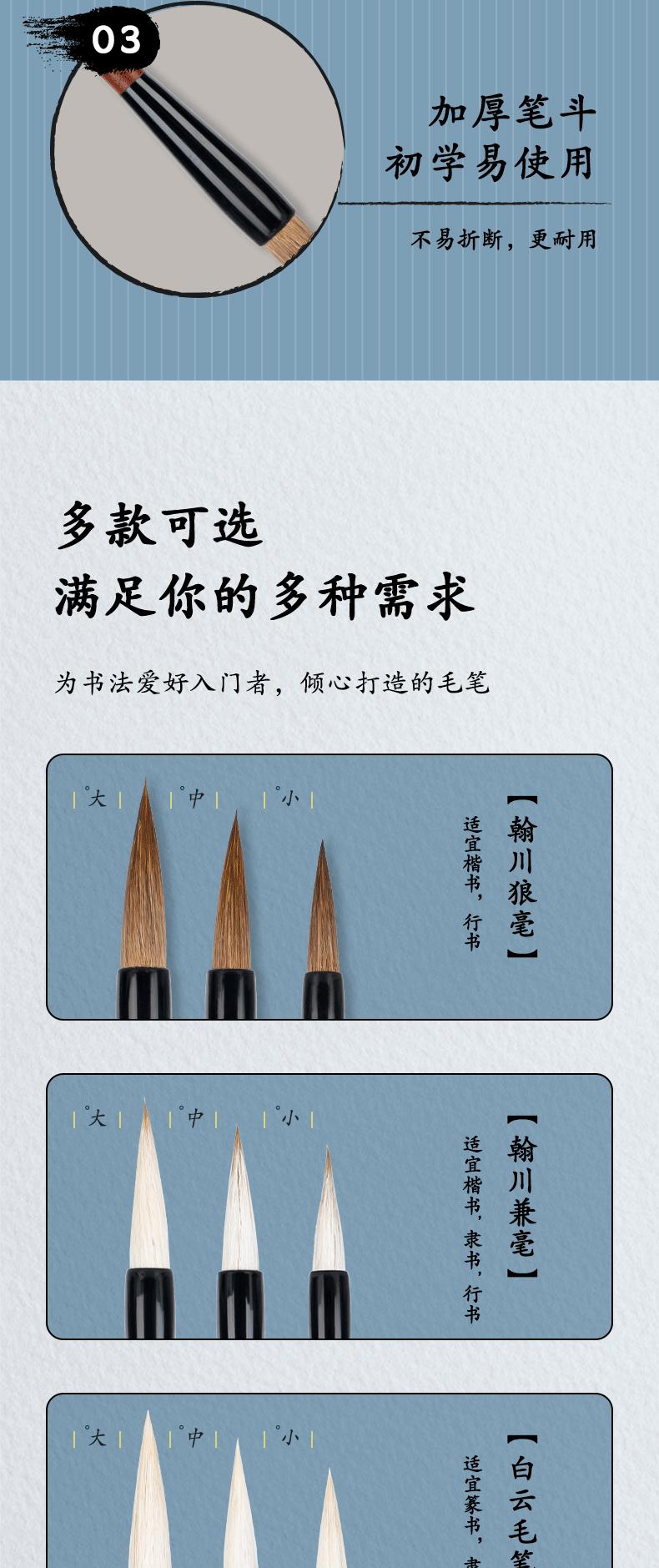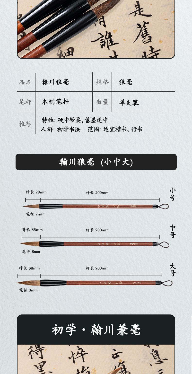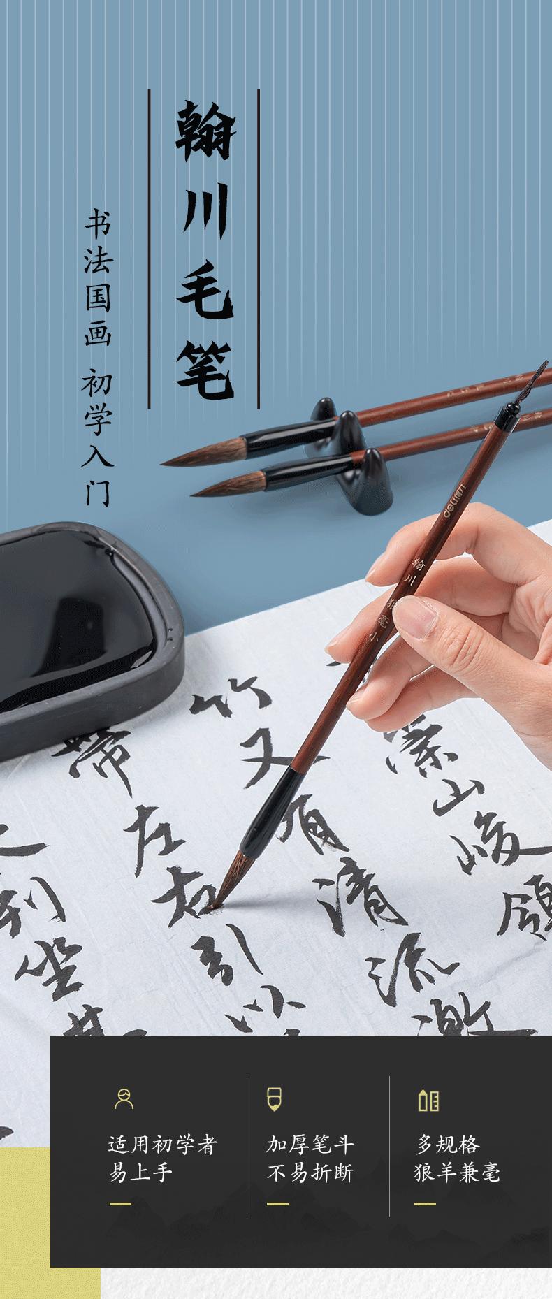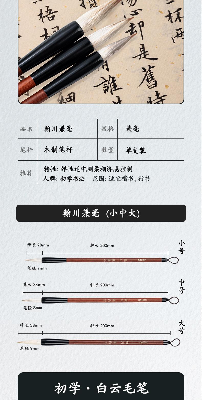 Deli 6582 Set de Pinceles de Pelo de Lobo Caligrafía China Cuaderno de Práctica Pluma Tinta Papel Tintero Grande, Mediano y Pequeño Pincel Regular de Pelo de Lobo