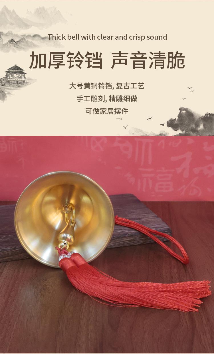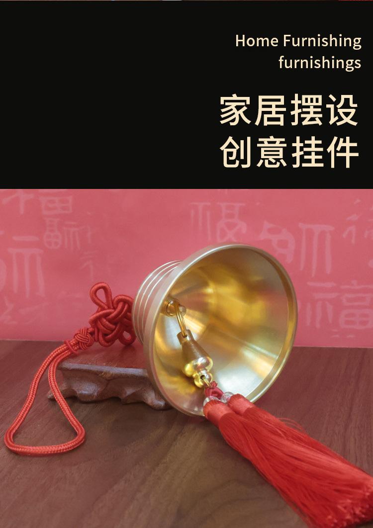 Campana de latón, cinco monedas del emperador, seis monedas del emperador, cuerda amarilla, cuerda roja, campana amarilla, campana de cobre, colgante, decoración de nudo chino de latón