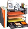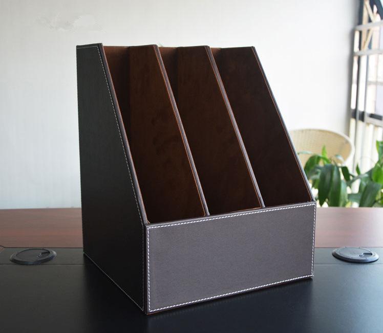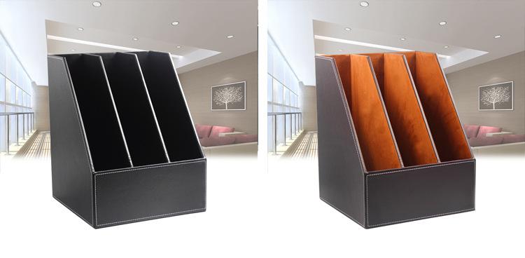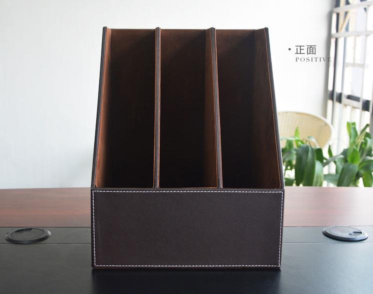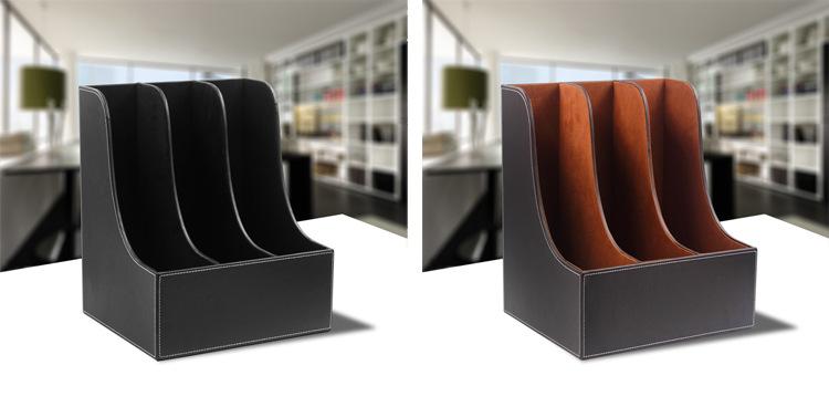 Portaarchivos de Cuero Multifuncional de Tres Filas Creativo Triple Portaarchivos Estante para Acabado de Datos Cesta para Archivos Caja de Almacenamiento Tamaño Grande