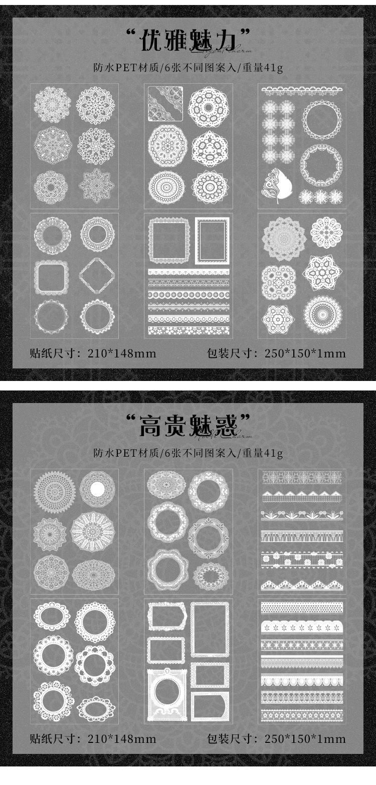 [encantador y encantador] paquete de stickers para cuenta de mano transfronterizo retro película cortada sticker PET material para cuenta de mano sticker se puede personalizar