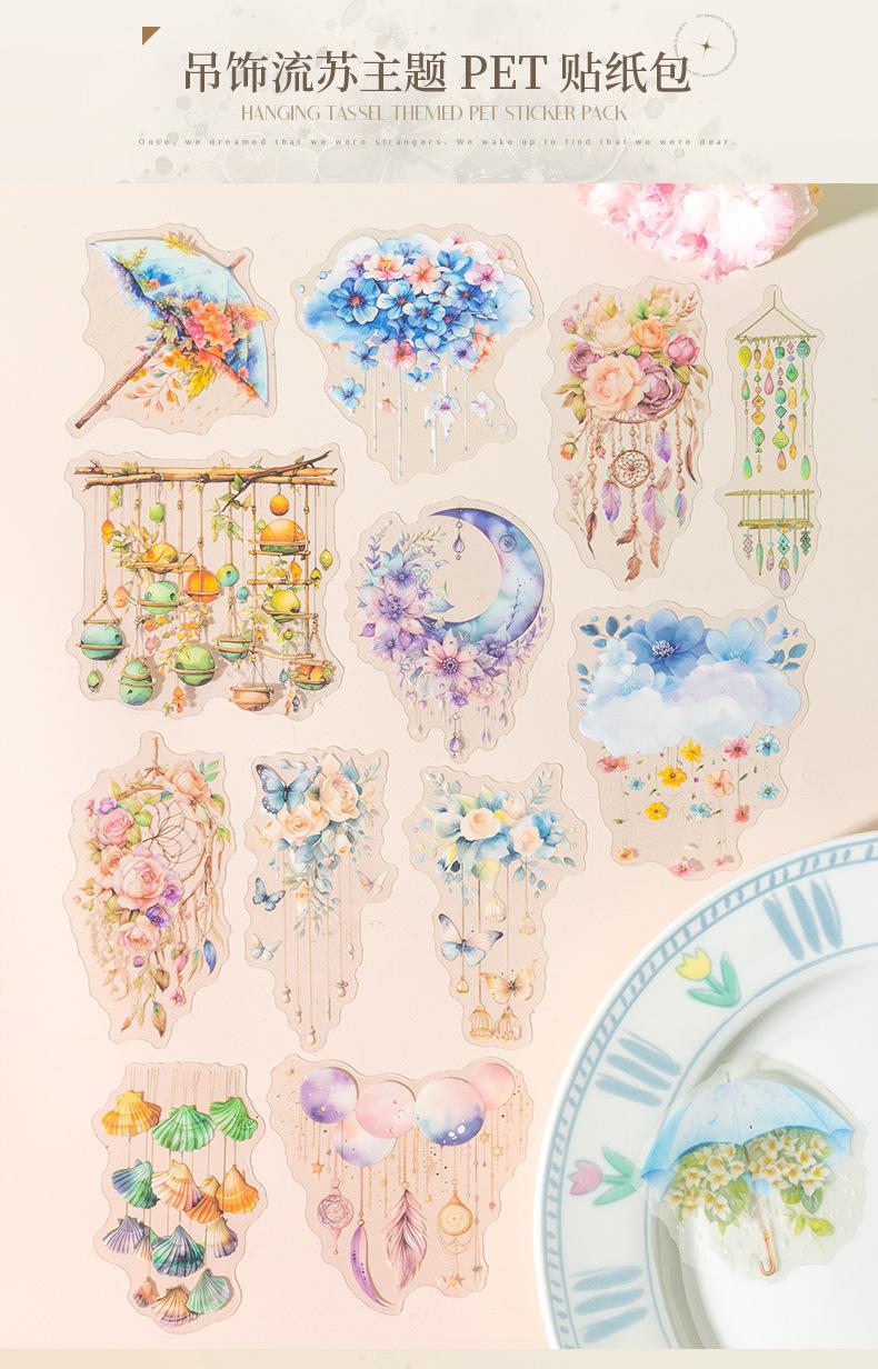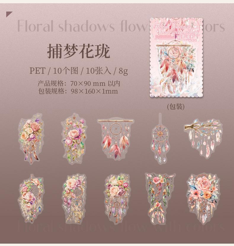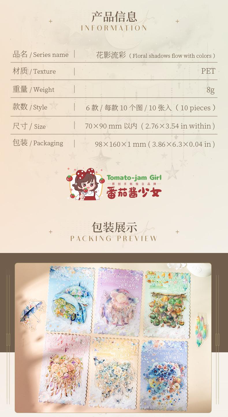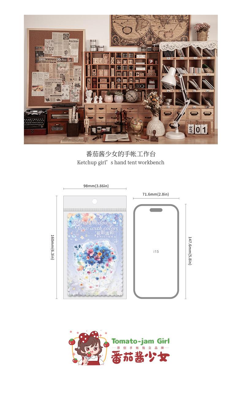 Bolsa de pegatinas para mascotas con diseño de chica ketchup, con diseño de flores y sombras, serie de colores retro, con base de decoración para cuenta de mano y flores 10 6