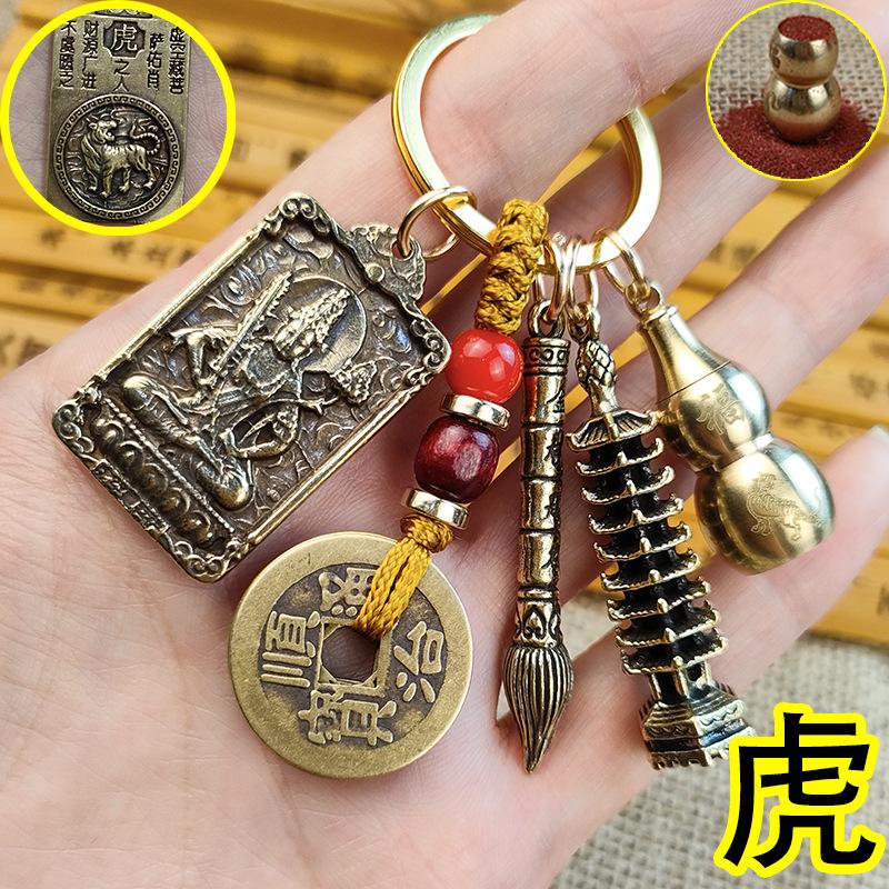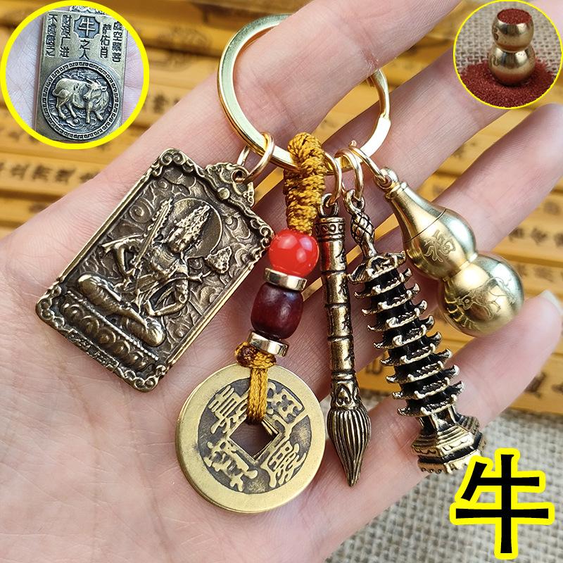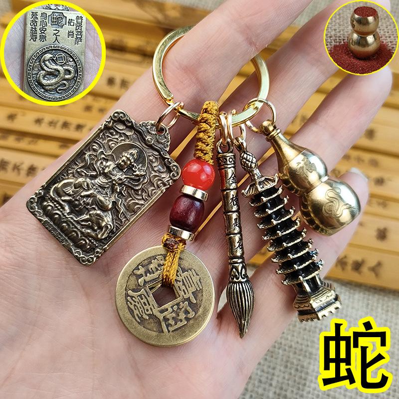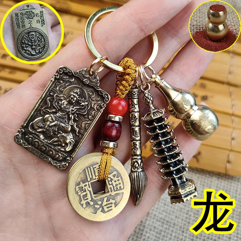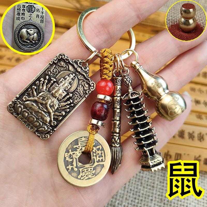 Calabaza Hueca de Latón Giratoria Dinero Doce Signos del Zodíaco Ocho Deidades Guardianas Llavero de Calabaza Colgante Pequeño Accesorio Venta al por Mayor