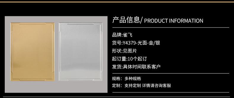 Suministro de fábrica Que Fei lámina de aluminio para transferencia térmica lámina de aluminio medalla de honor impresión espejo lámina de aluminio cuadrada placa de certificado