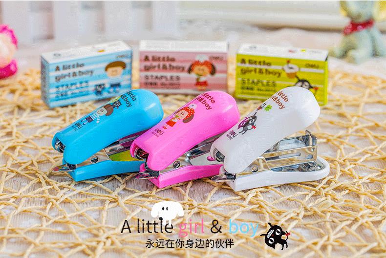 Deli 0302 Grapadora Mini Portátil Grapadora Pequeña Lindo Dibujo Animado No. 12 Grapadora Grapas 24/6 Grapadora