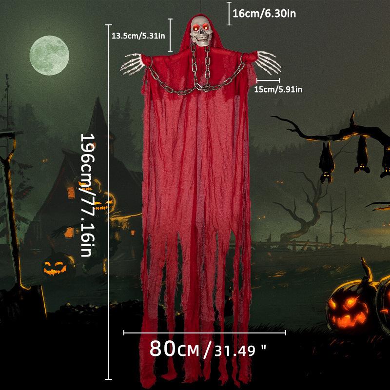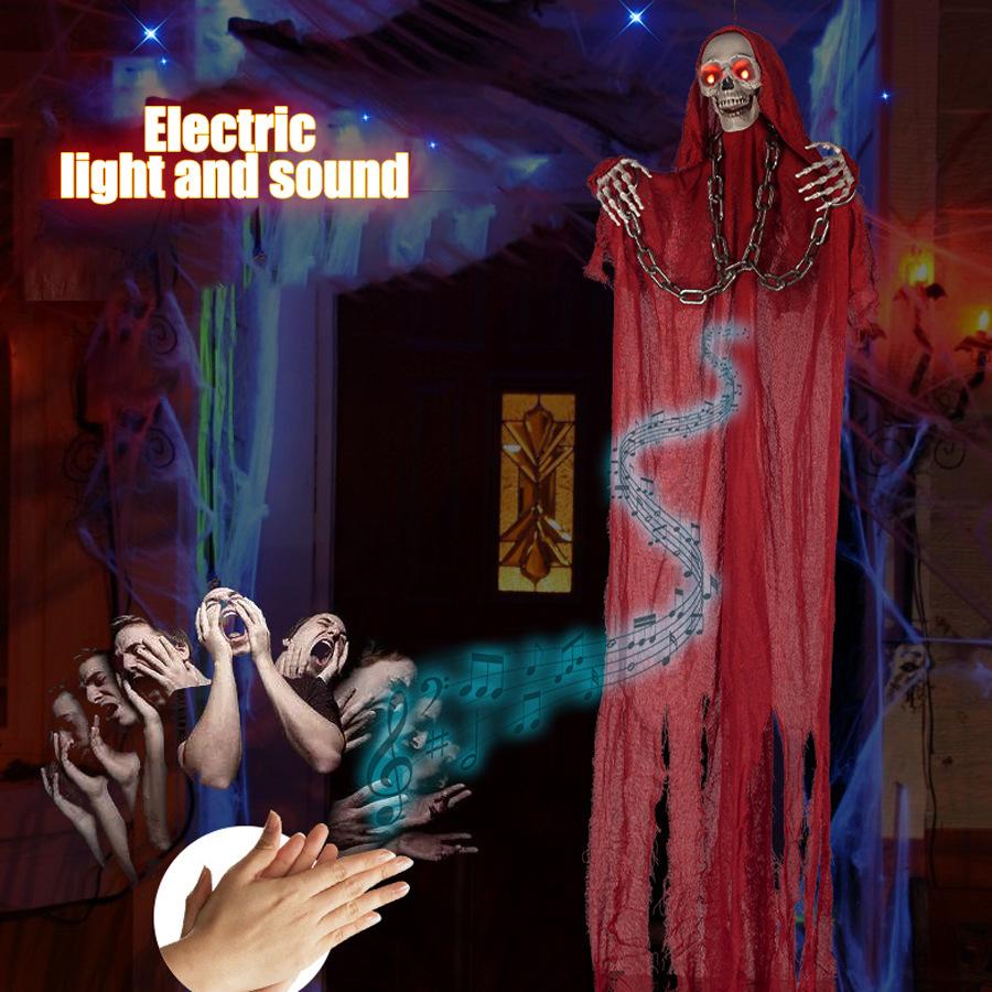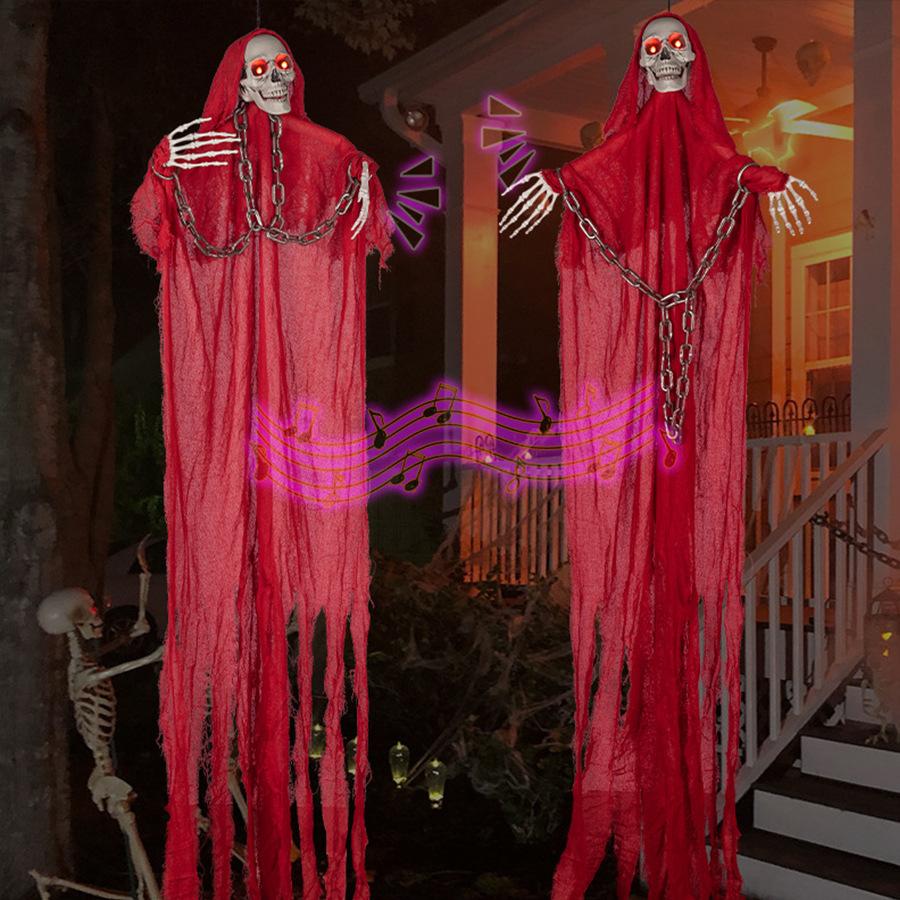 Nueva decoración fantasmal para Halloween con ropa roja colgante, cadena de terror, sonido luminoso, decoraciones transfronterizas para casas embrujadas.