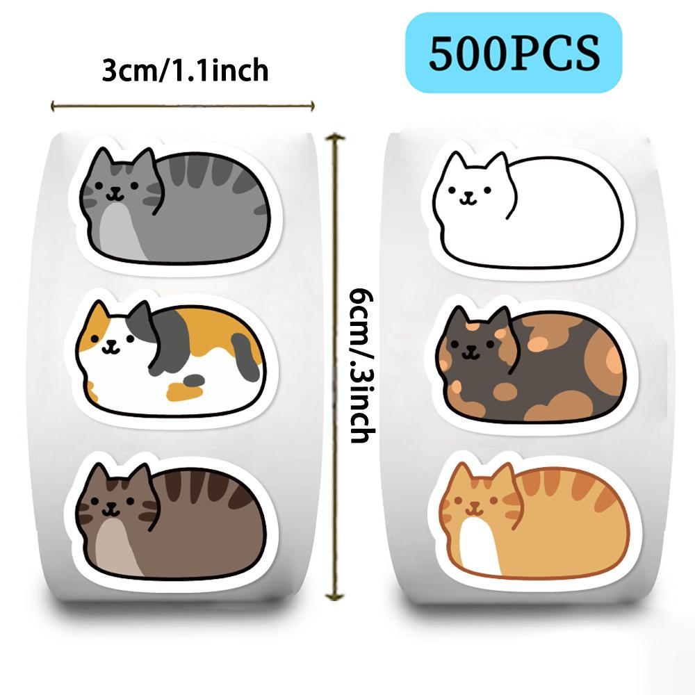 Rollo de 500 hojas de pegatinas adhesivas con diseño de gato "Tuo Tuo", con dibujos animados de animales, para manualidades creativas.