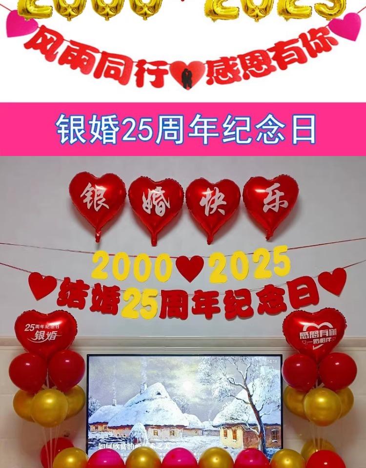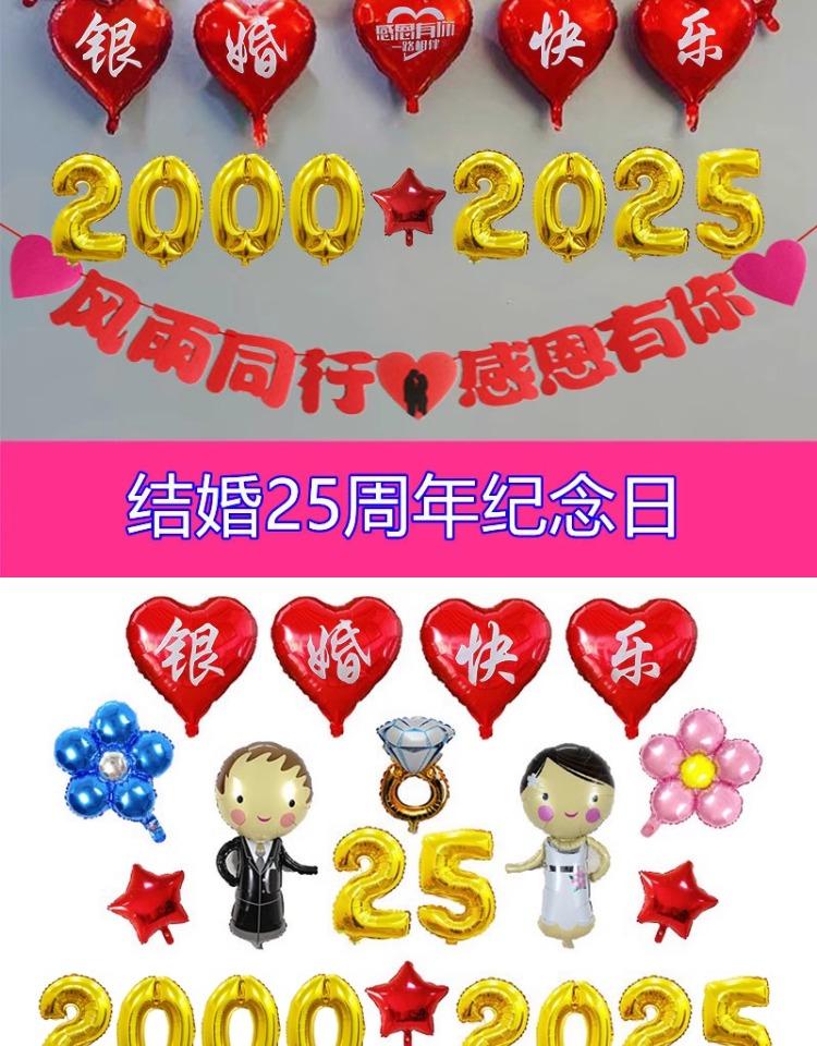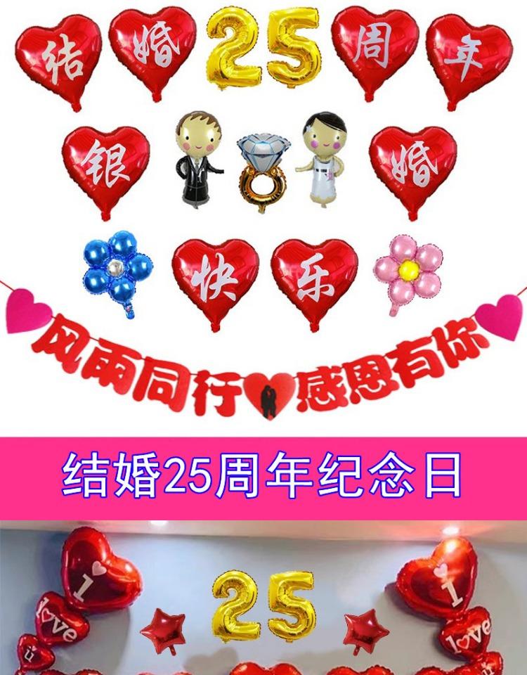 Escenario de configuración para el 25.º aniversario de boda, decoración con globos de bodas de plata, paquete de pared de fondo para habitación