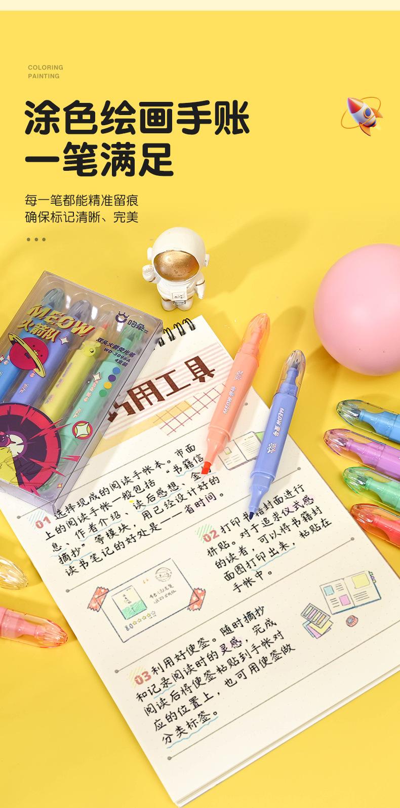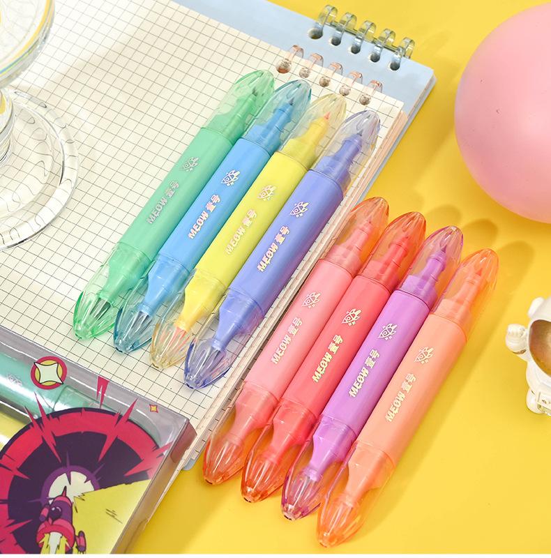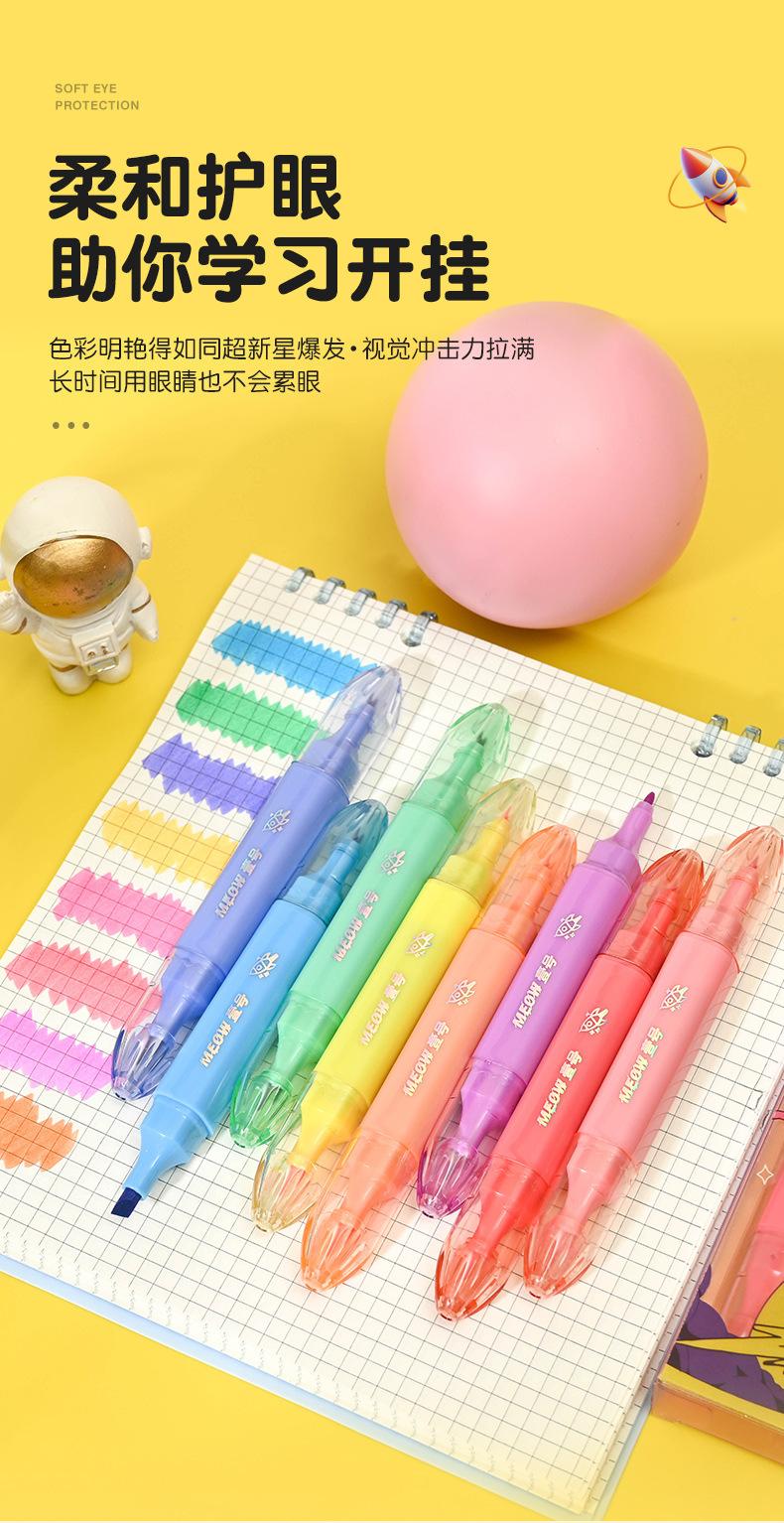 Rotulador fluorescente de doble punta para pupila, venta al por mayor, marcador de colores de secado rápido