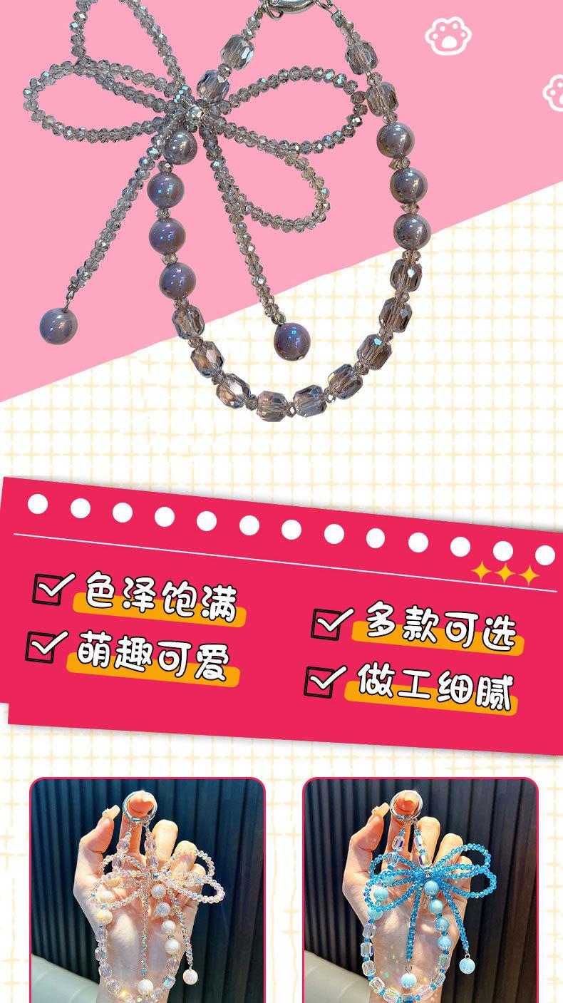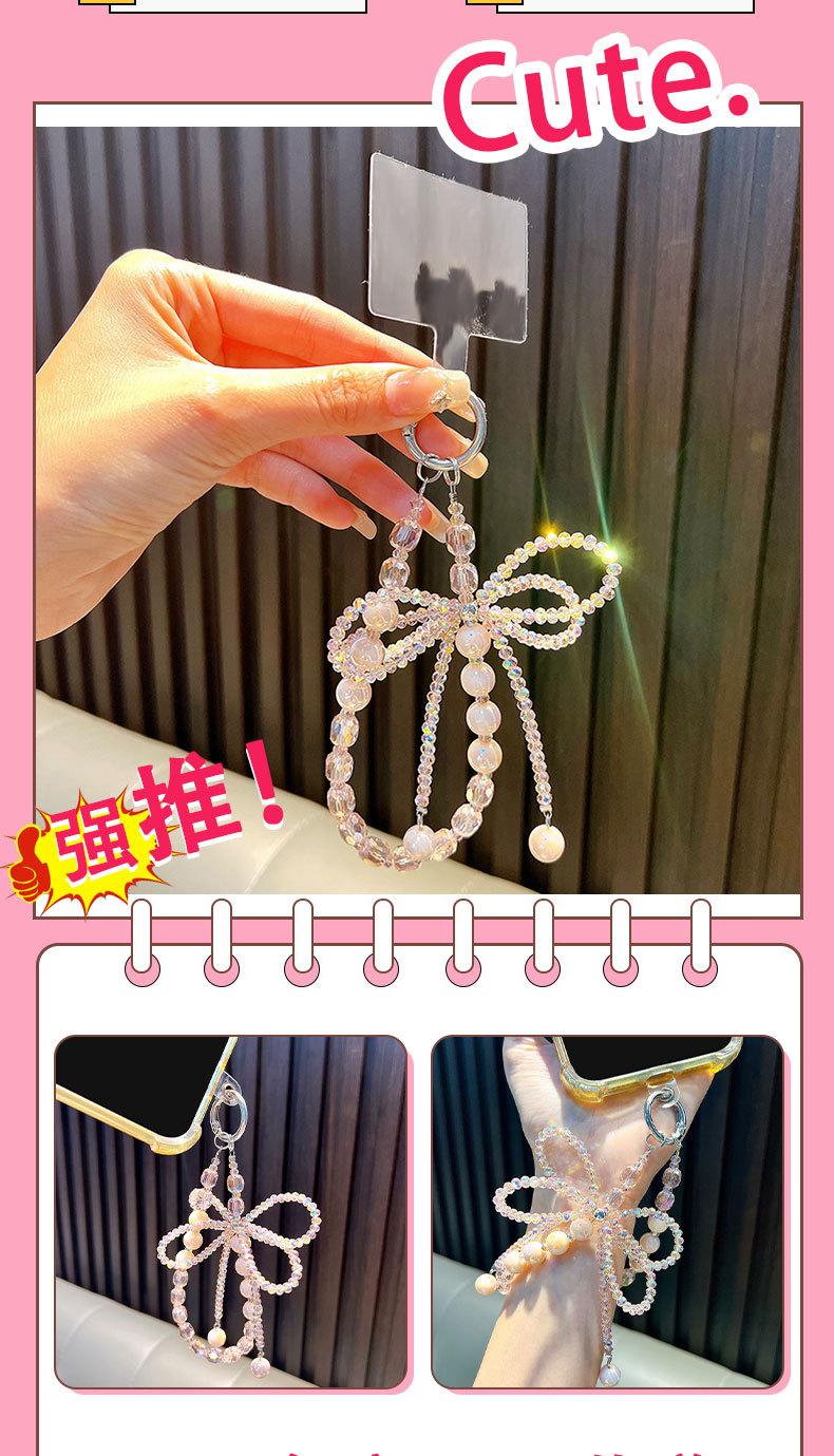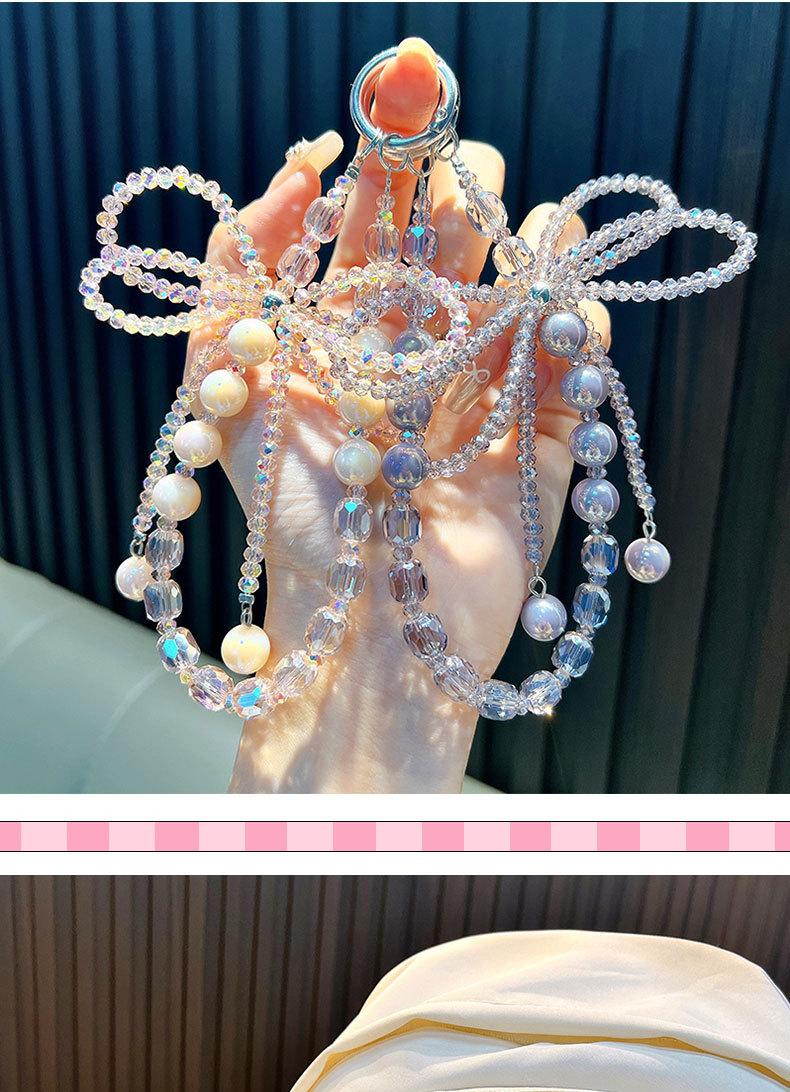 Cadena para Teléfono Móvil con Cuentas Flash Lazo de Cristal Cadena Colgante para Bolsa de Llaves Perla Cordón para Teléfono Móvil Regalo Pequeño Venta al por Mayor
