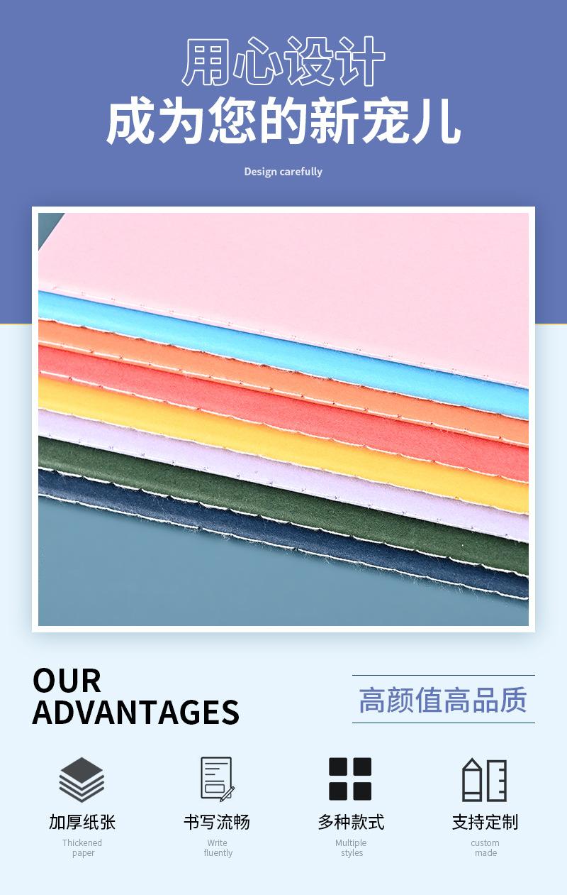 Cuaderno de Papel Kraft de 64K Serie Color Arcoíris Costura Personalizada con Tira Trasera Creativo Estudiante A4 Papelería Bloc de Notas