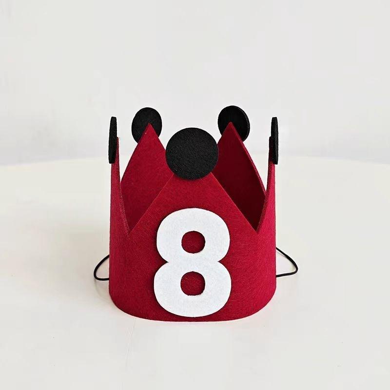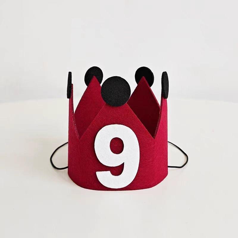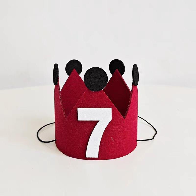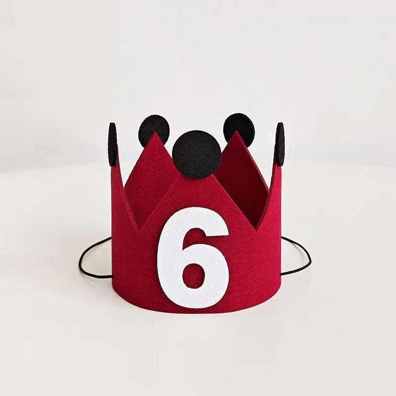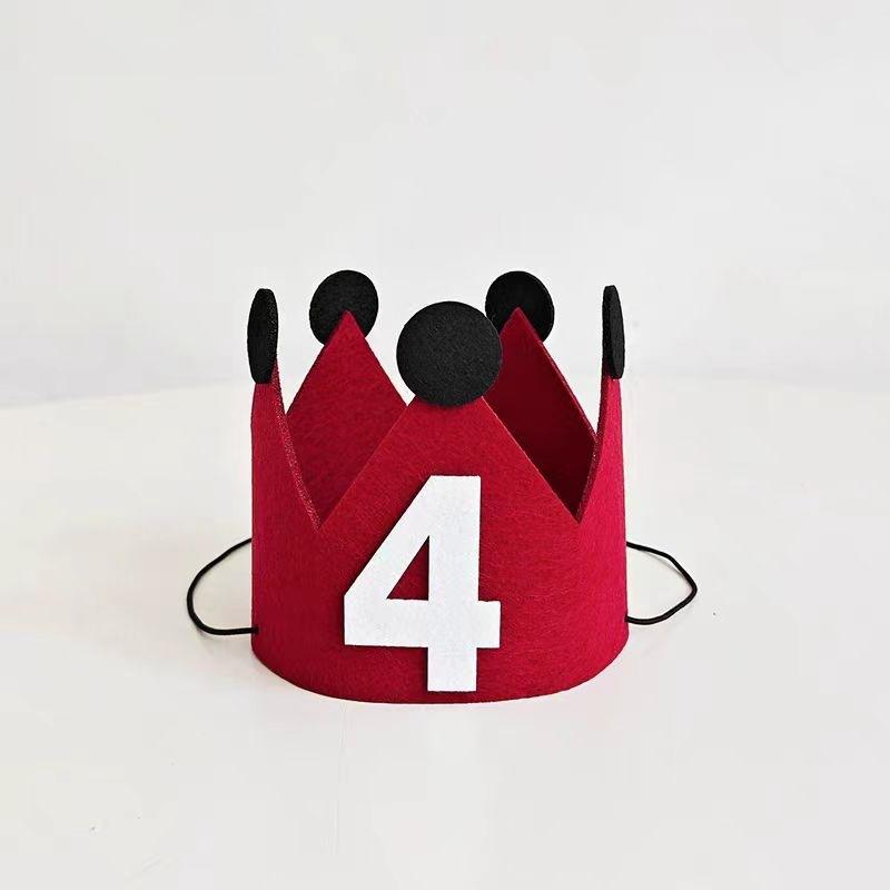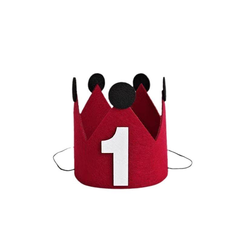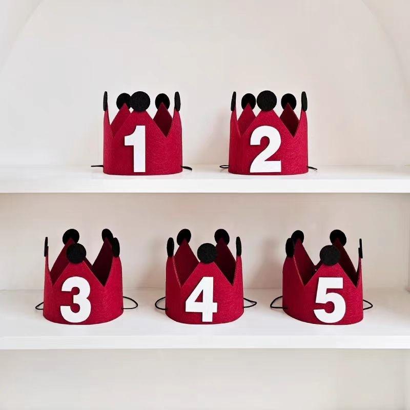 Decoración de fiesta de cumpleaños de bebé coreano, corona digital, sombrero de fieltro rojo, accesorios de ambiente fotográfico