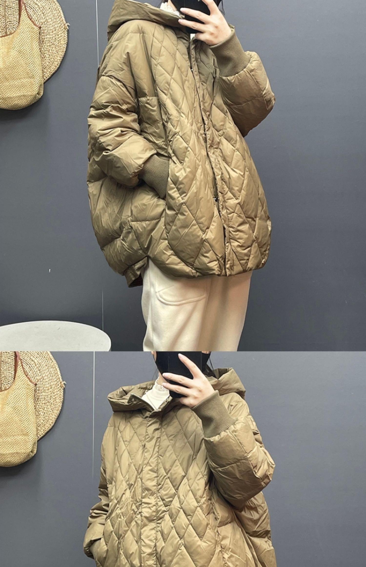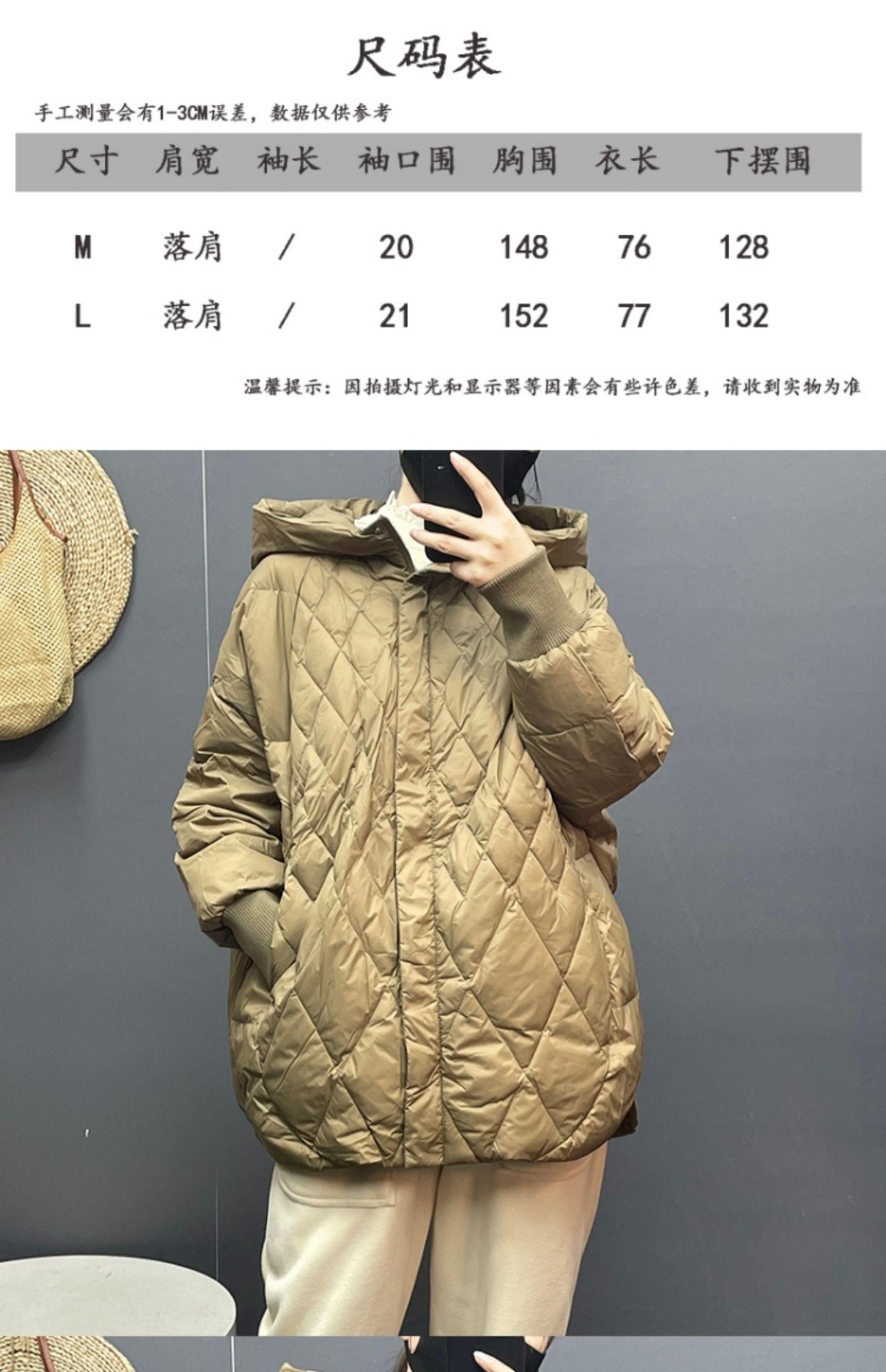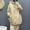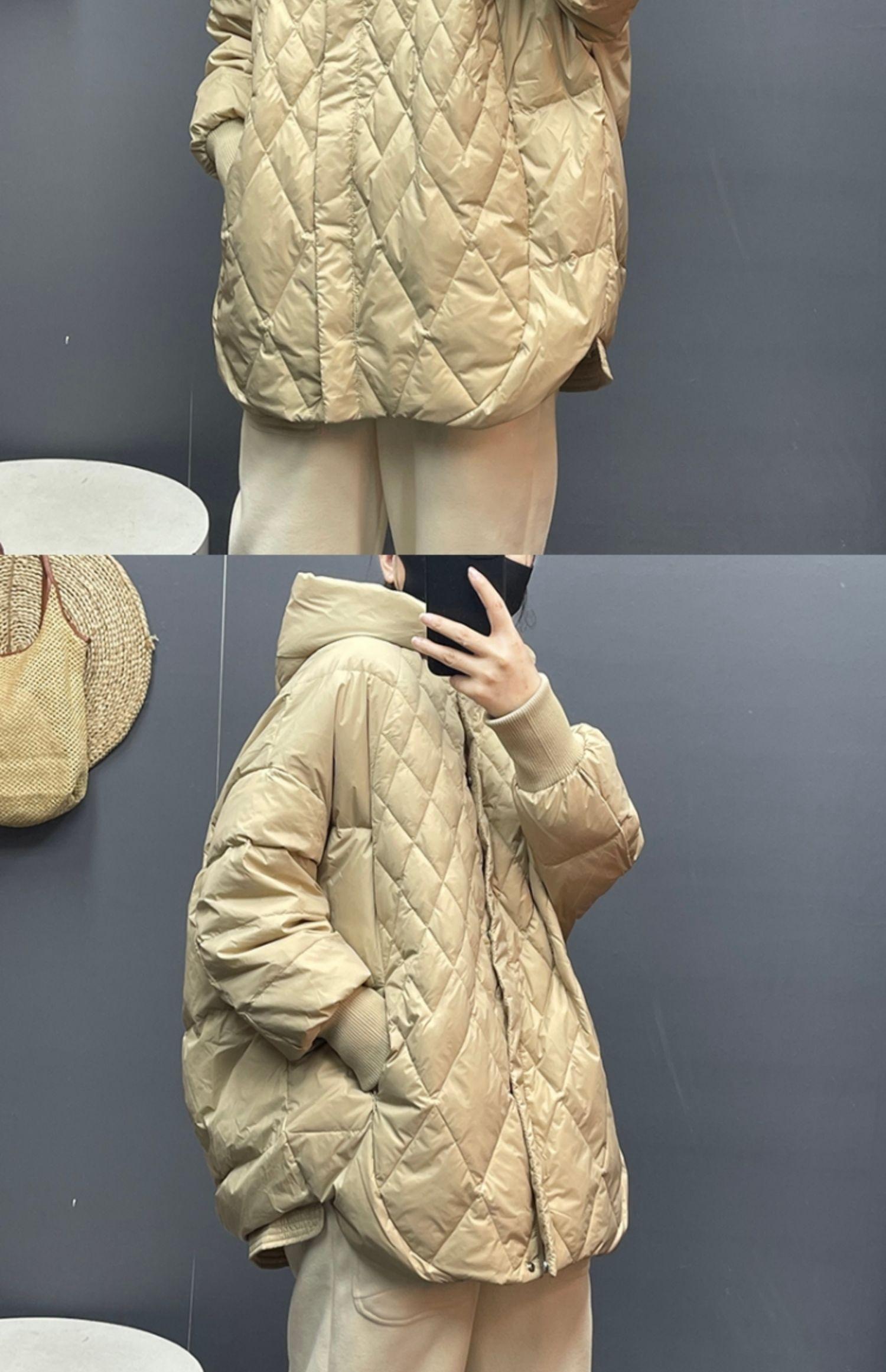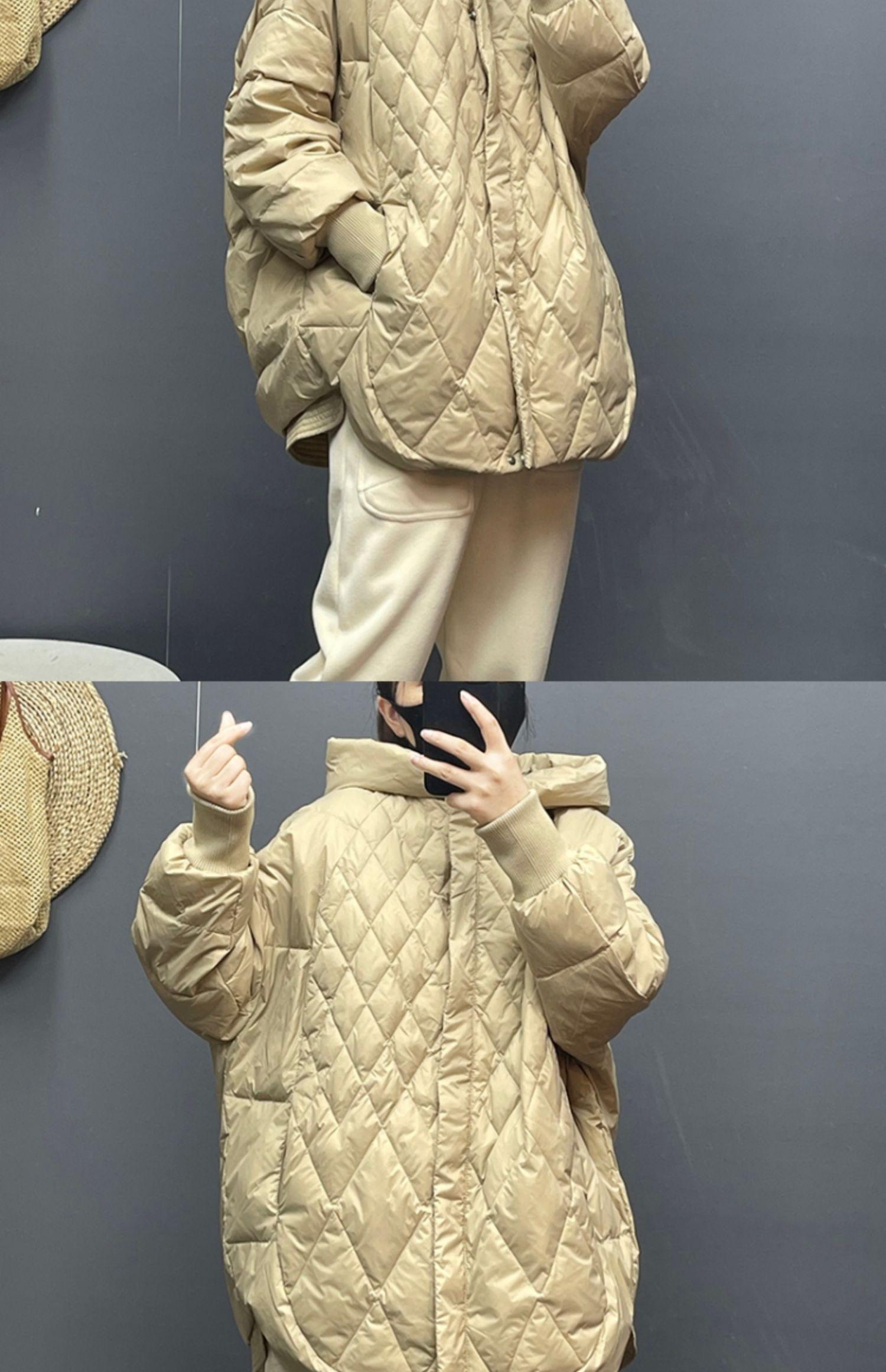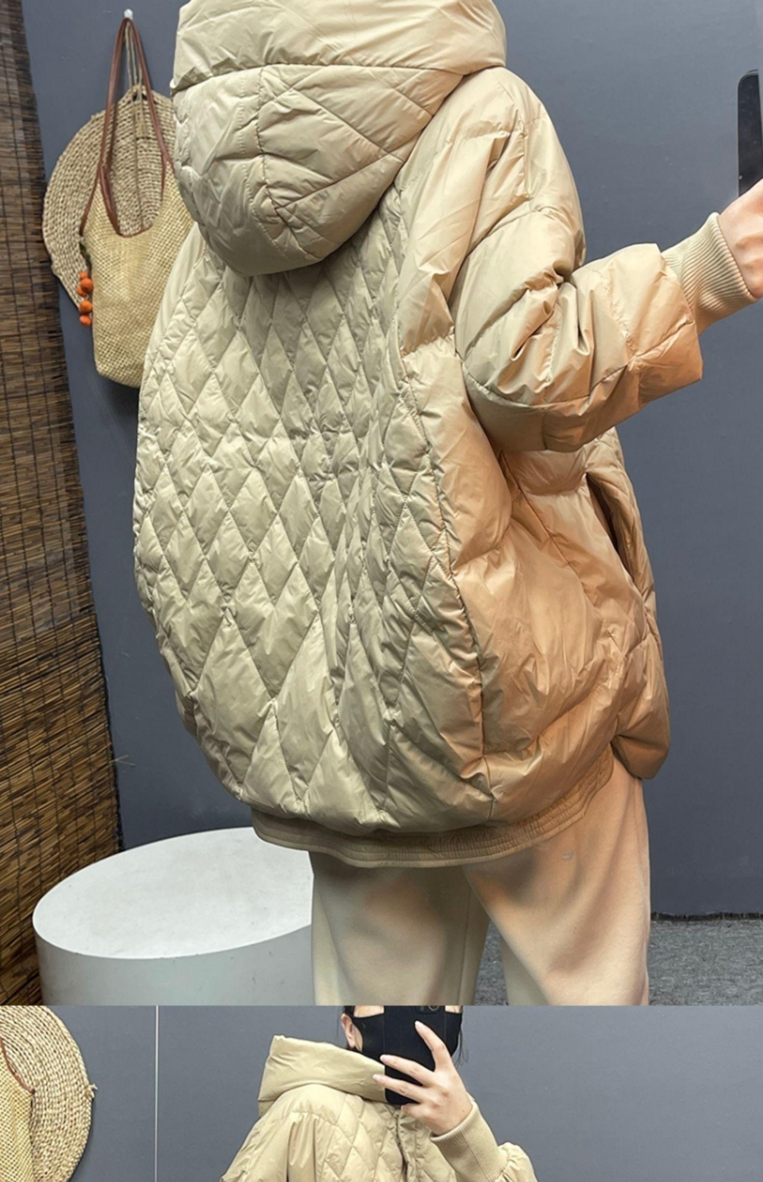 Chaqueta de plumón de invierno para mujer, estilo coreano, a la moda, con capucha suelta y diseño de cuadros de diamantes, abrigo de plumón de pato blanco a la moda