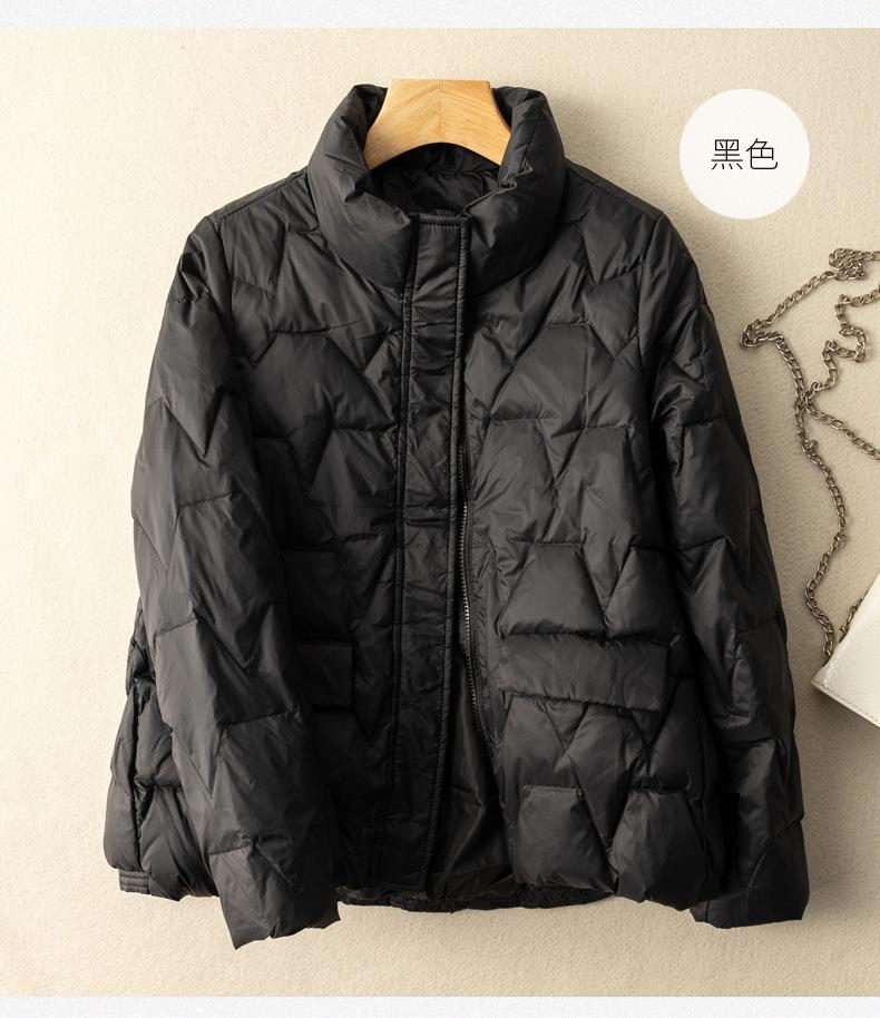 Chamarra de plumón ligera estilo coreano de invierno 2024 para mujer, corta, moderna, holgada, con cuello mao pequeño, la más fácil de combinar, para mujer, a la moda