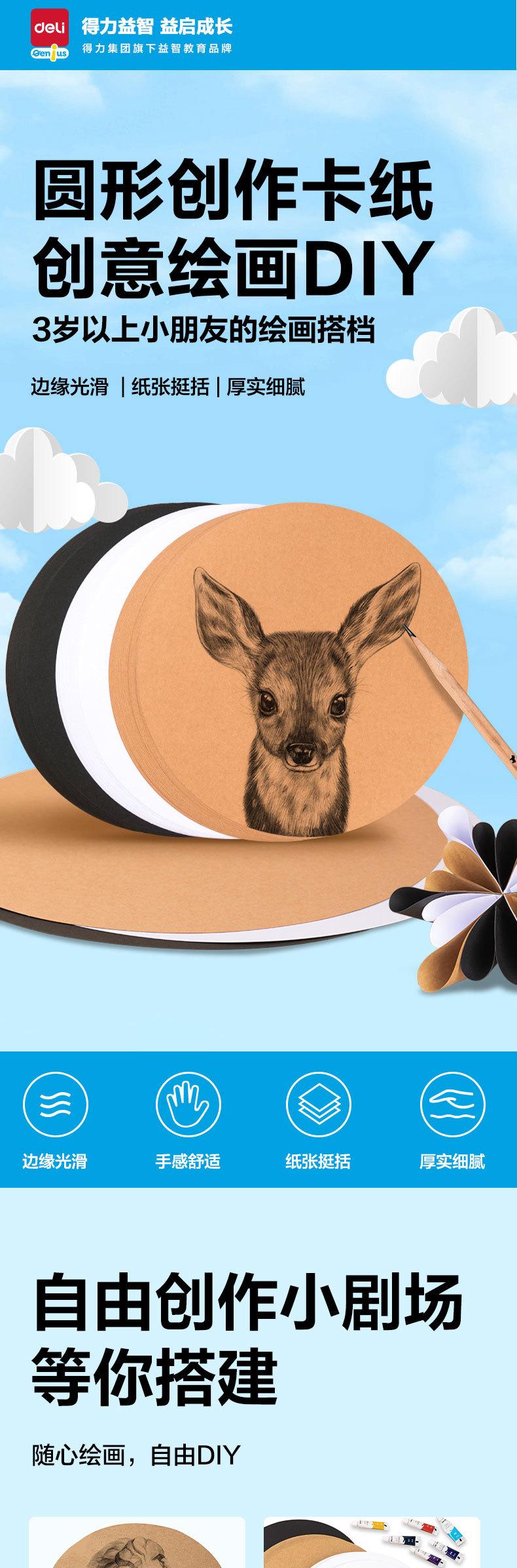 Deli - Cartulina redonda blanca para jardín de infantes, hecha a mano, bricolaje, corte de papel, arte, pintura, cartón duro, estudiante, origami