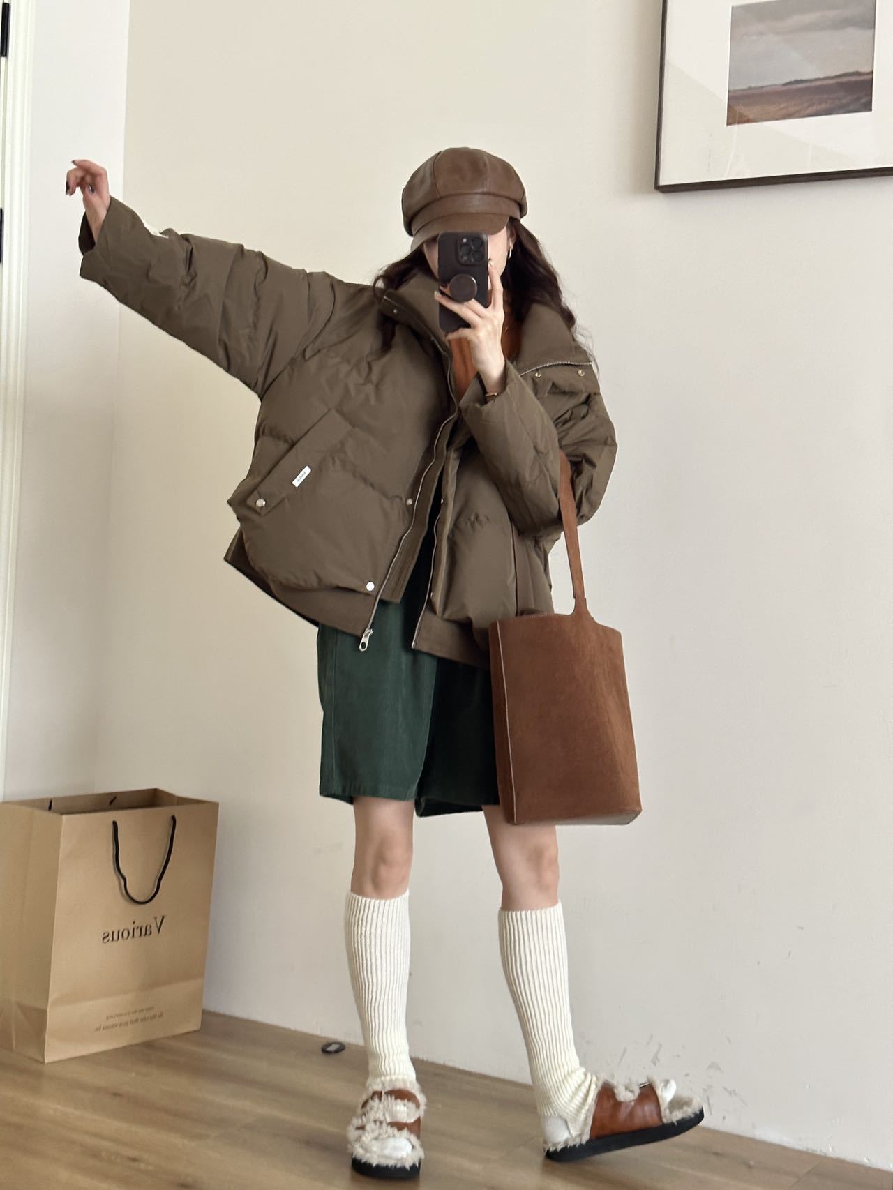 Chaqueta de Algodón Acolchada de Invierno para Mujer 2025, Abrigo Casual Corto Suelto Grueso a la Moda para Figuras Petite