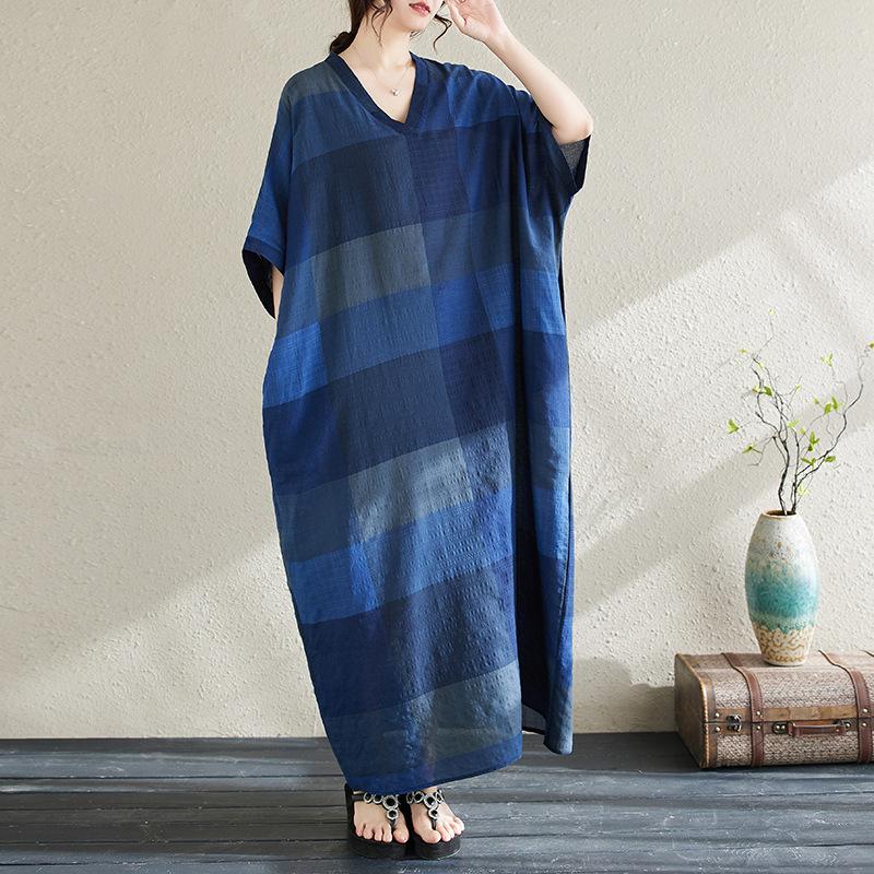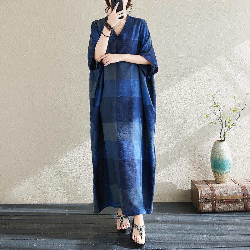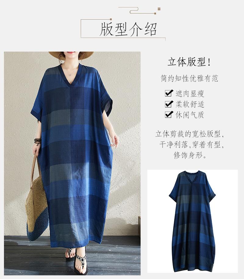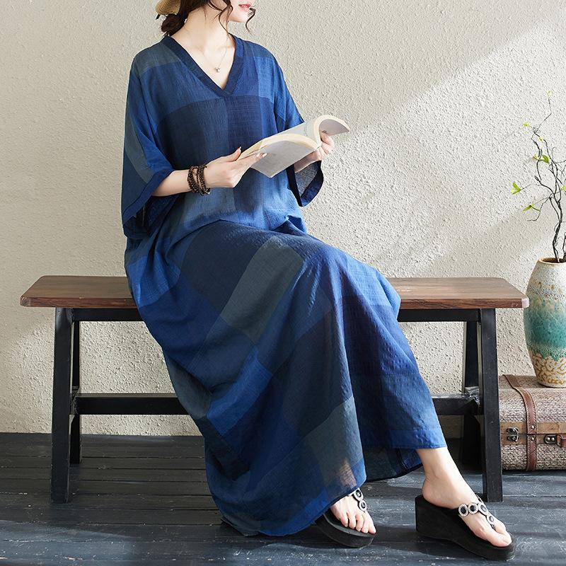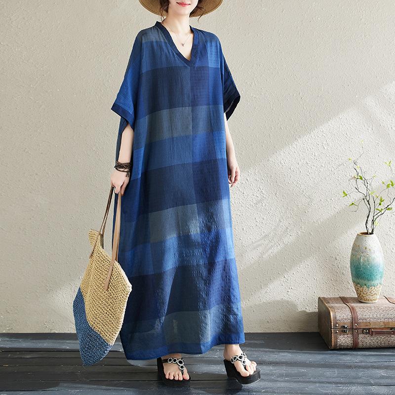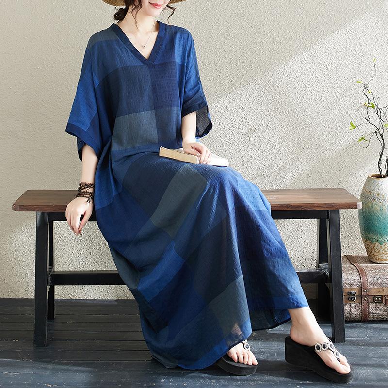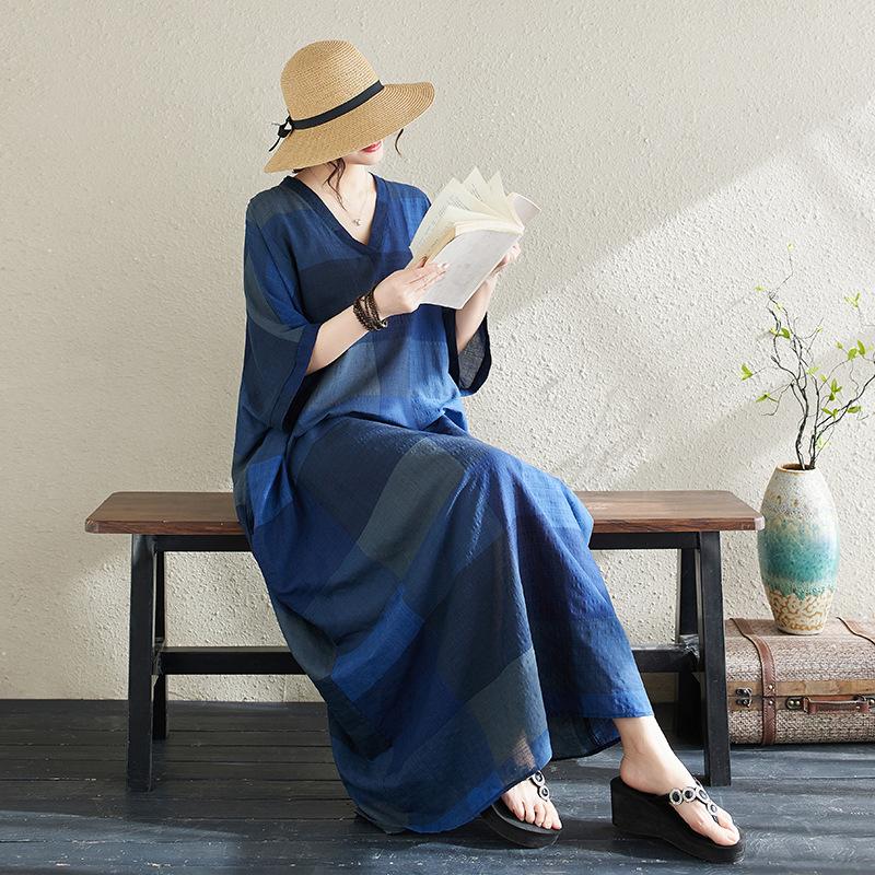 Vestido de verano 2024 con falda larga y cuello en V para mujer, estilo retro de vacaciones, de algodón y lino, con diseño artístico