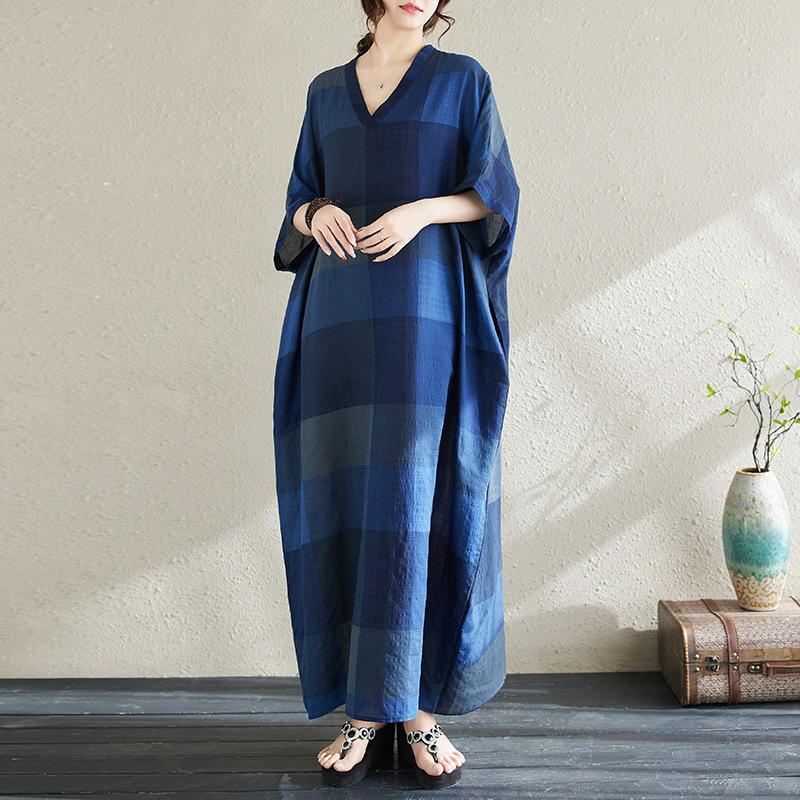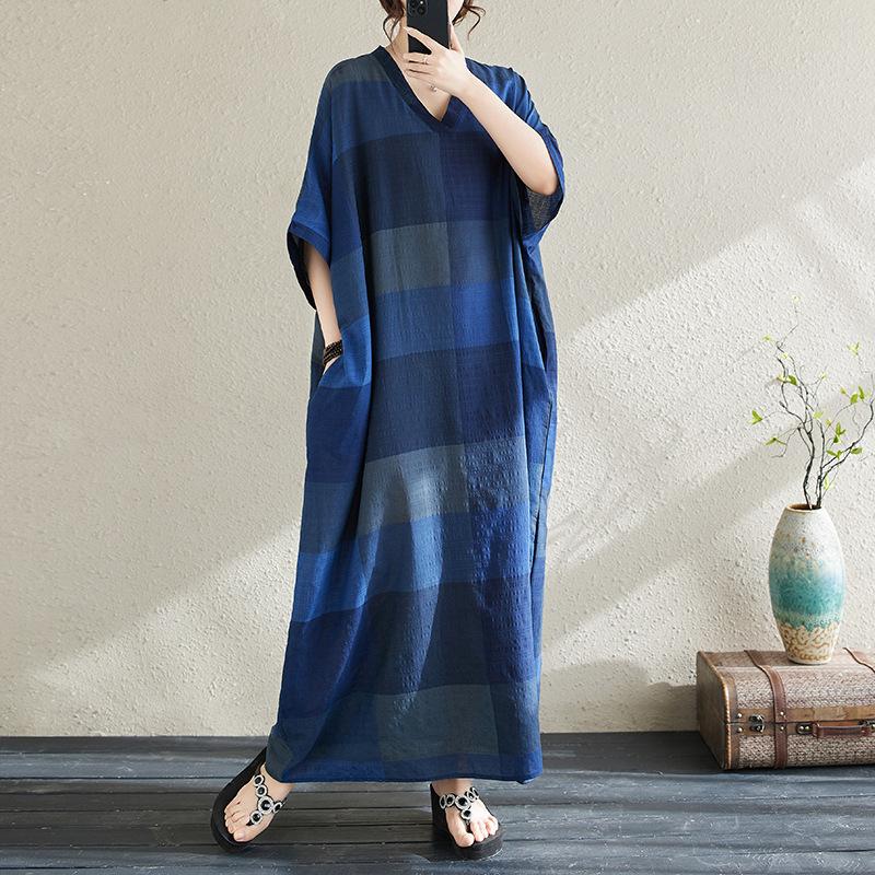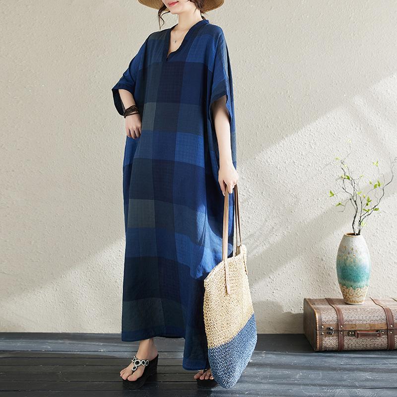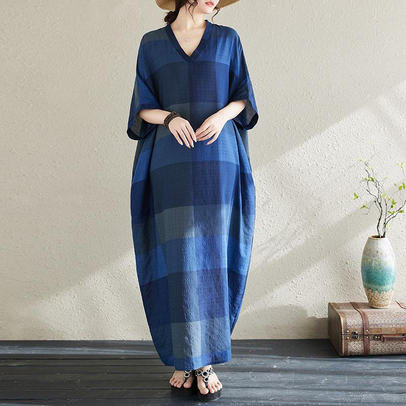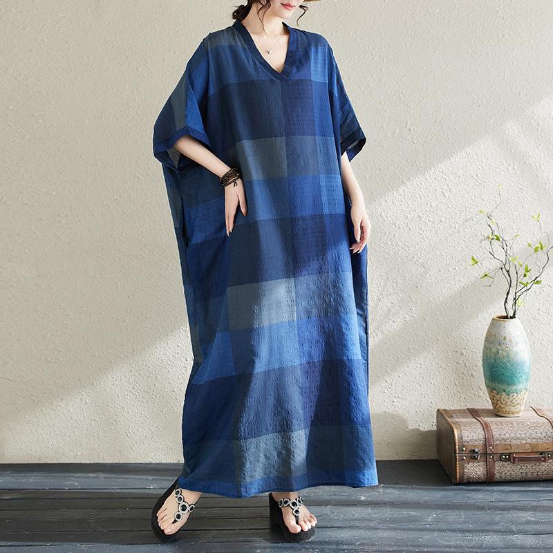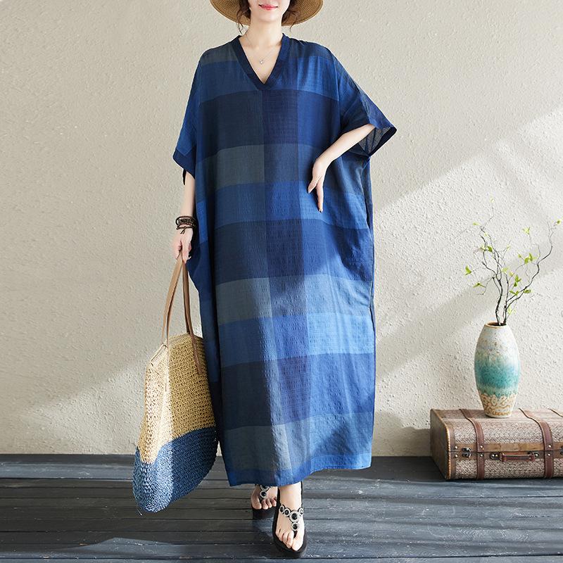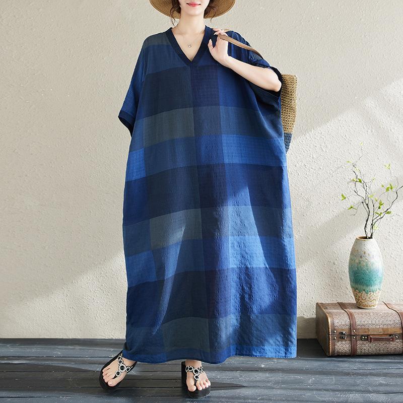 Vestido de verano 2024 con falda larga y cuello en V para mujer, estilo retro de vacaciones, de algodón y lino, con diseño artístico