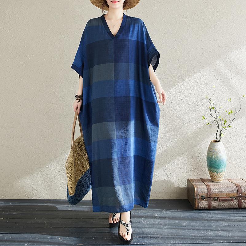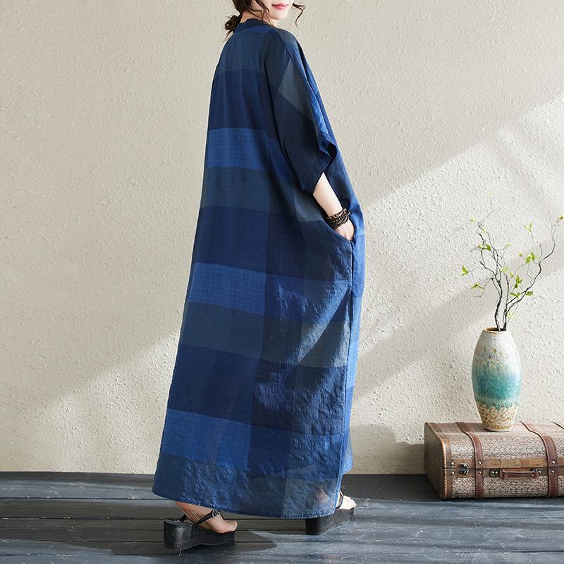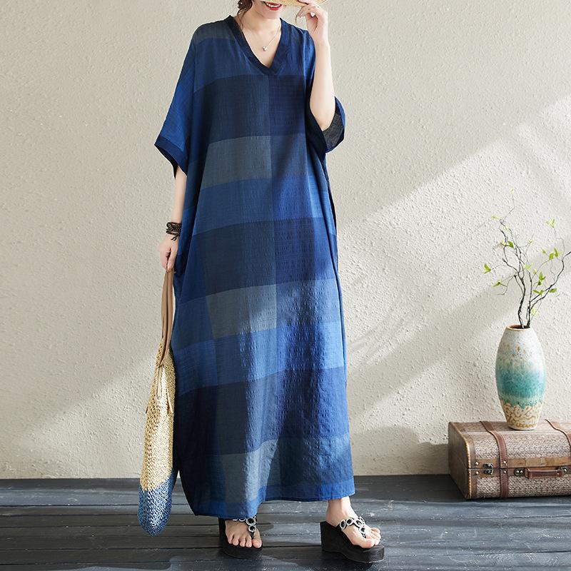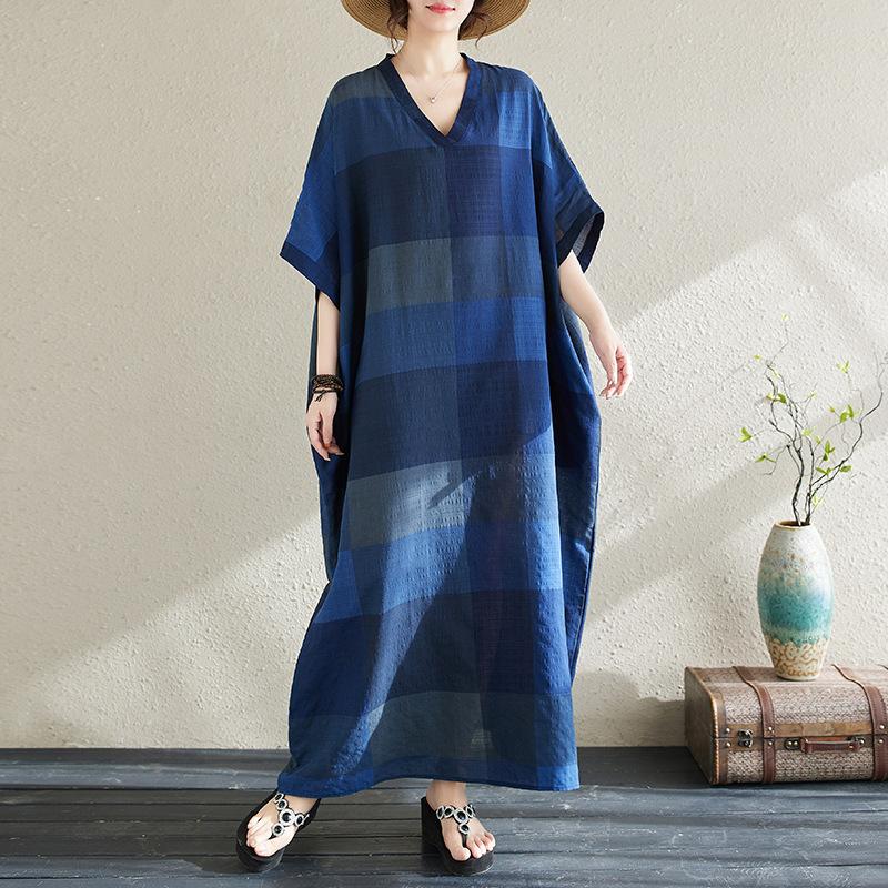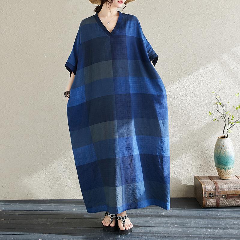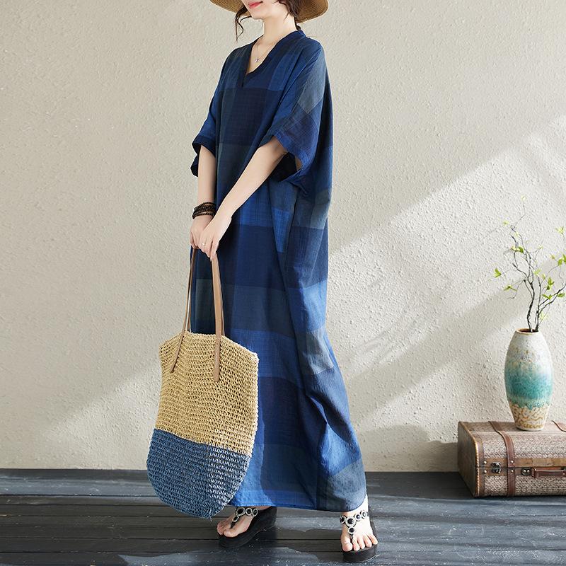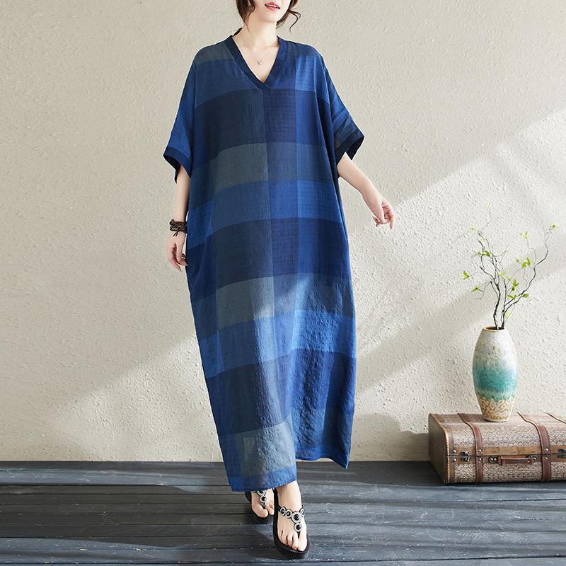 Vestido de verano 2024 con falda larga y cuello en V para mujer, estilo retro de vacaciones, de algodón y lino, con diseño artístico