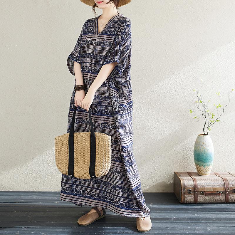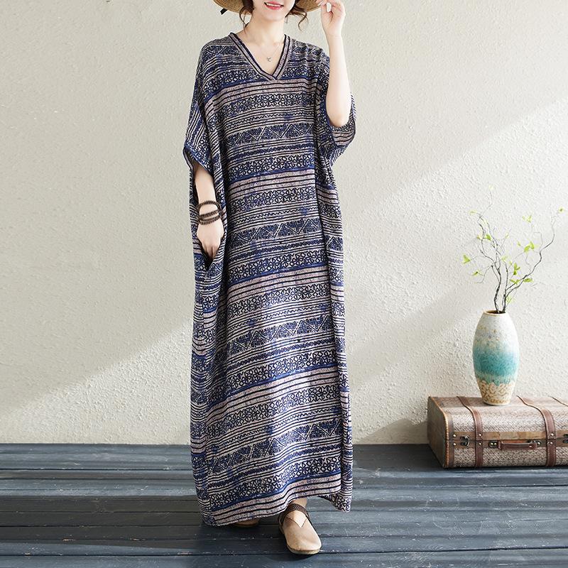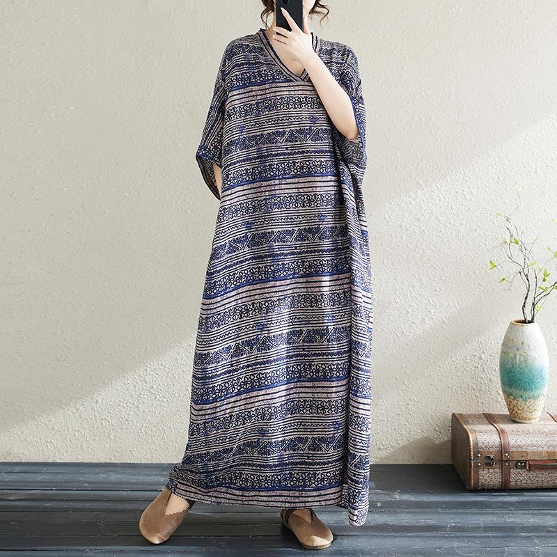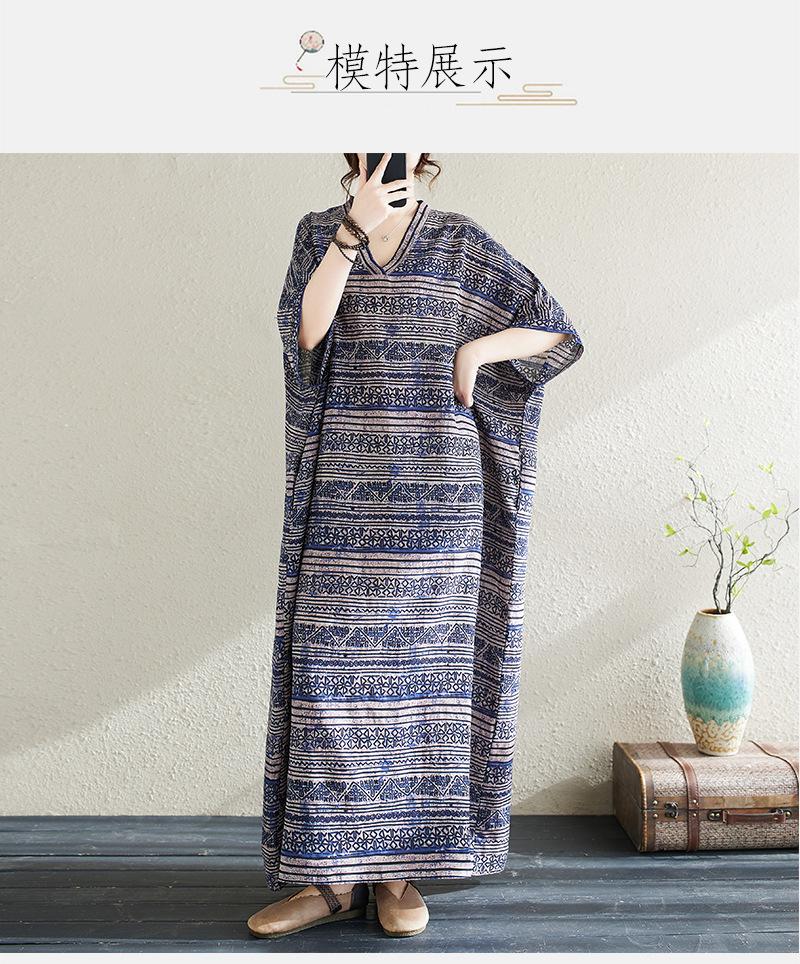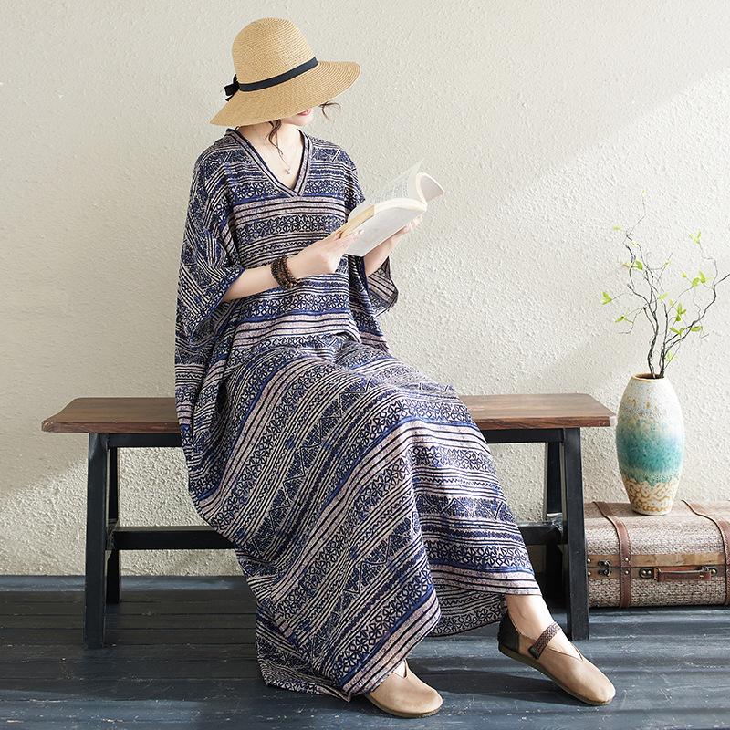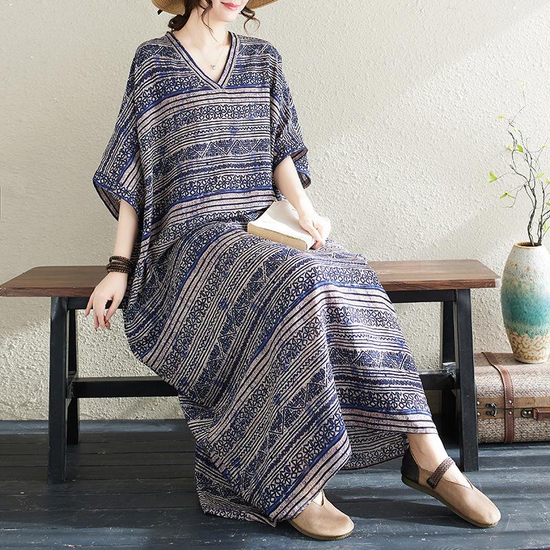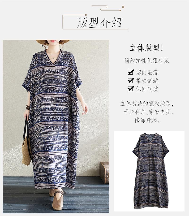 Vestido de verano 2024 con falda larga y cuello en V para mujer, estilo retro de vacaciones, de algodón y lino, con diseño artístico