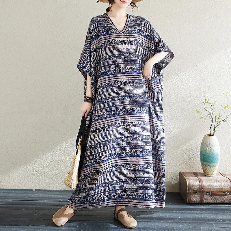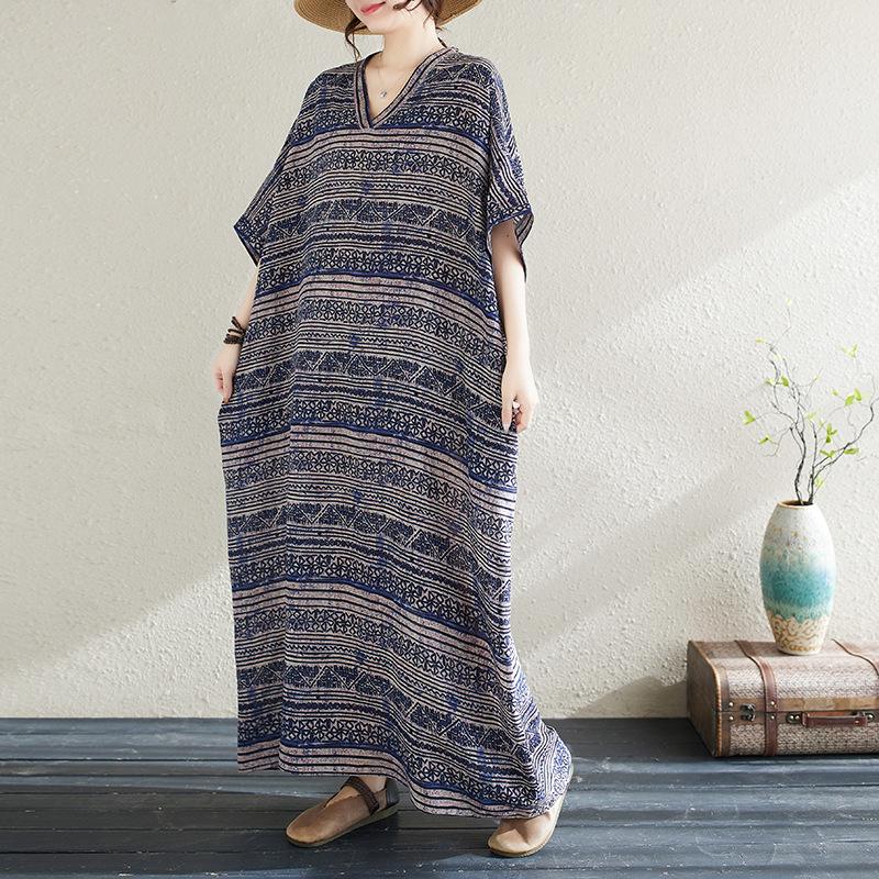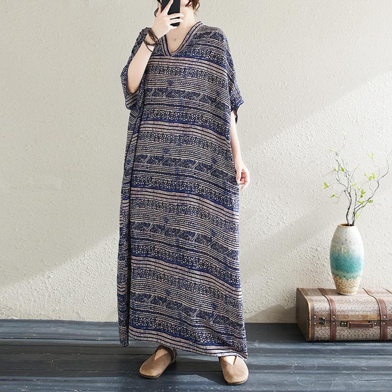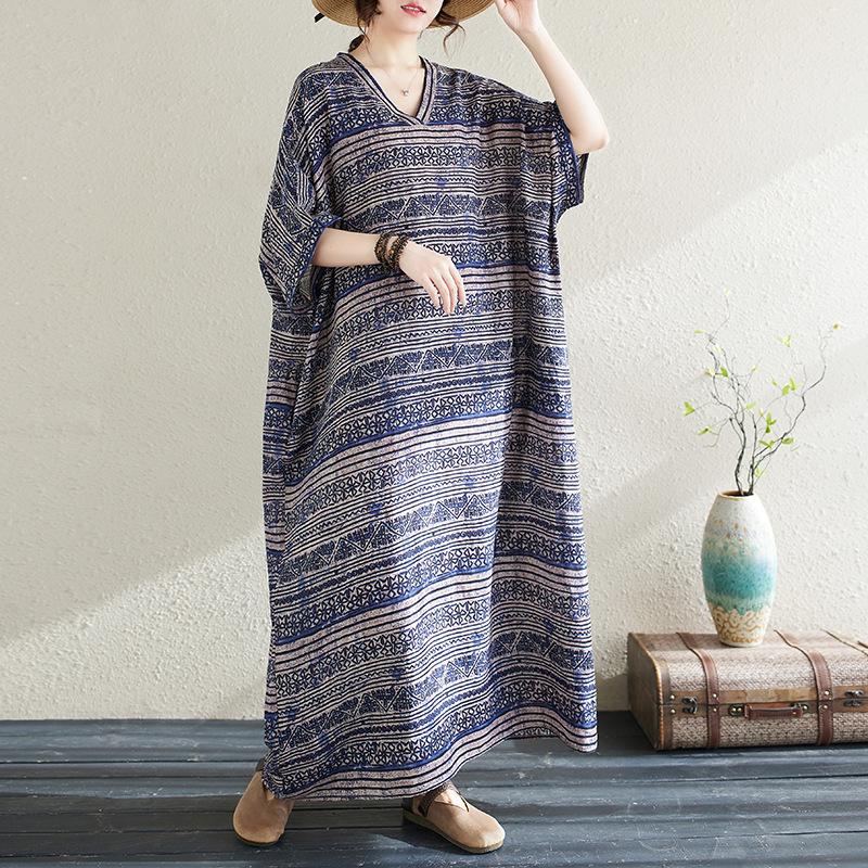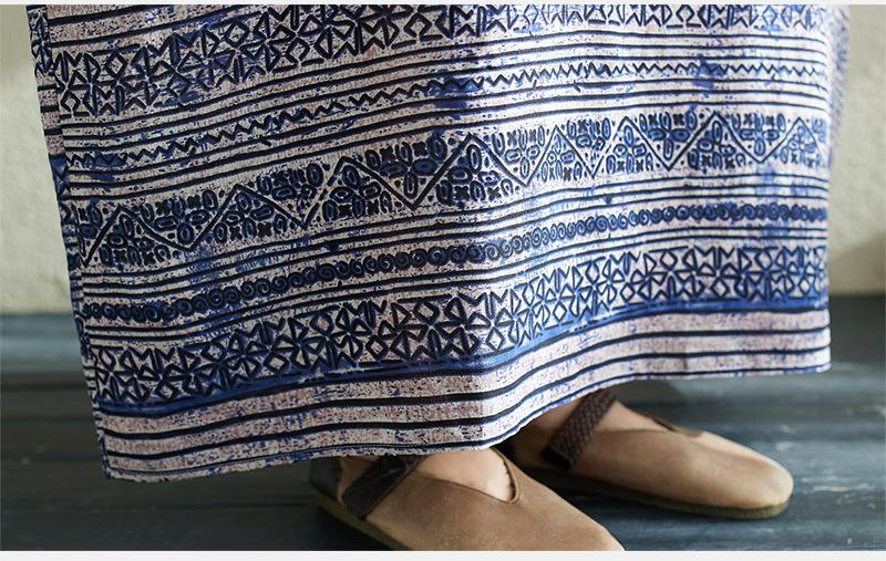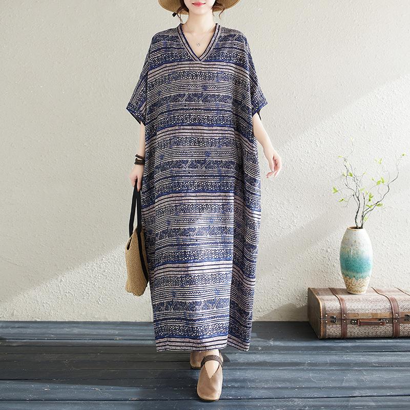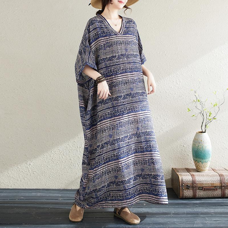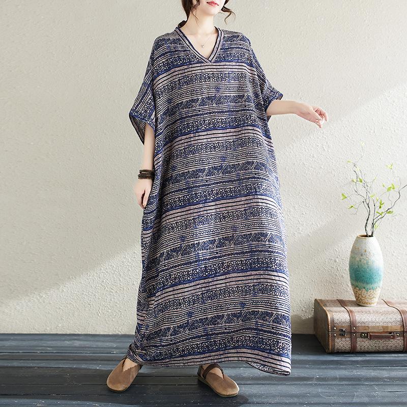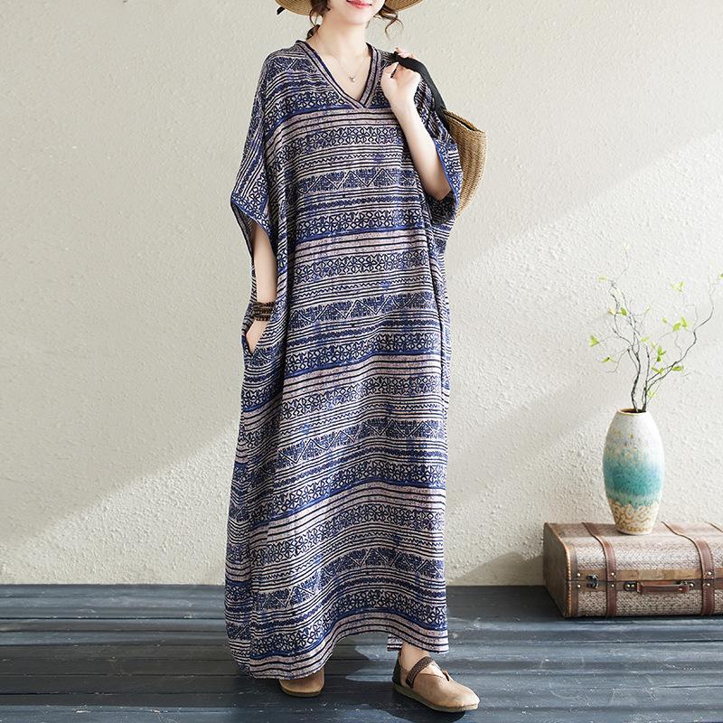 Vestido de verano 2024 con falda larga y cuello en V para mujer, estilo retro de vacaciones, de algodón y lino, con diseño artístico