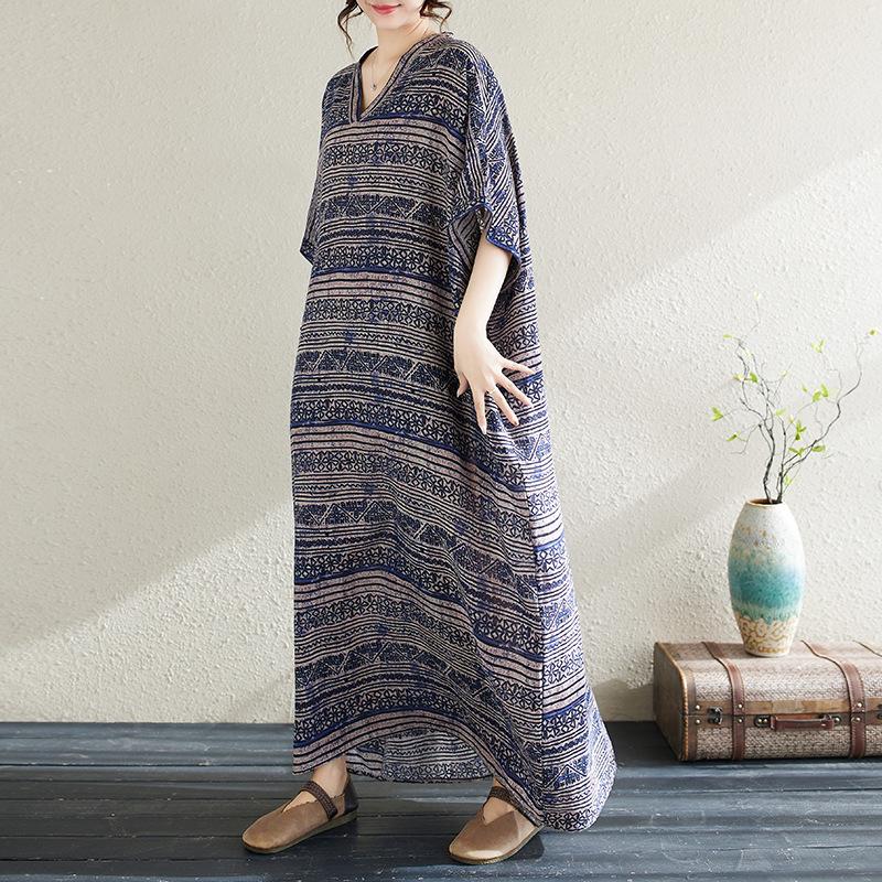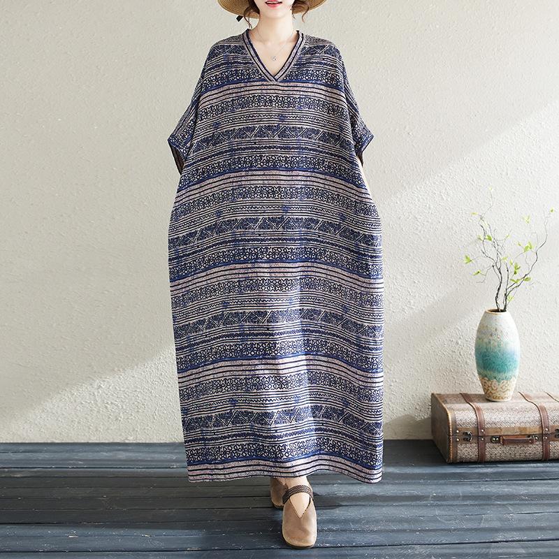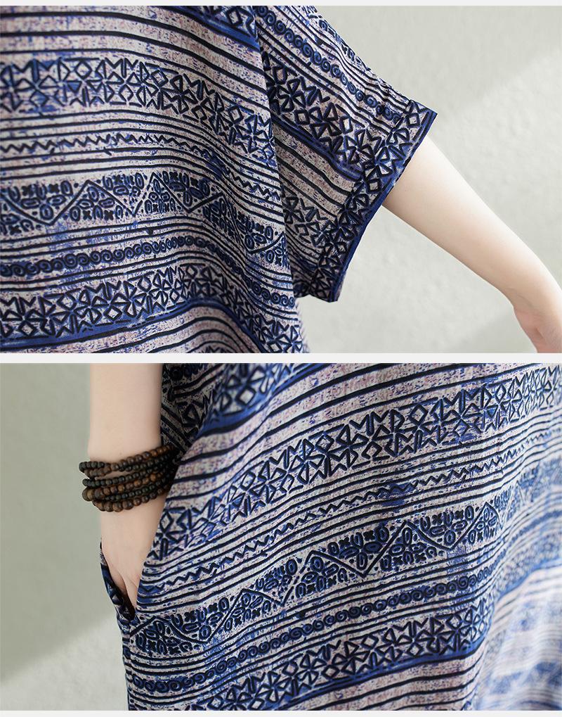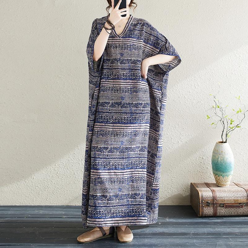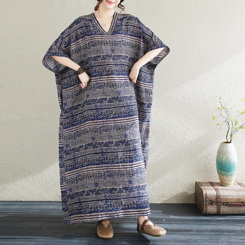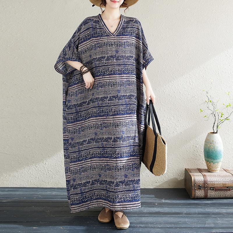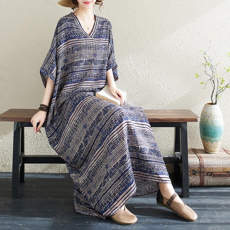 Vestido de verano 2024 con falda larga y cuello en V para mujer, estilo retro de vacaciones, de algodón y lino, con diseño artístico