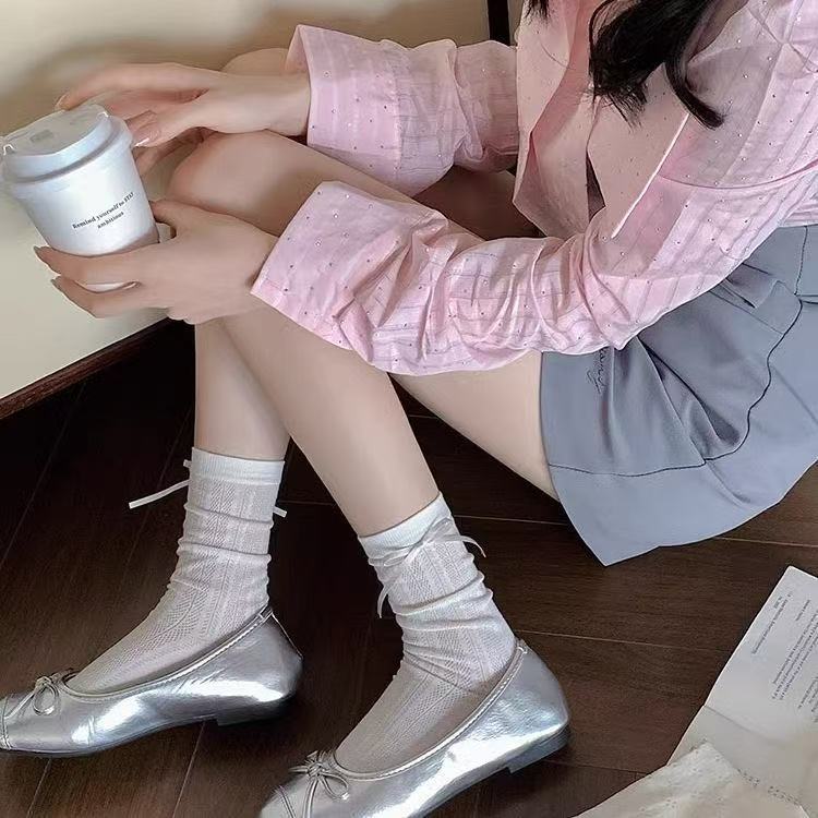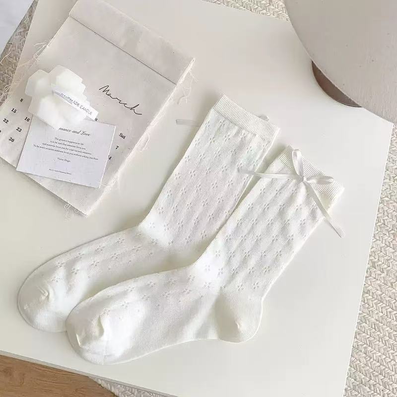 Calcetines de verano para mujer, finos, con lazo, de malla hueca, bonitos calcetines de Corea del Sur para mujer, transpirables
