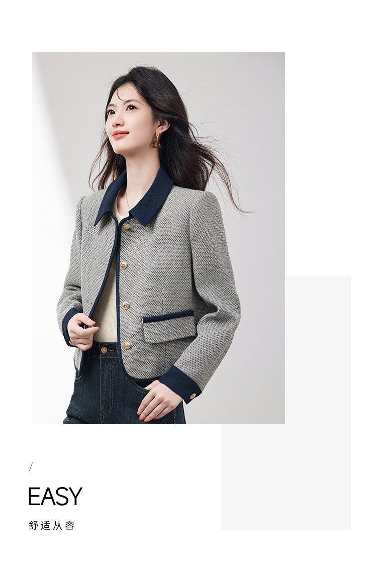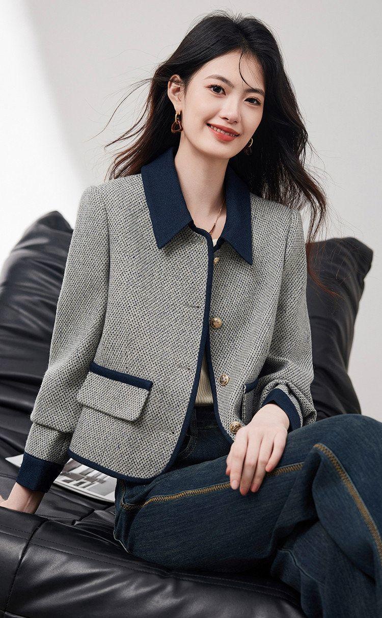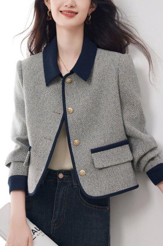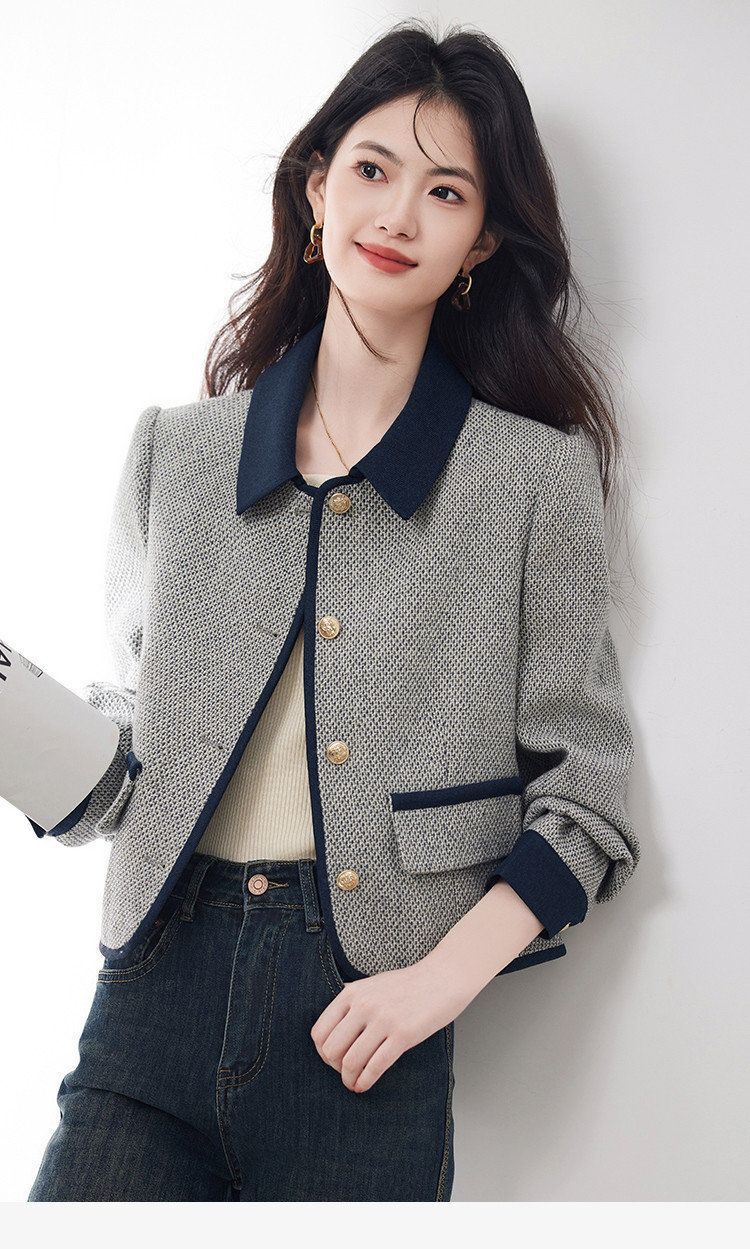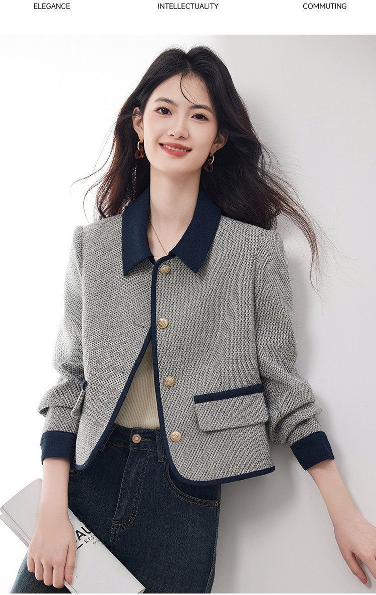 Abrigo de Mujer de Moda Primavera y Otoño 2025 Nuevo Estilo Coreano Slim Look Combinable Elegante Color en Contraste Cuello Polo Simple Botonadura