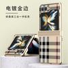 Funda Protectora Anticaídas para Samsung zflip6 Funda para Teléfono Galvanizada zflip5/4/3 Cuero Negocios a Cuadros
