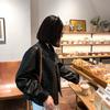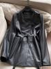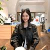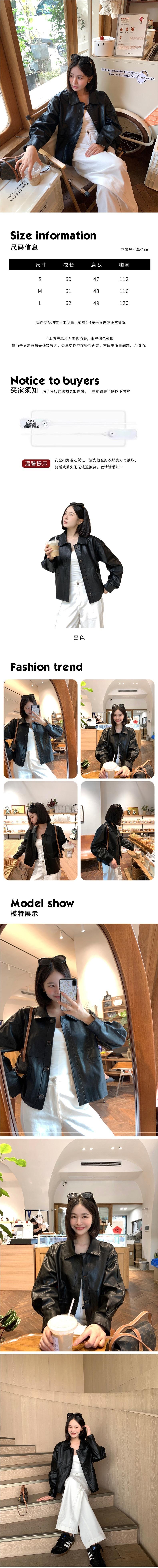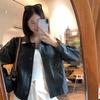 Chaqueta de Cuero Negro Treasure Eleven Chaqueta para Mujer 2025 Primavera y Otoño Nuevo Estilo Caliente Único Súper Bonito Pequeño