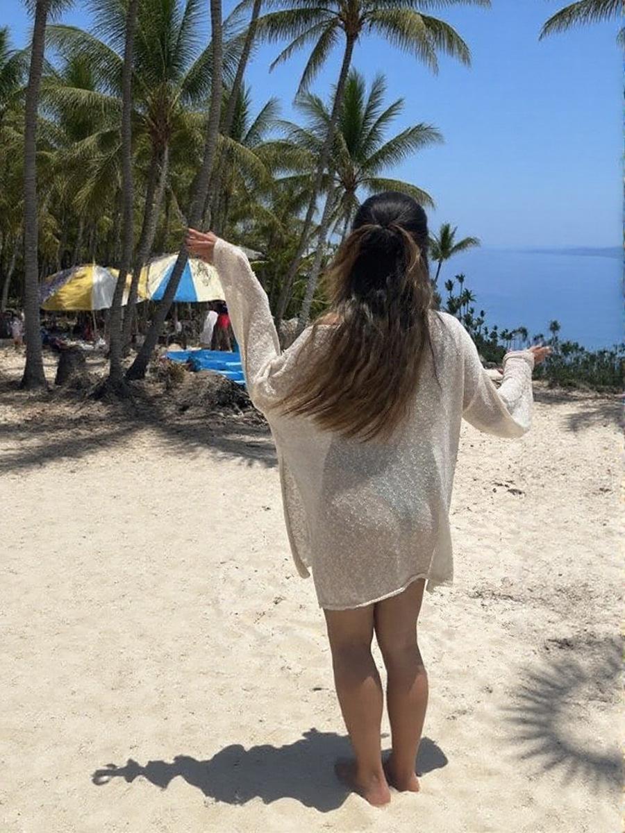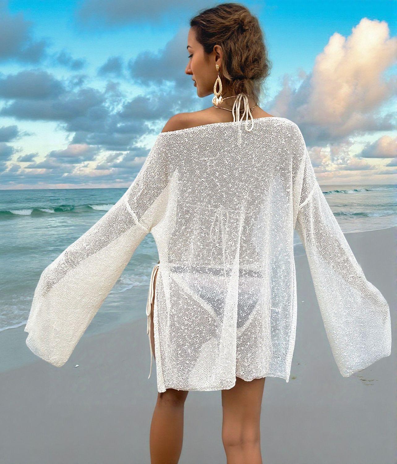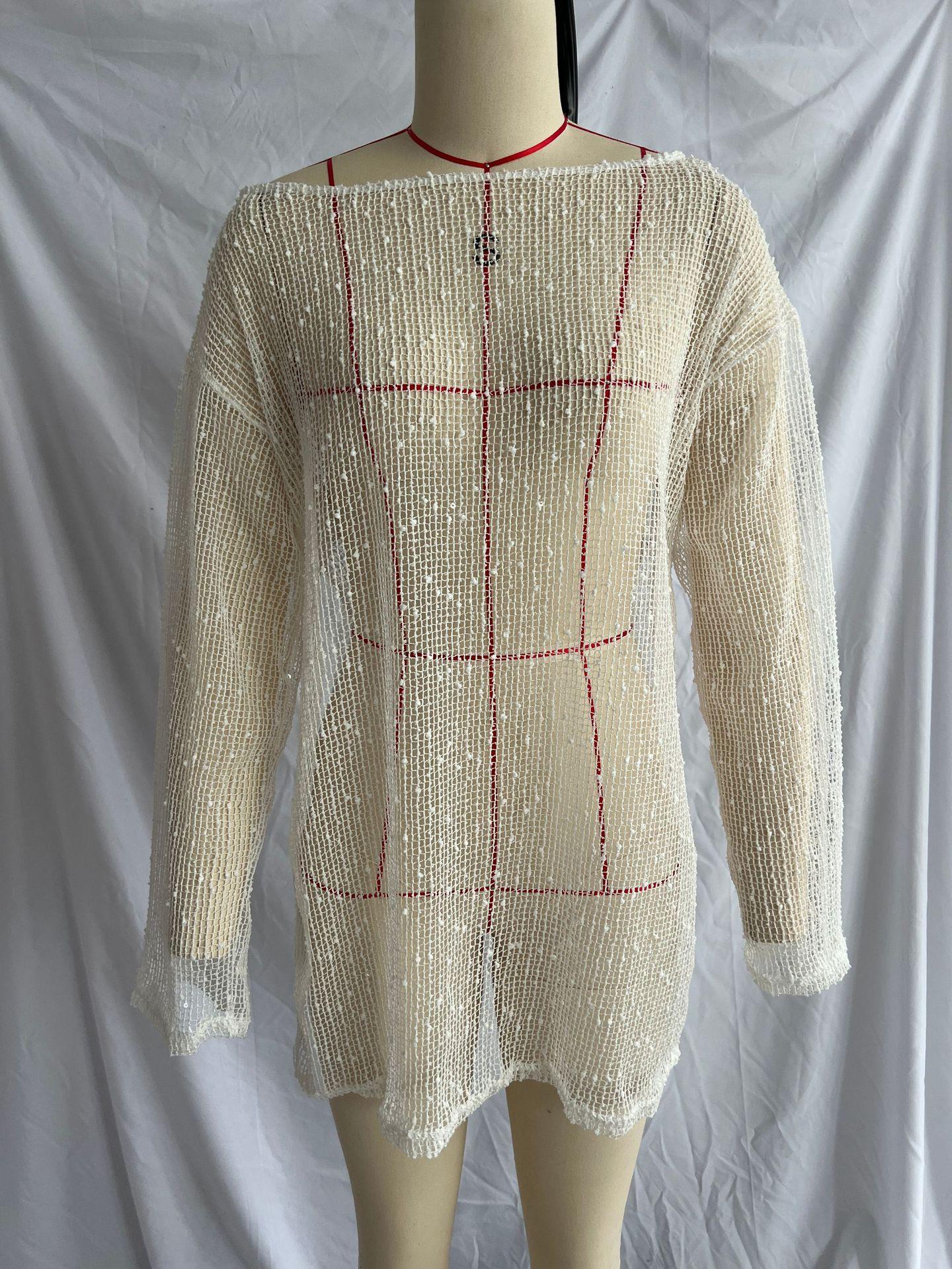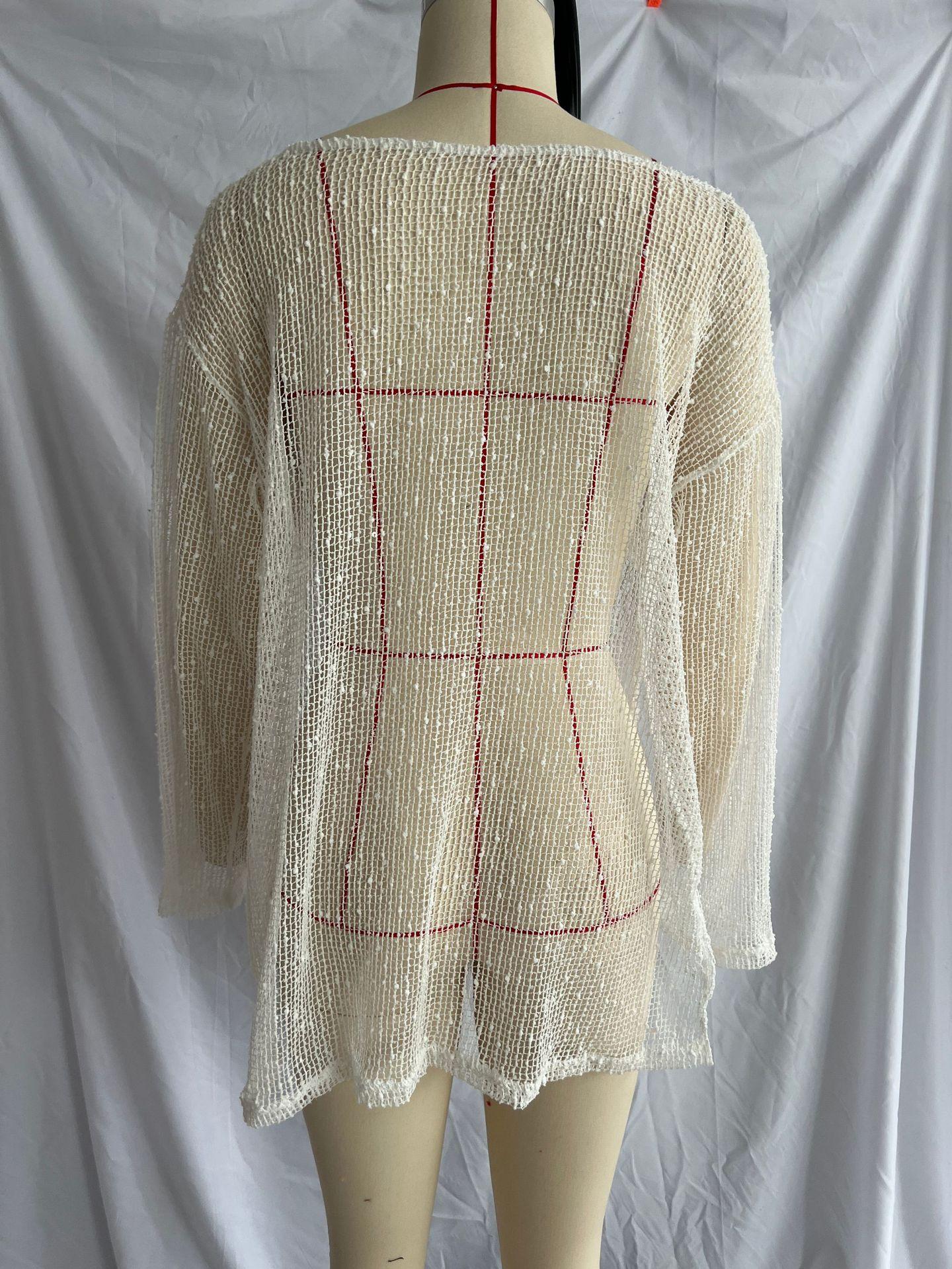 Vestido de Playa Nuevo de Verano Transfronterizo Sexy Tejido con Abertura Suelto Traje de Baño Blusa Ligero Perspectiva Vestido de Lentejuelas