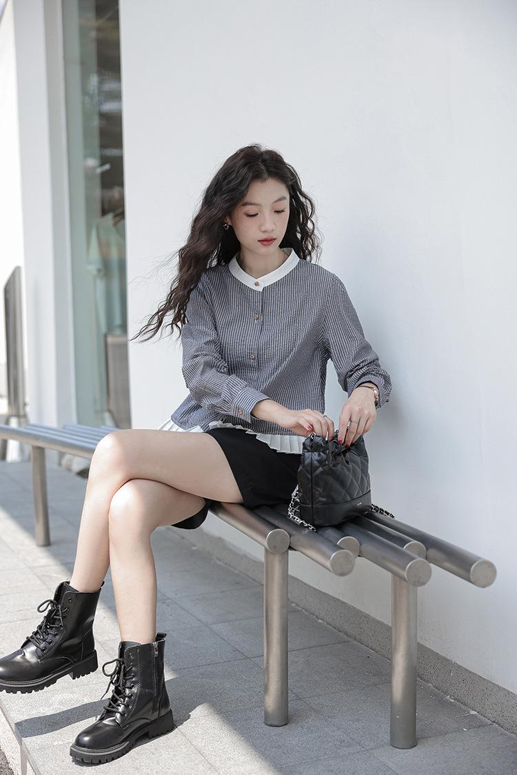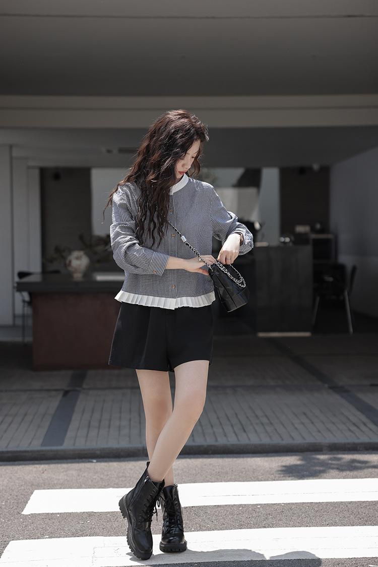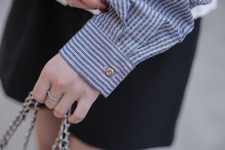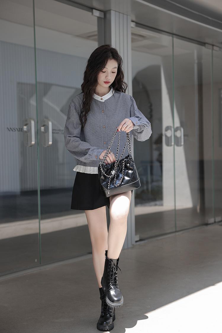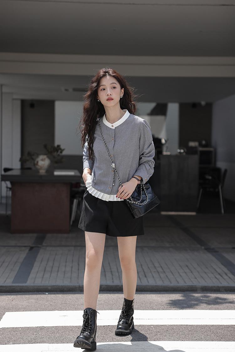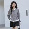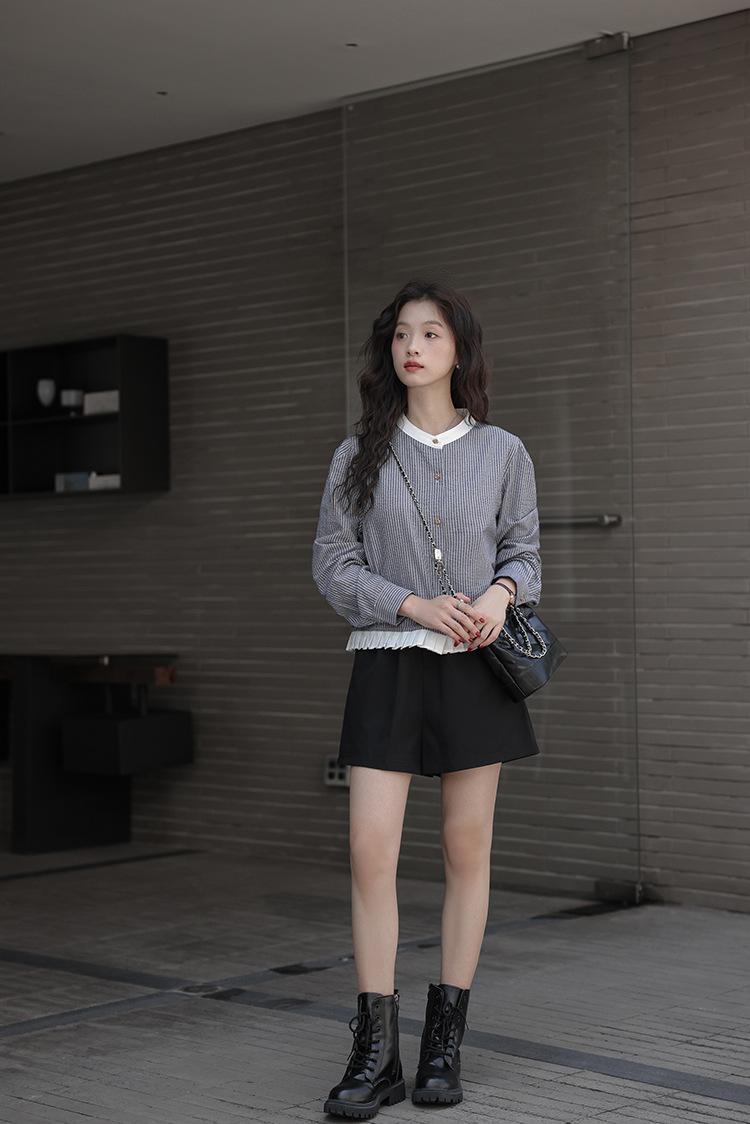 Camisa de manga larga a rayas para mujer, estilo coreano, elegante, de moda, con cuello redondo y diseño de dos piezas a juego, estilo falso, otoño 2024