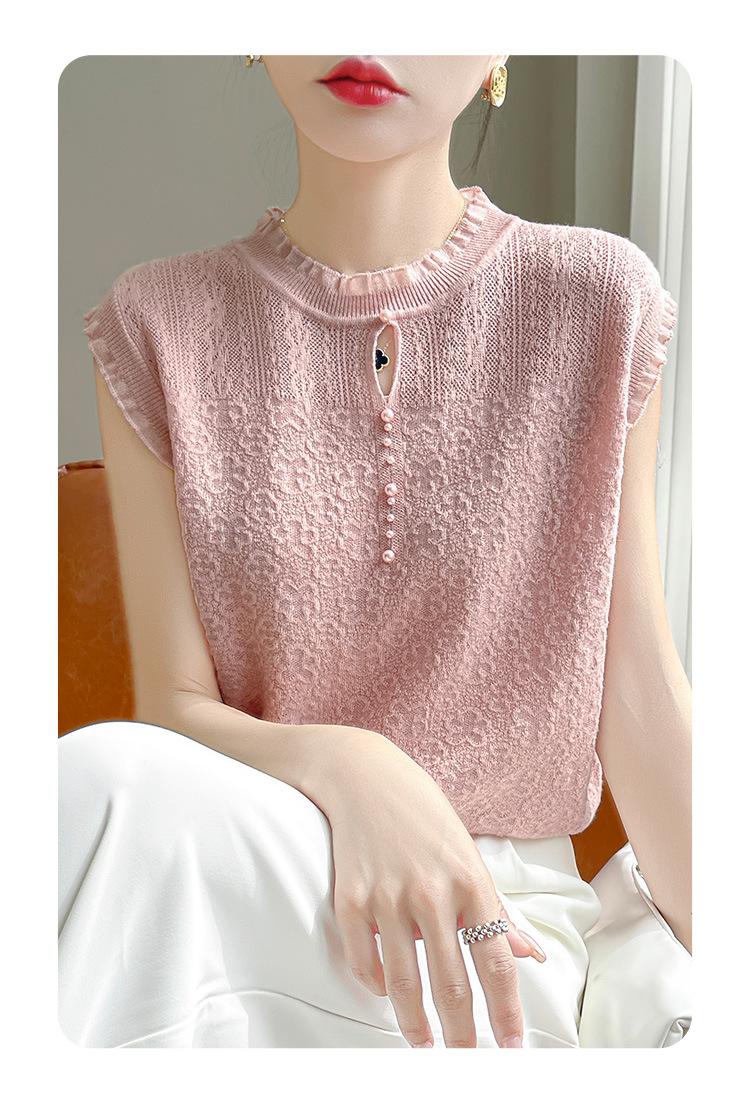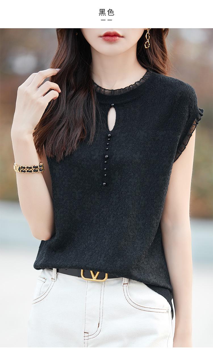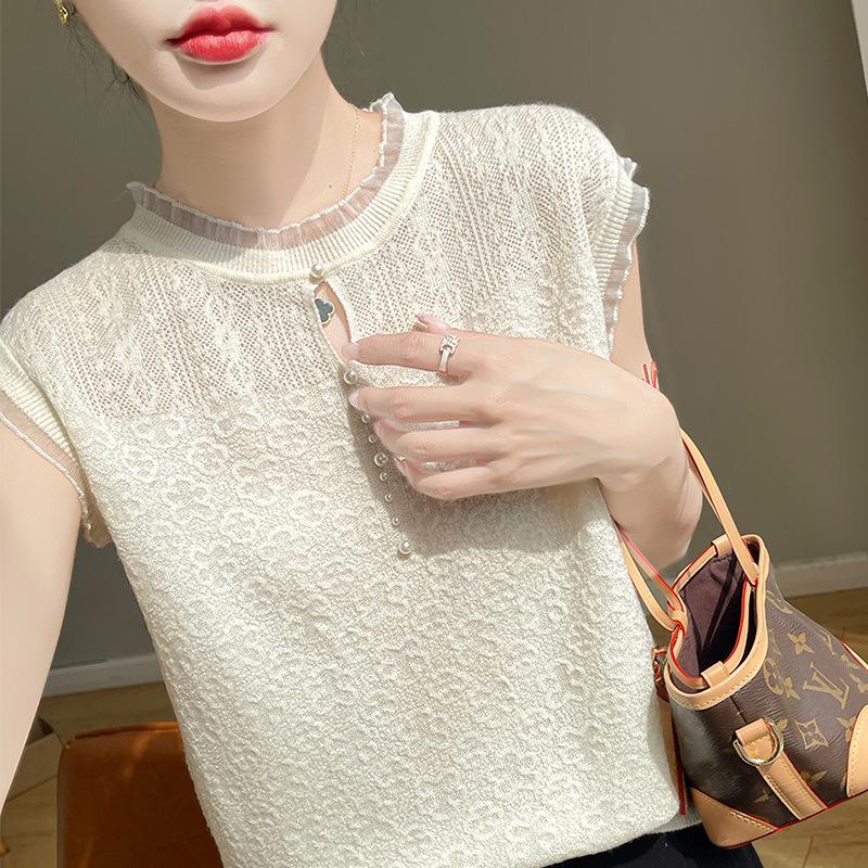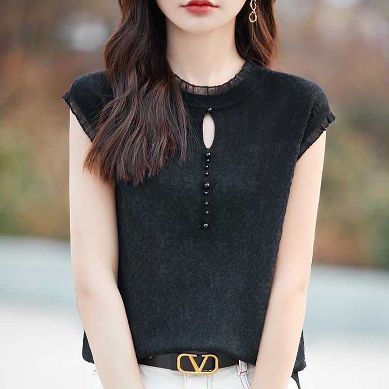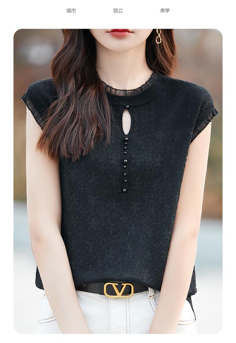 Camisola de 24 estilos para mujer, ropa interior de primavera y verano, nueva camisa de punto con encaje de lana peinada, ropa exterior corta para mujer