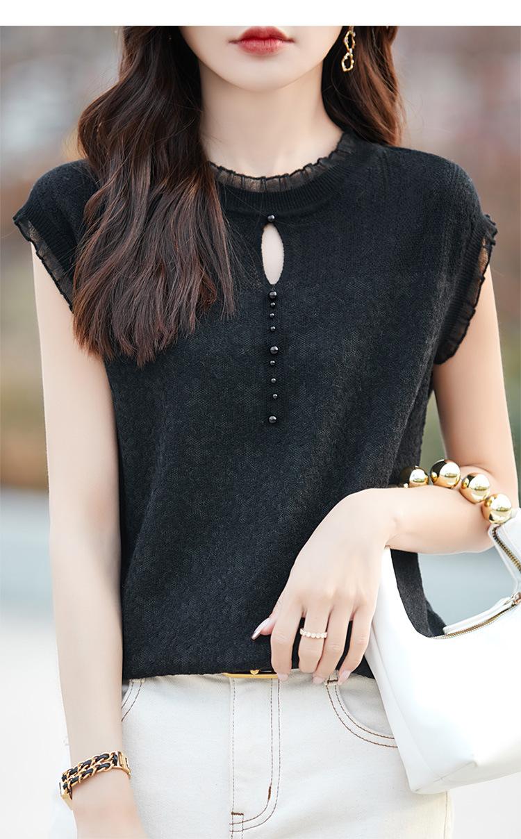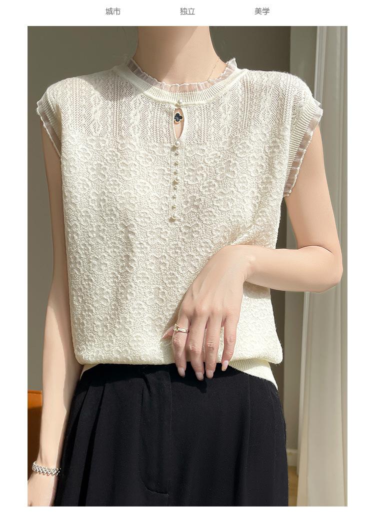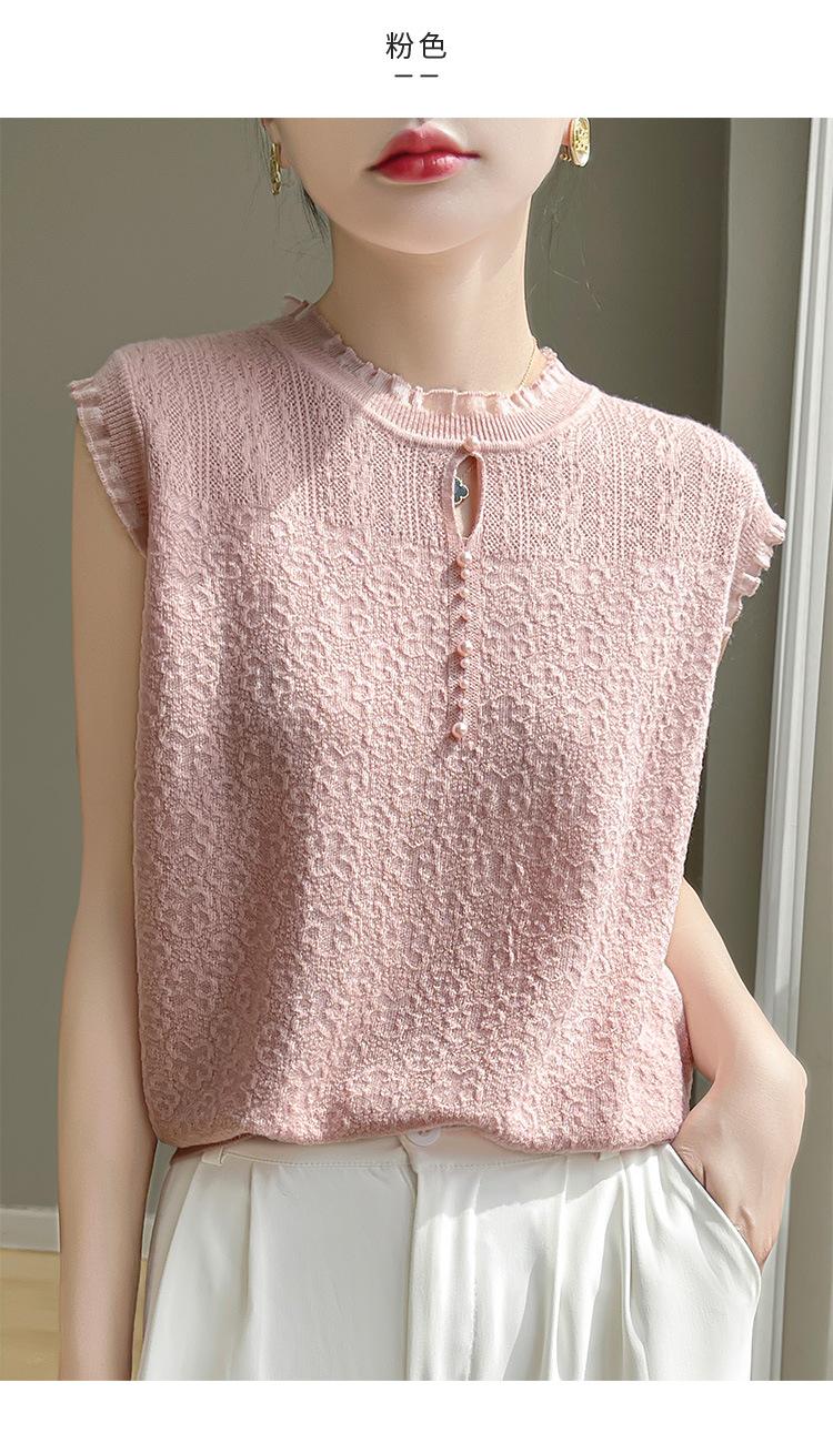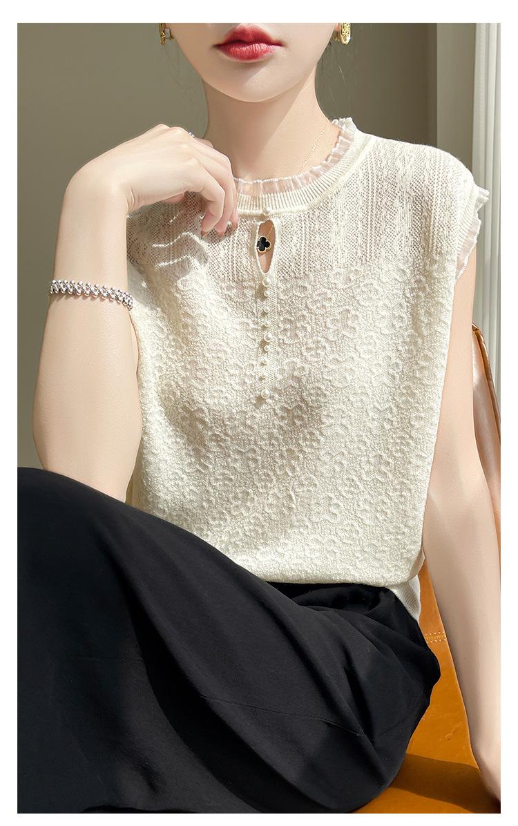 Camisola de 24 estilos para mujer, ropa interior de primavera y verano, nueva camisa de punto con encaje de lana peinada, ropa exterior corta para mujer