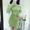 Vestido ajustado sexy de estilo americano con hombros descubiertos y mangas acampanadas para mujer, falda plisada con cintura adelgazante y hombros descubiertos para otoño