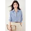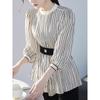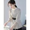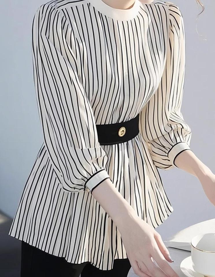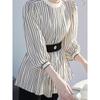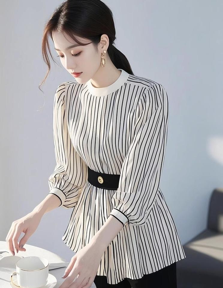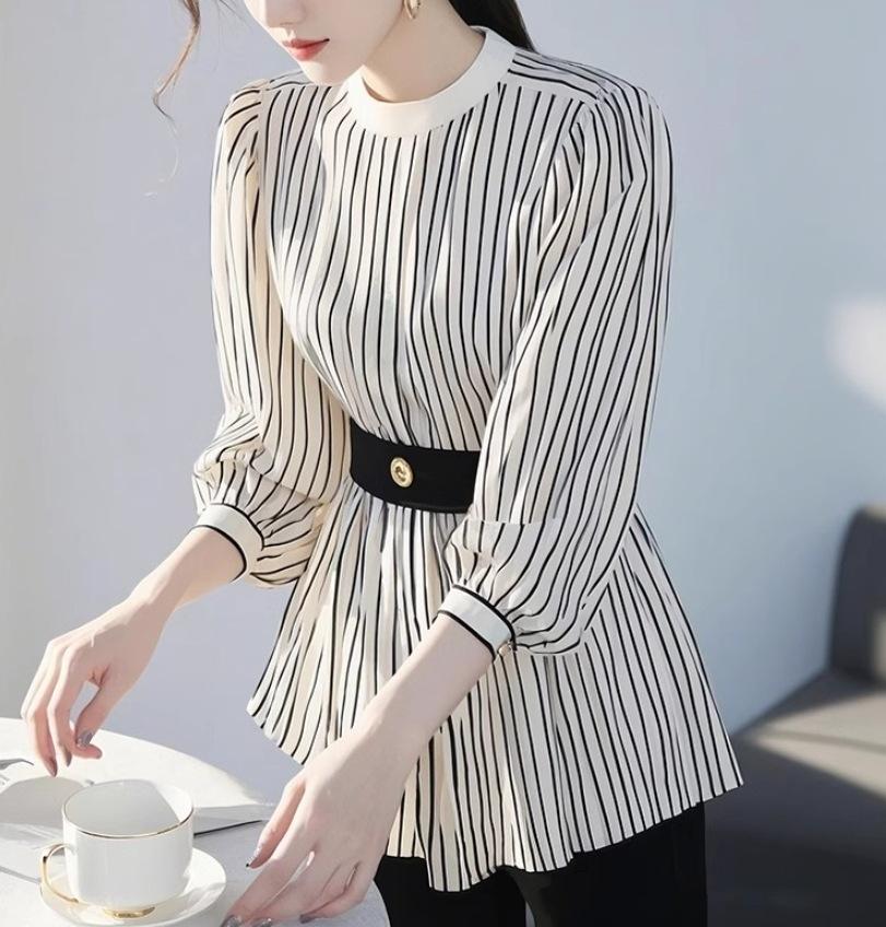 Primavera 2025 Nuevo Sentido de Diseño Francés Temperamento Alto para Ir al Trabajo Estilo Ligeramente Maduro Camisa de Cintura a Rayas Blancas y Negras para Mujer