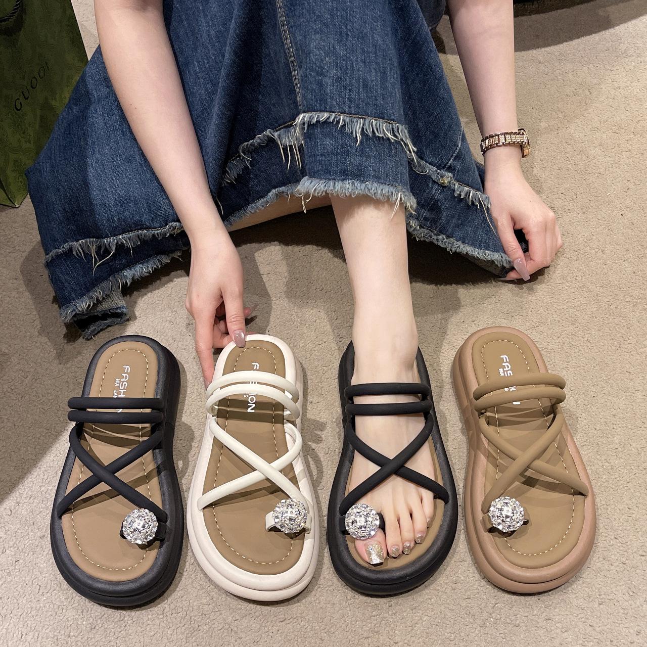 2024 Verano Nuevo Estilo Ropa Exterior Pantuflas Conjunto de Moda para Mujer Pantuflas de Plataforma de Punta Sandalias y Pantuflas para Mujer Zapatos de Playa para Mujer