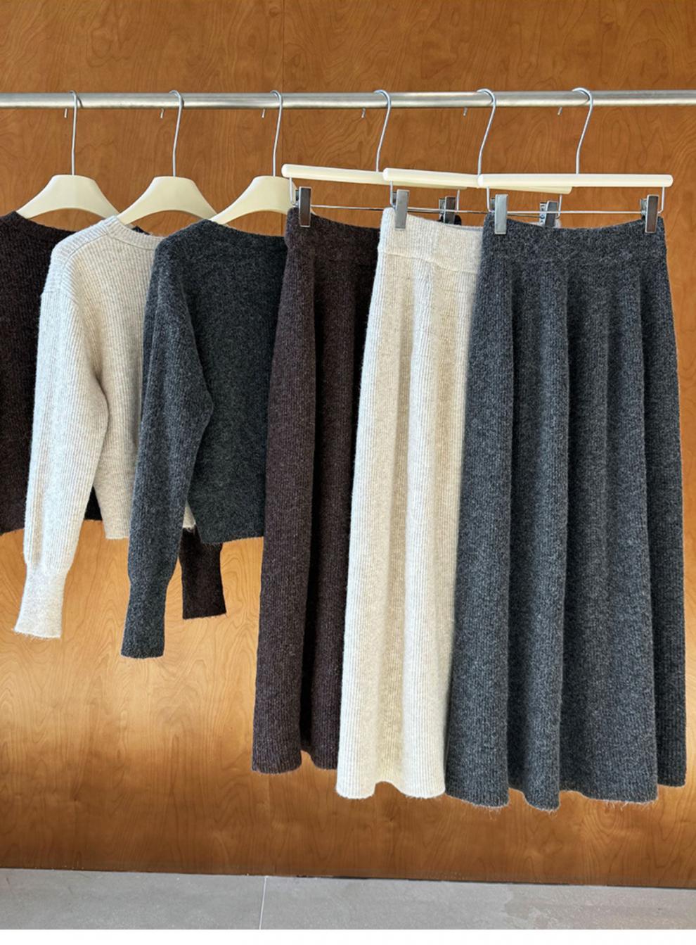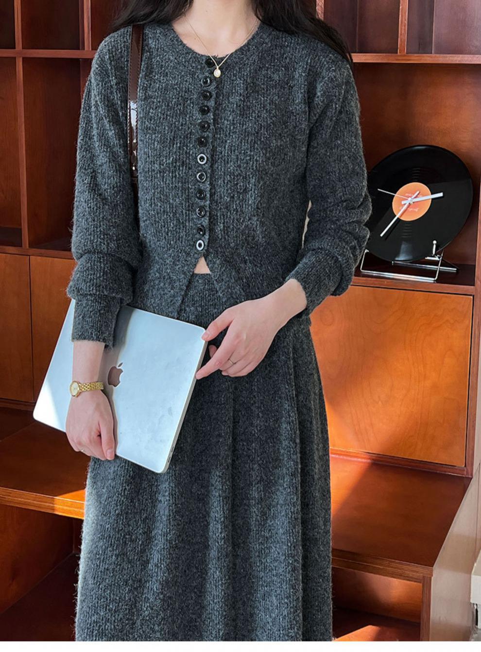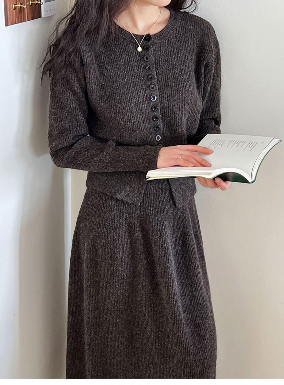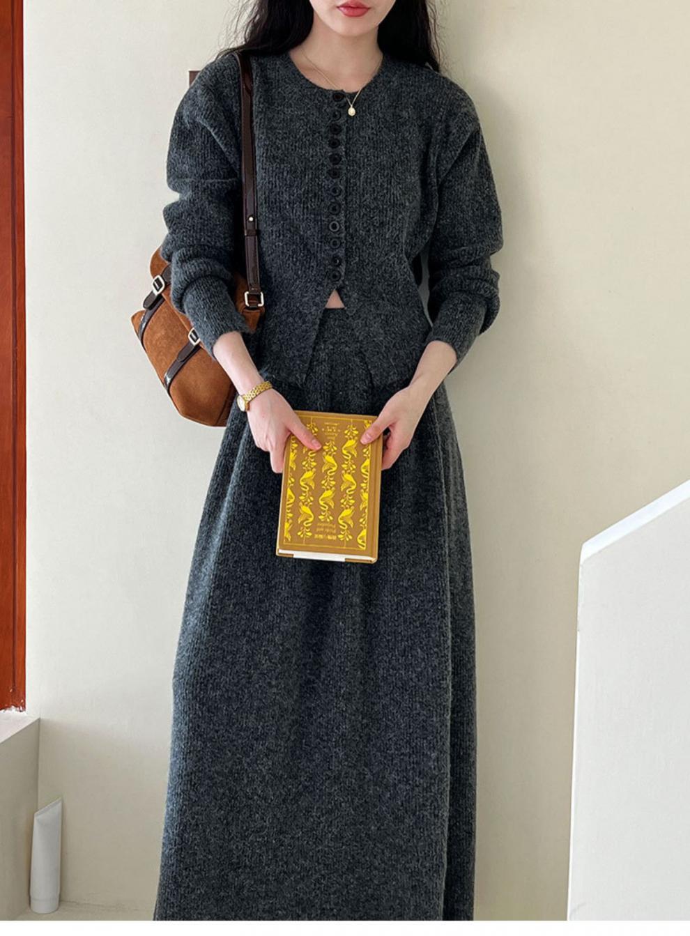 Falda de traje estilo coreano, cárdigan tipo suéter para mujer, falda de punto, atuendo elegante y femenino, conjunto de dos piezas atrevido 2024